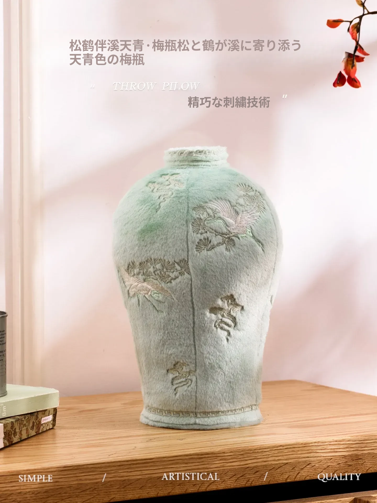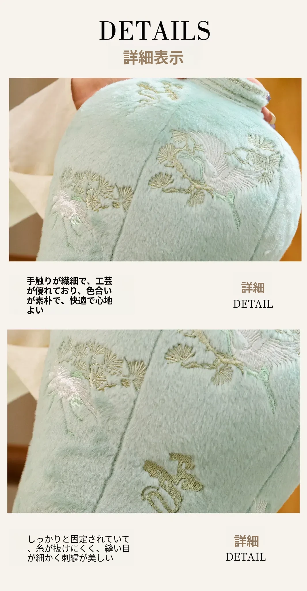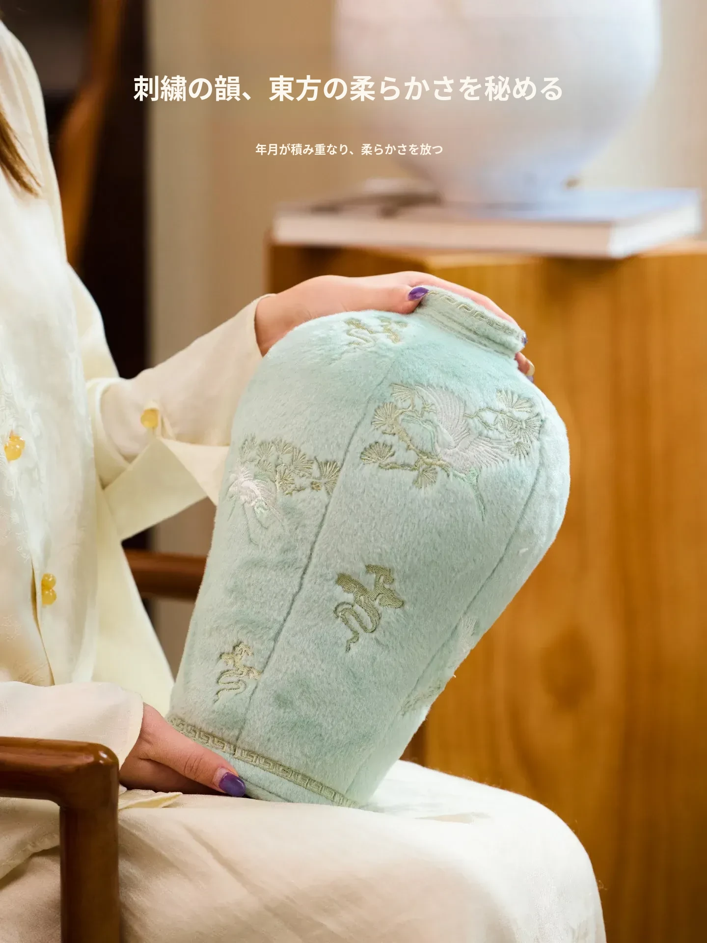 カビオセンの文創刺繍クッション - ふわふわの抱き枕とデスク用フラワーベースのセット!贈り物に最適な国風の装飾品で、心温まるおしゃれなインテリアを演出します。