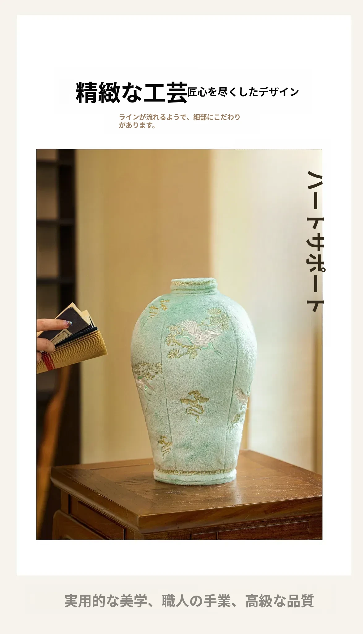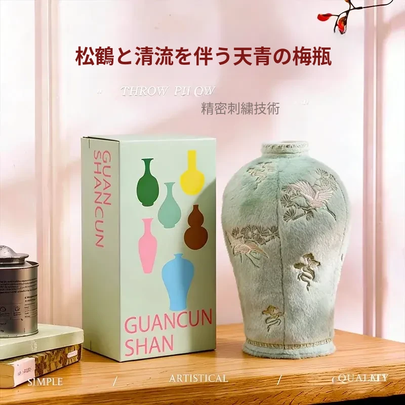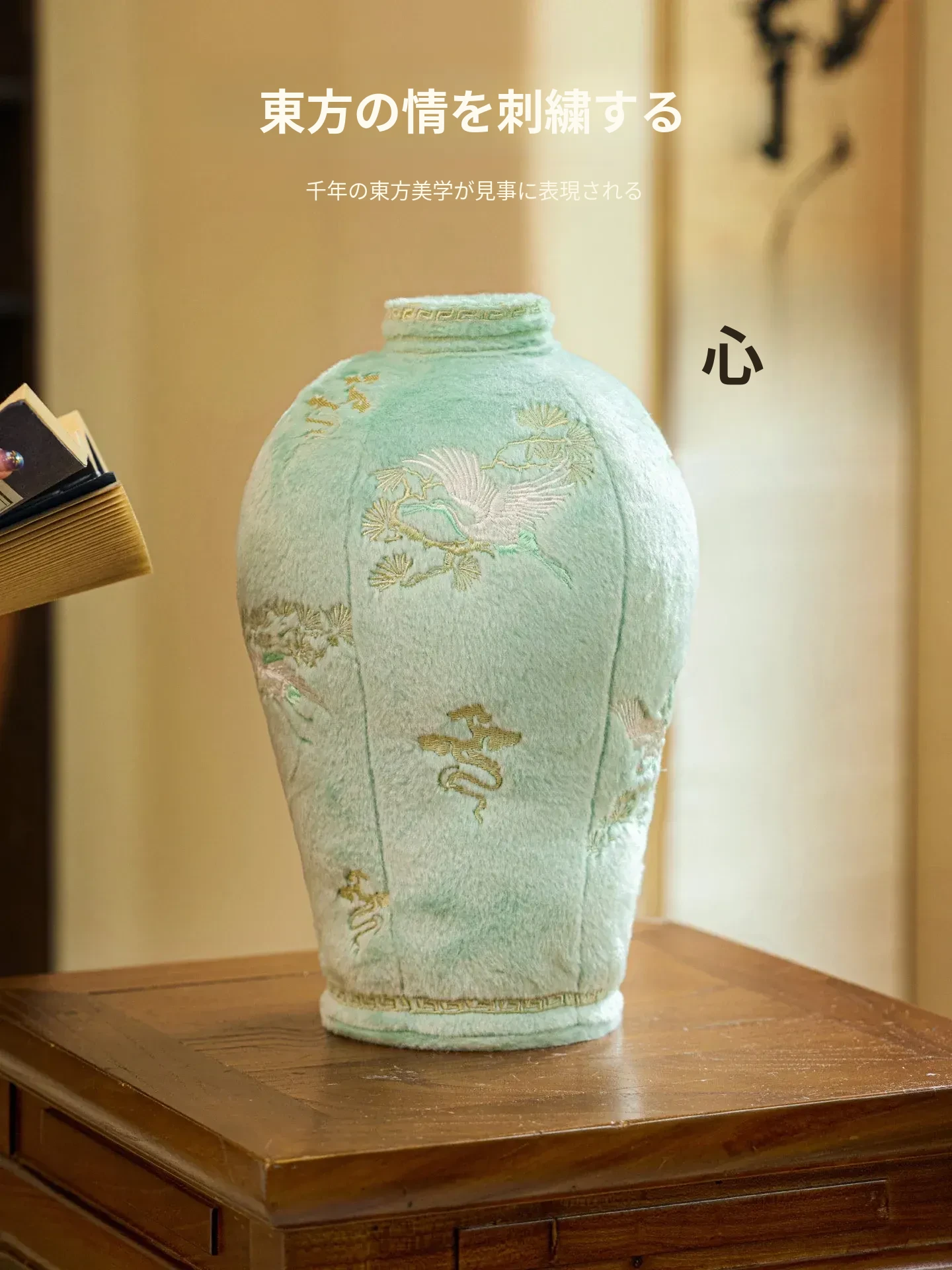 カビオセンの文創刺繍クッション - ふわふわの抱き枕とデスク用フラワーベースのセット!贈り物に最適な国風の装飾品で、心温まるおしゃれなインテリアを演出します。