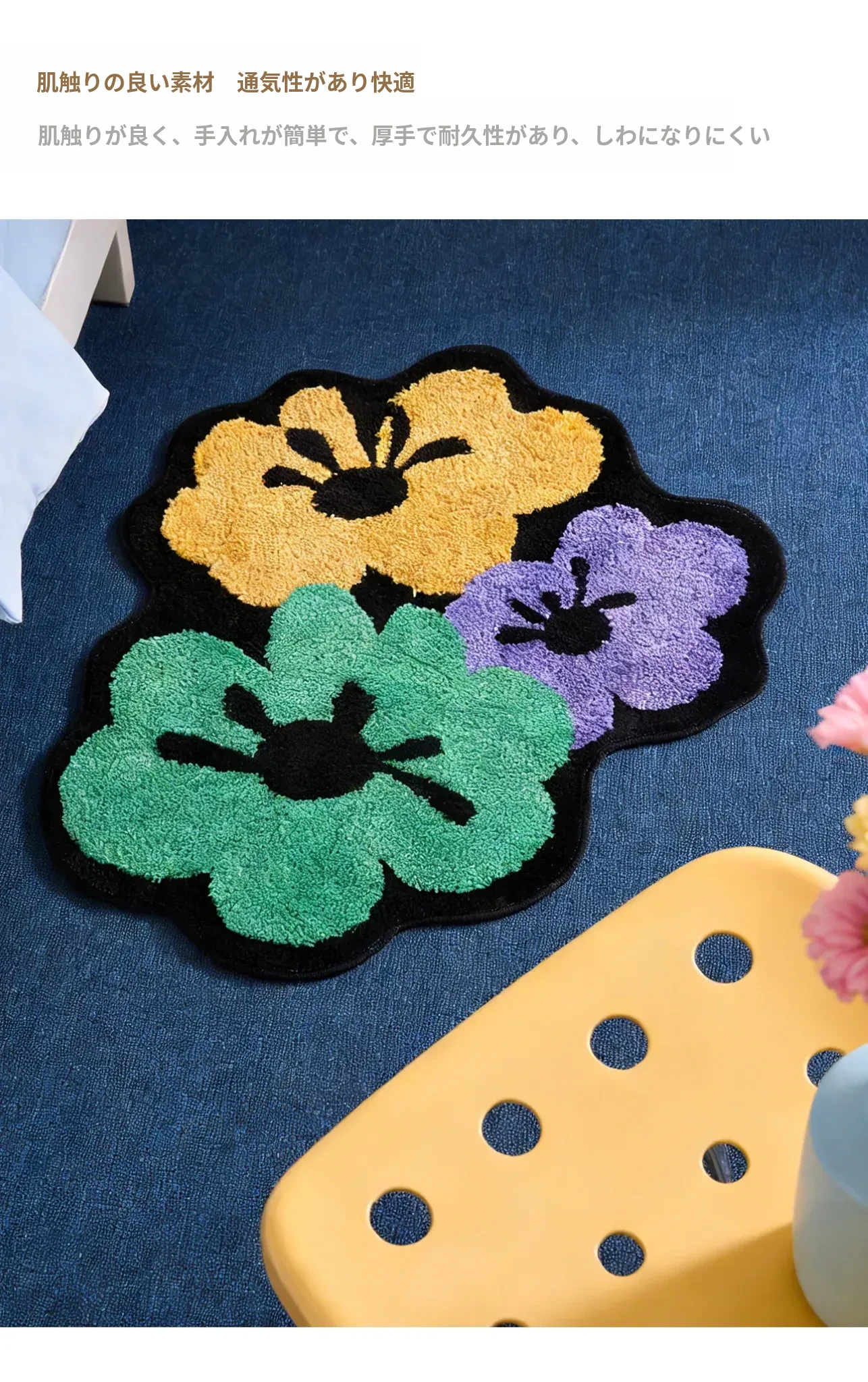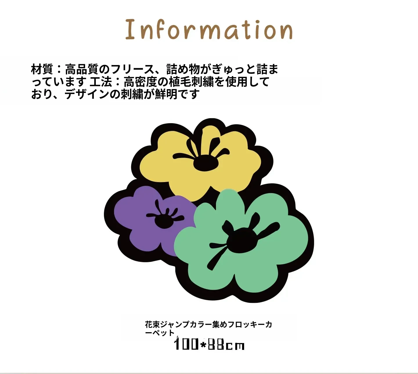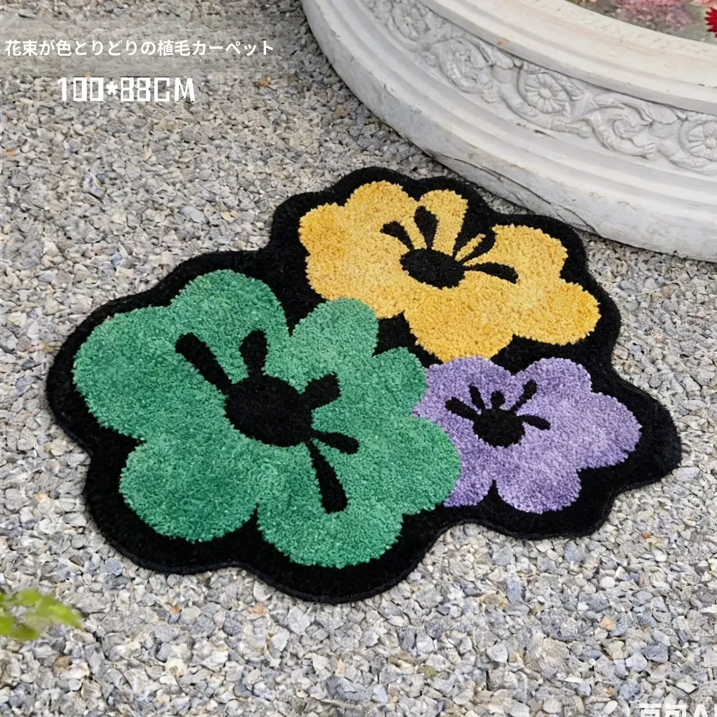 花柄の跳ね色集めのフロックラグ