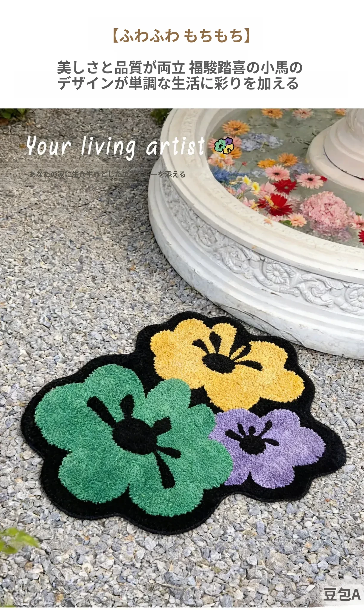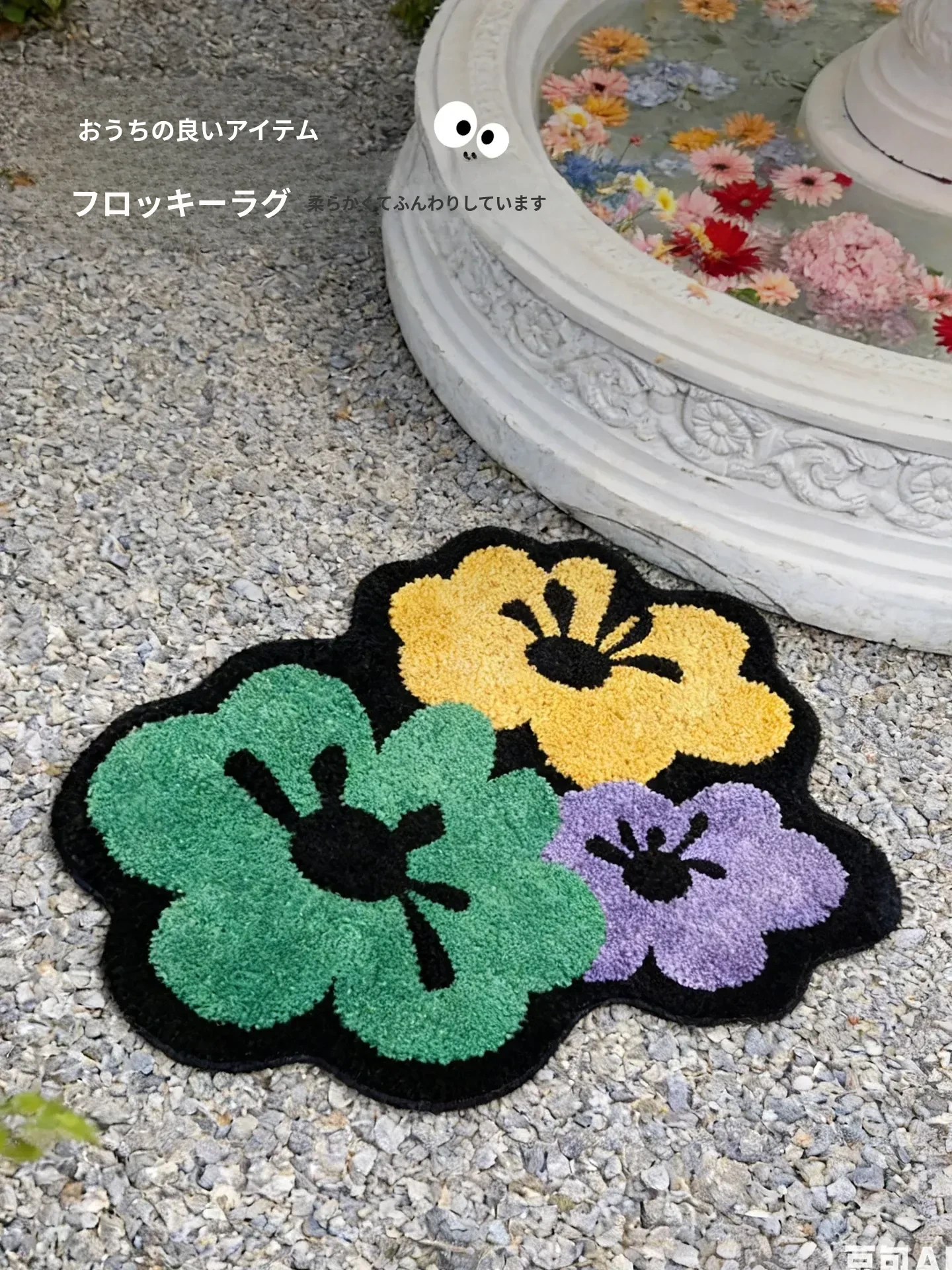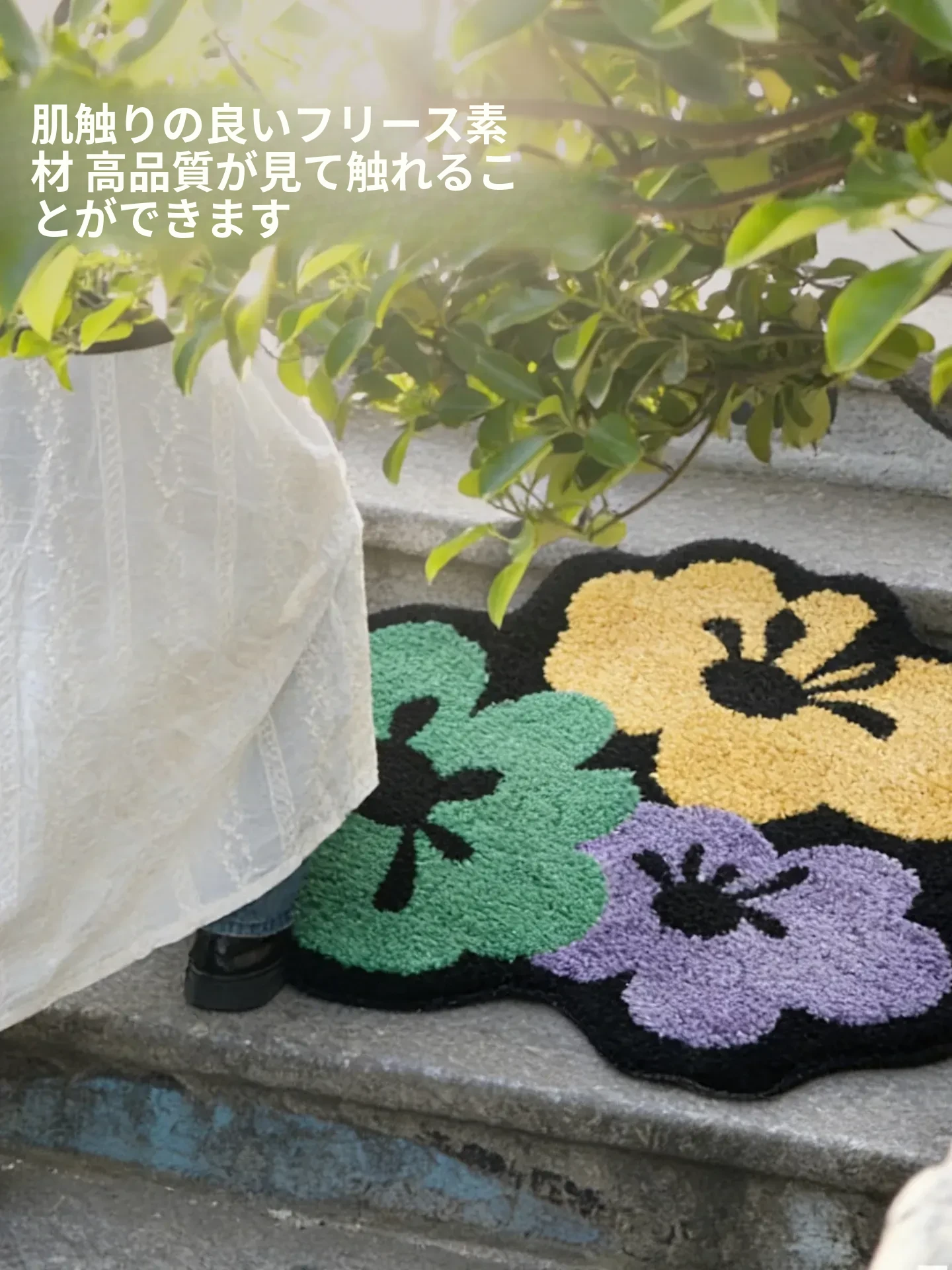 花柄の跳ね色集めのフロックラグ