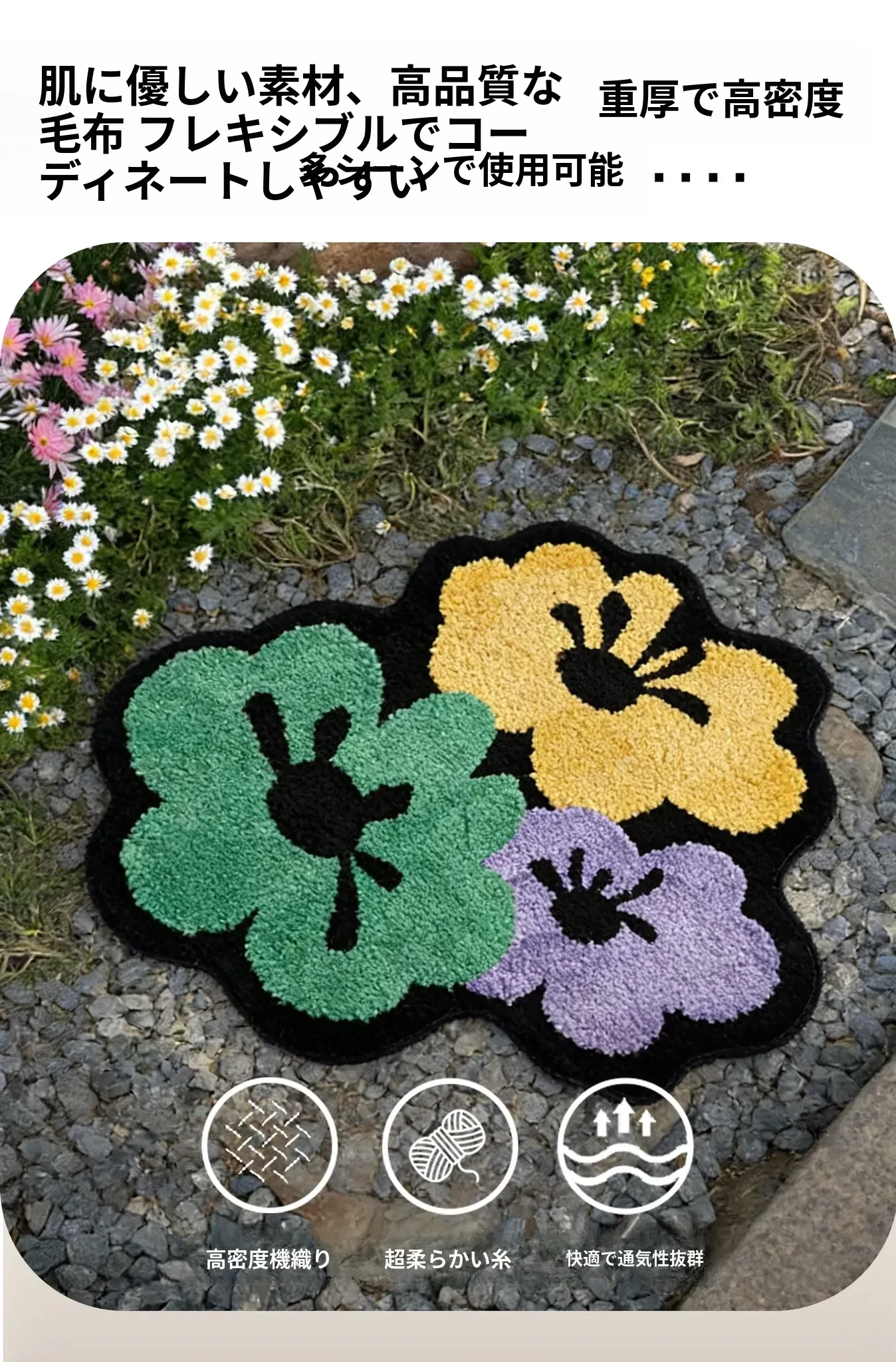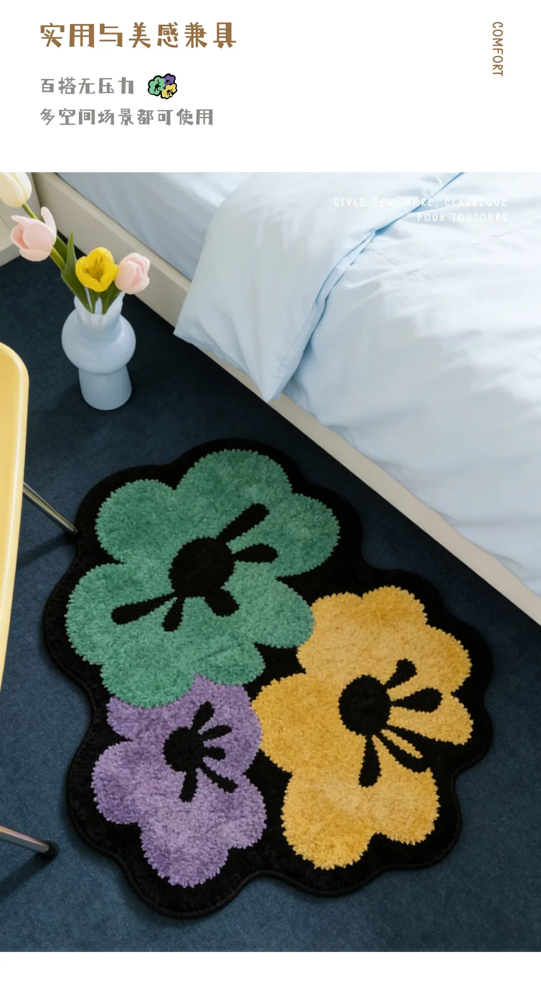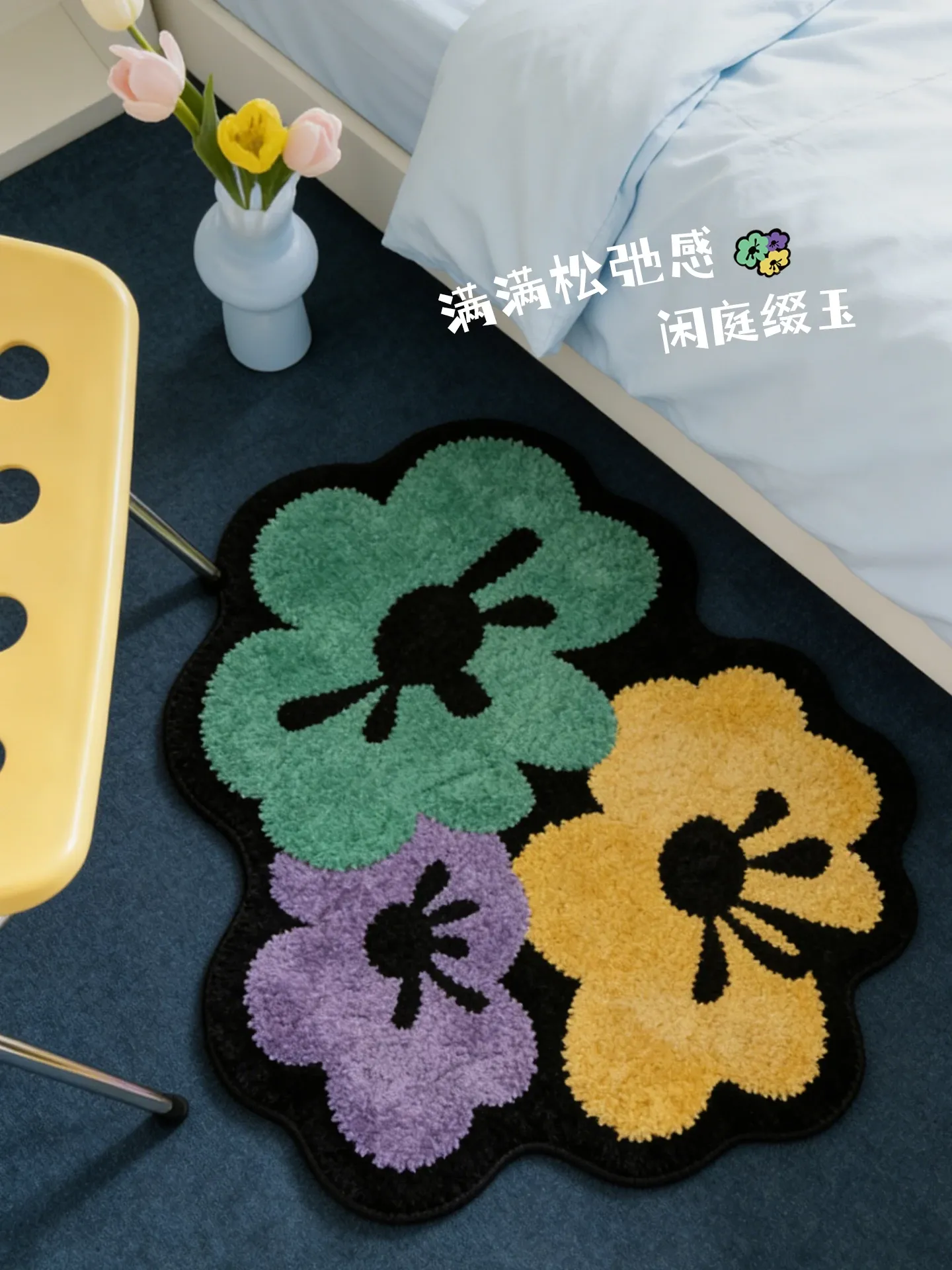 カビオセン創意デザインの異形ベッドサイドカーペット - 寝室やリビングにぴったりな花柄ラグ!不規則な形状でお部屋に個性をプラスし、心地よい多バペンマットとしても最適です。