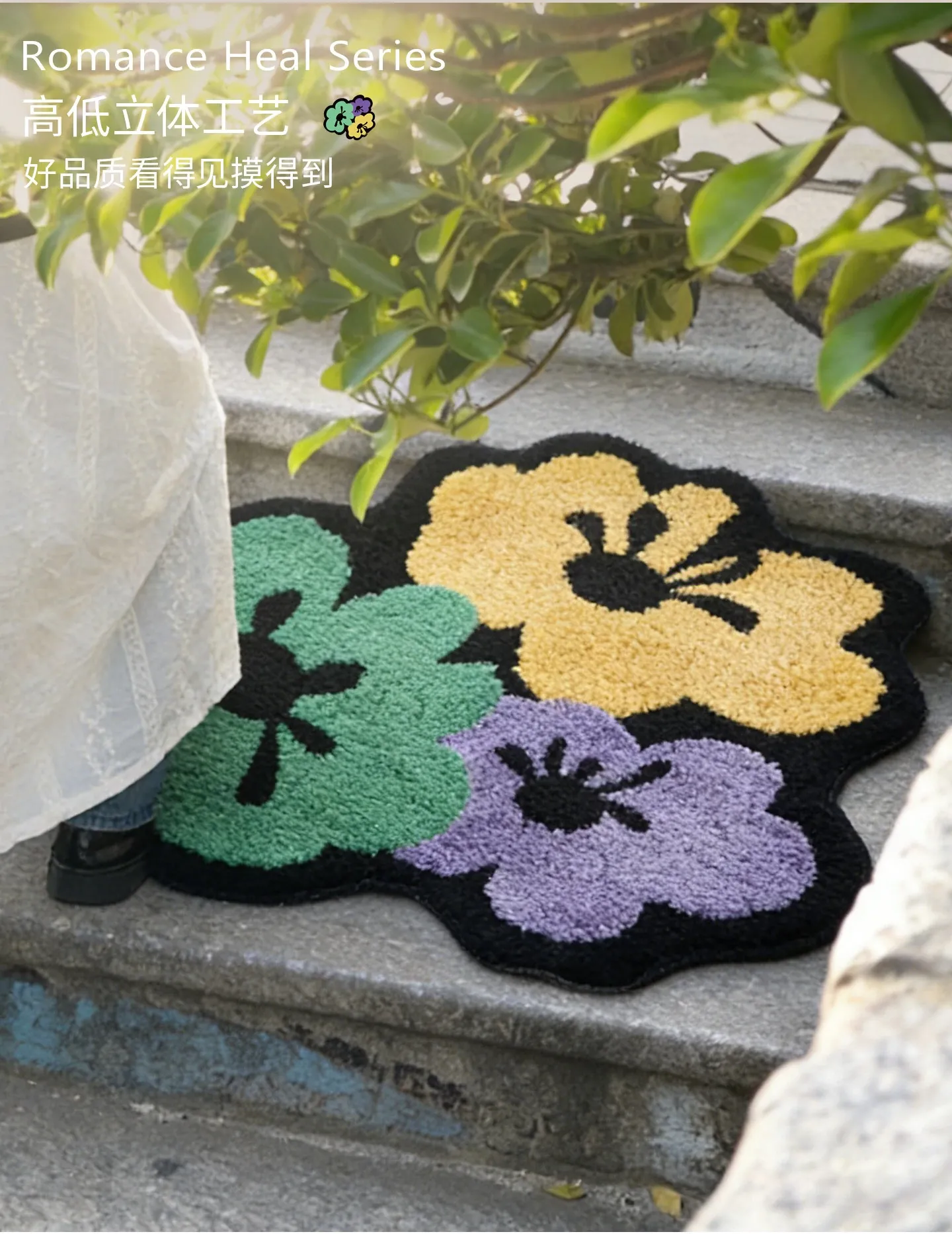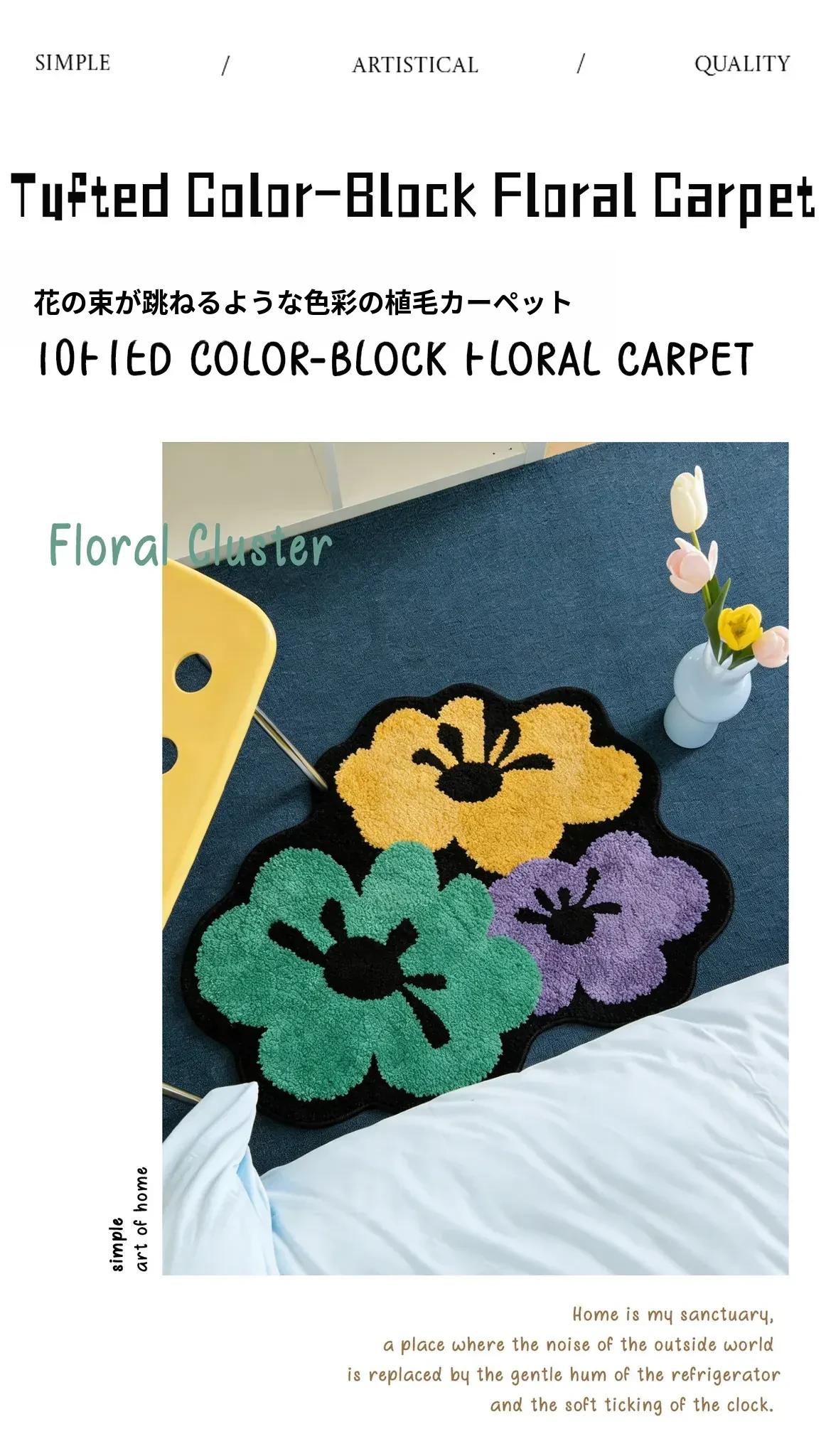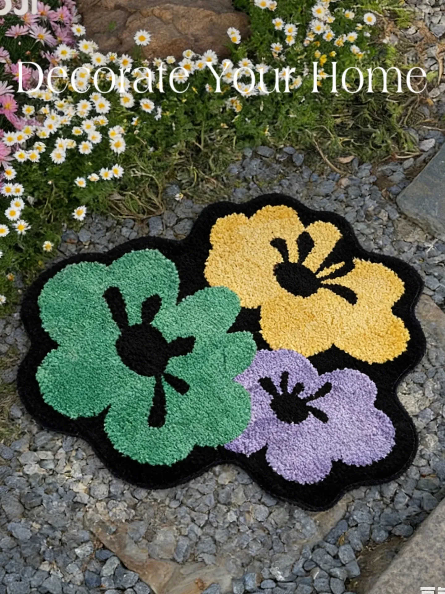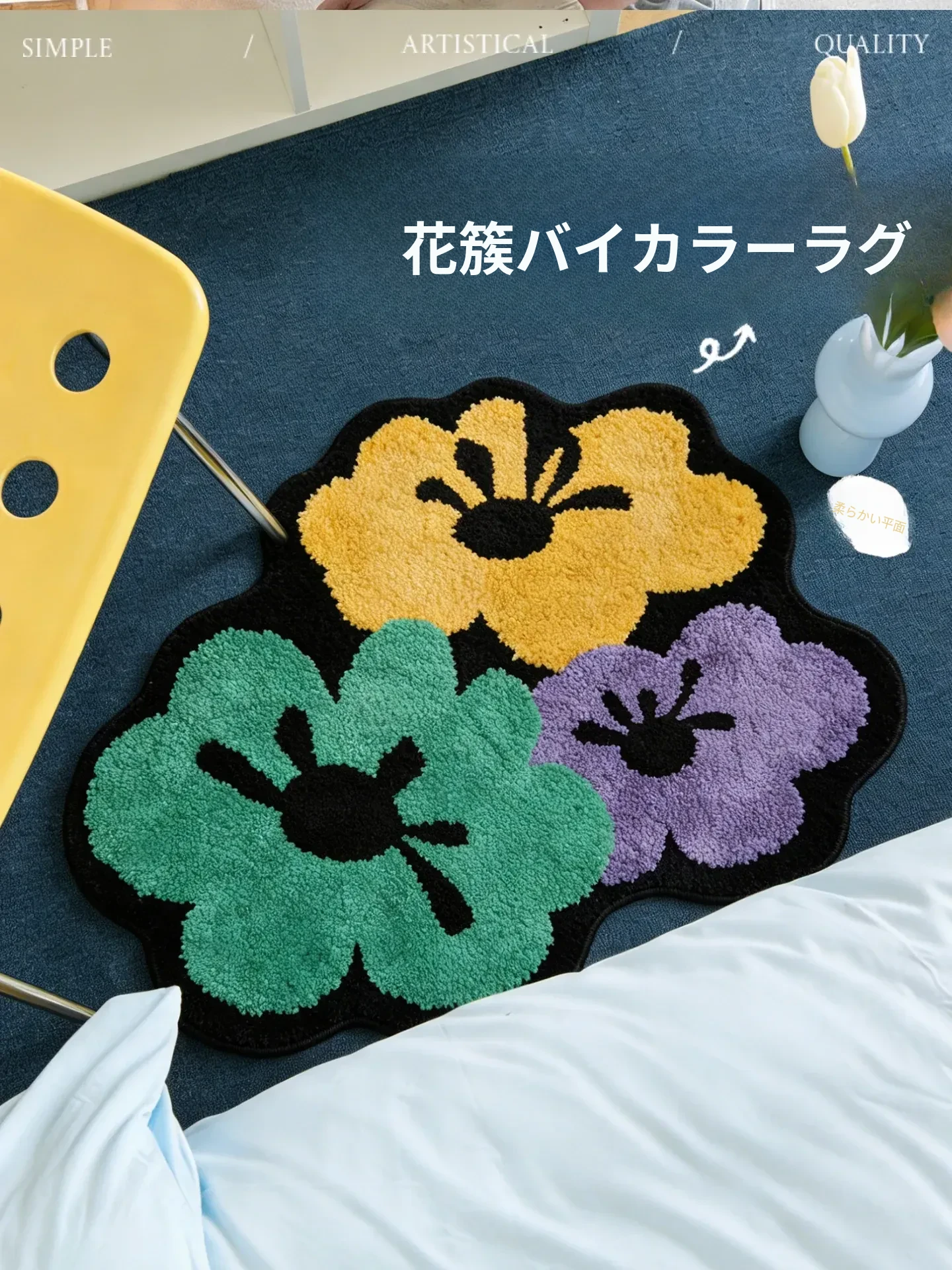 カビオセン創意デザインの異形ベッドサイドカーペット - 寝室やリビングにぴったりな花柄ラグ!不規則な形状でお部屋に個性をプラスし、心地よい多バペンマットとしても最適です。
