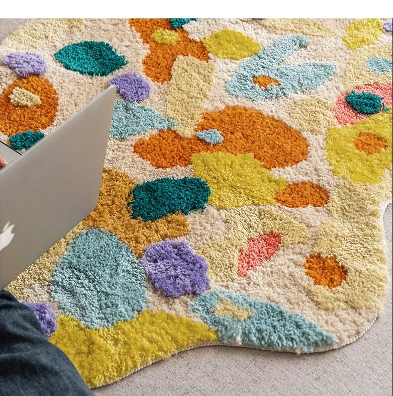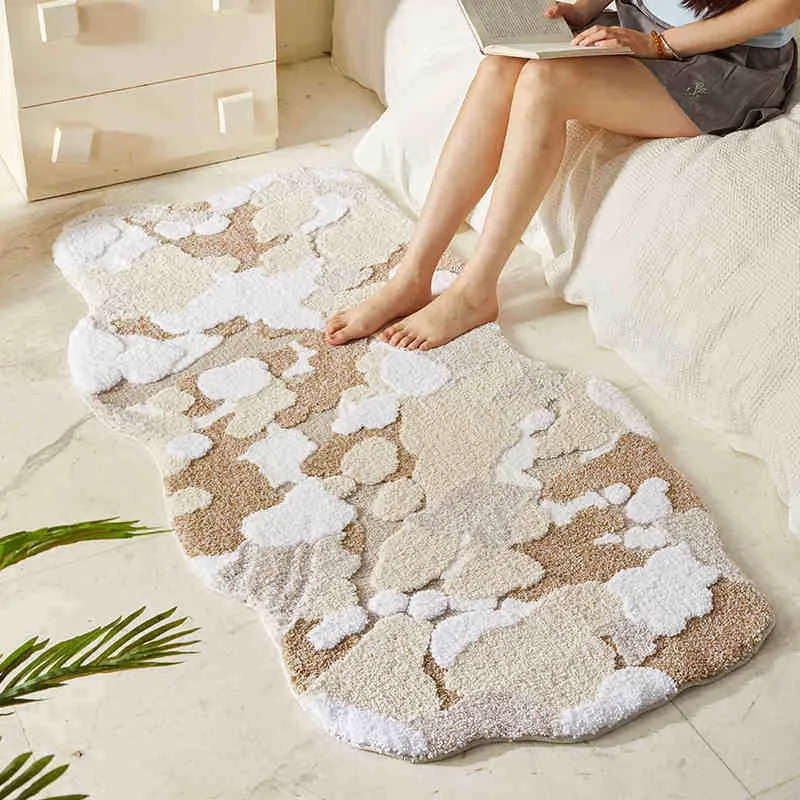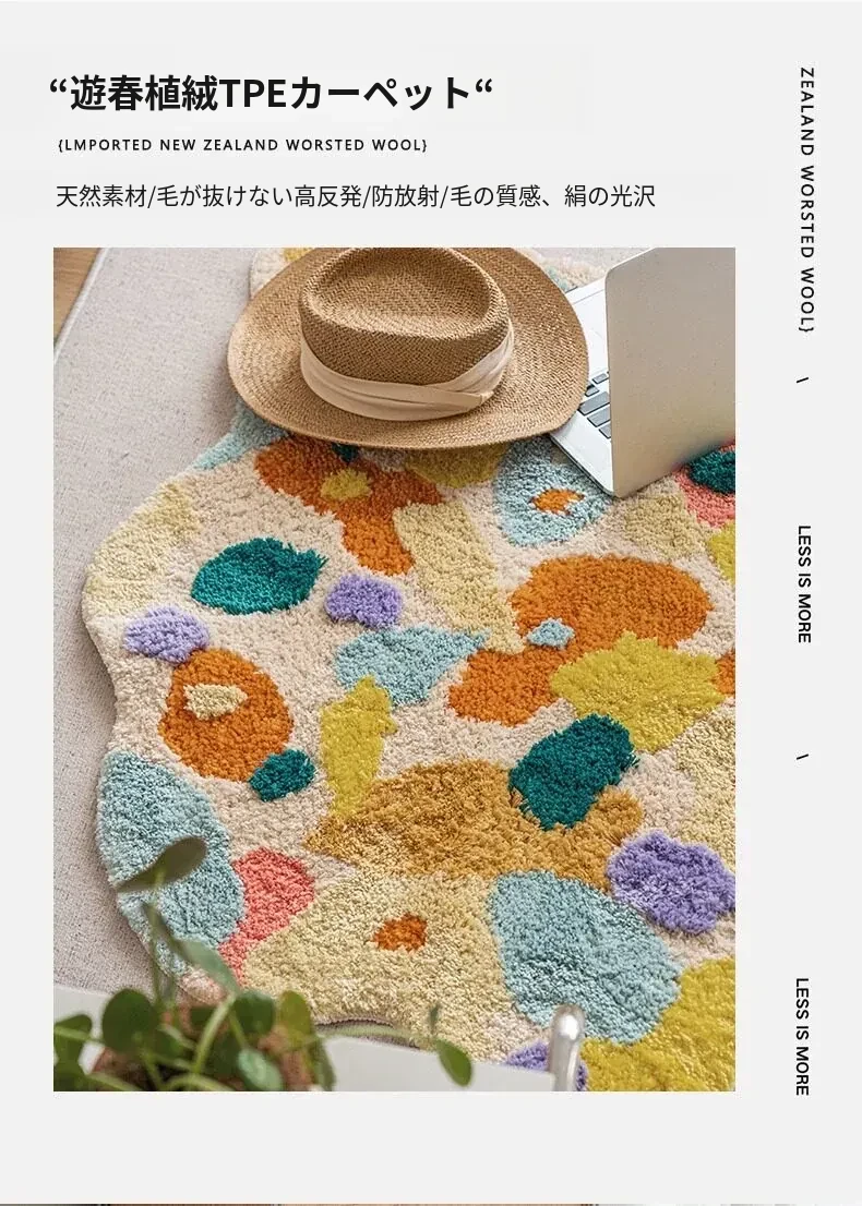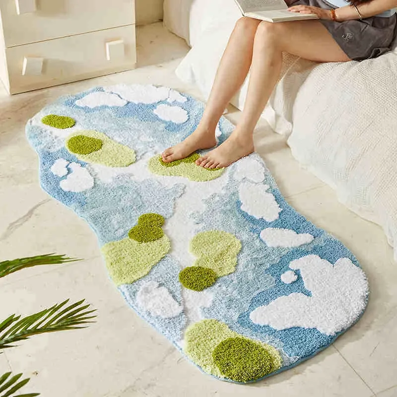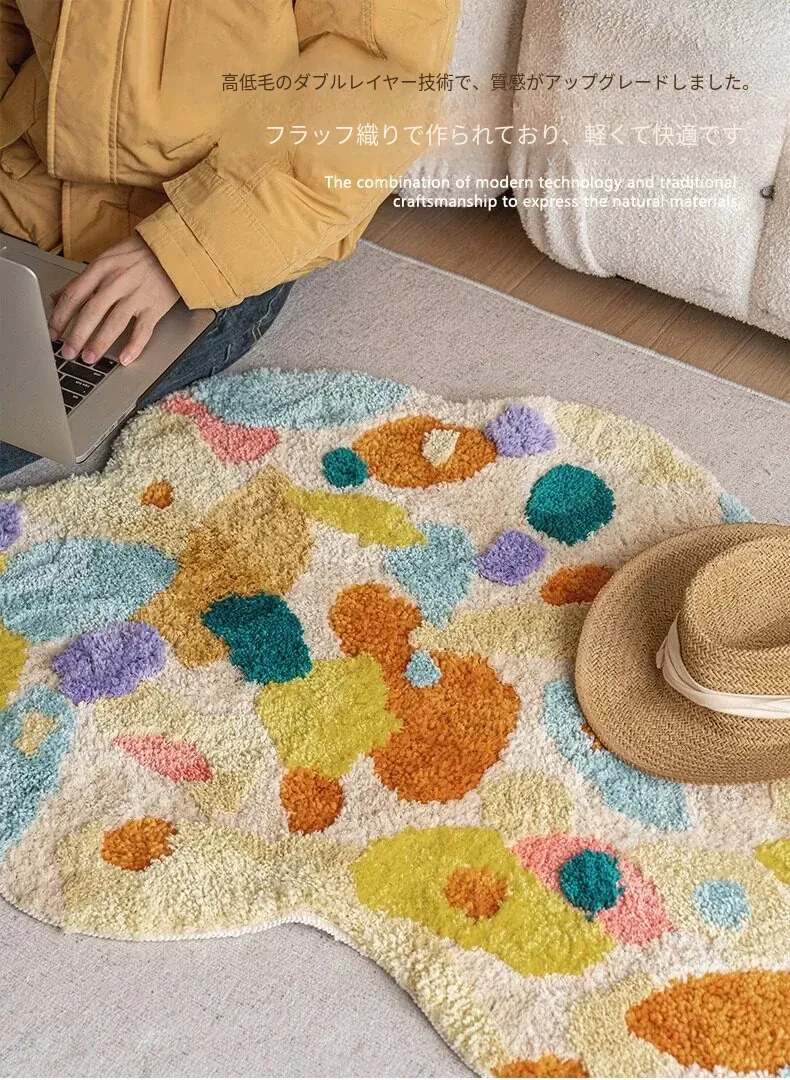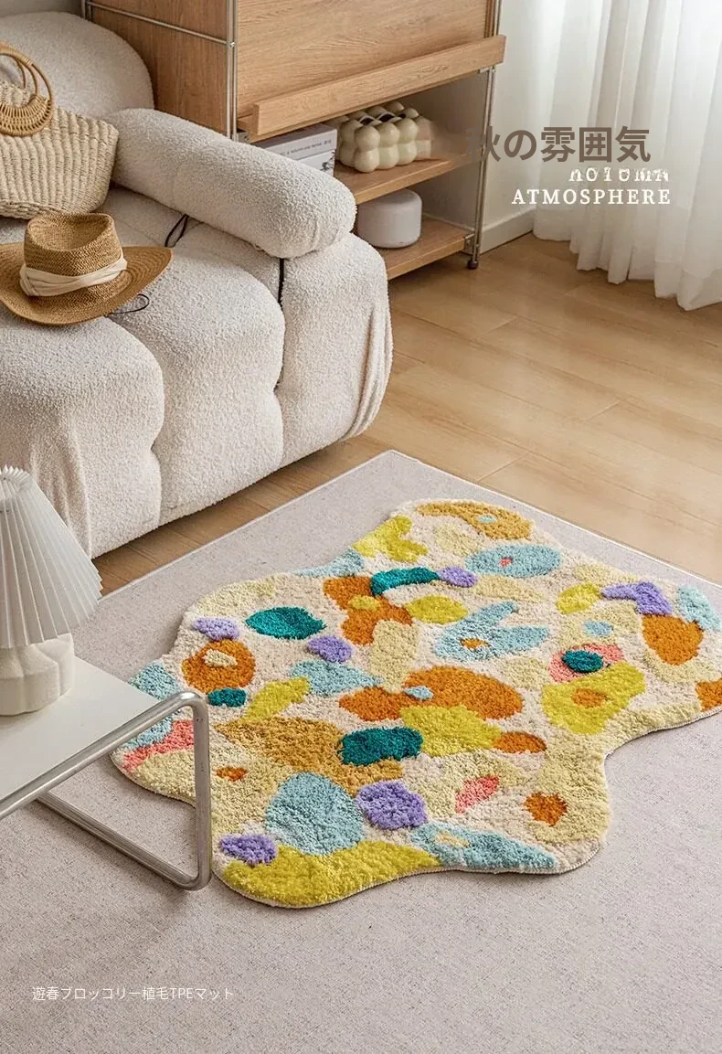 Caviosenの北欧スタイルクリエイティブ衣装コーナーラグ - リビングルームにぴったりな個性的な不規則形状のベッドサイドマット、苔デザインのソファーテーブルラグでおしゃれな空間を演出!