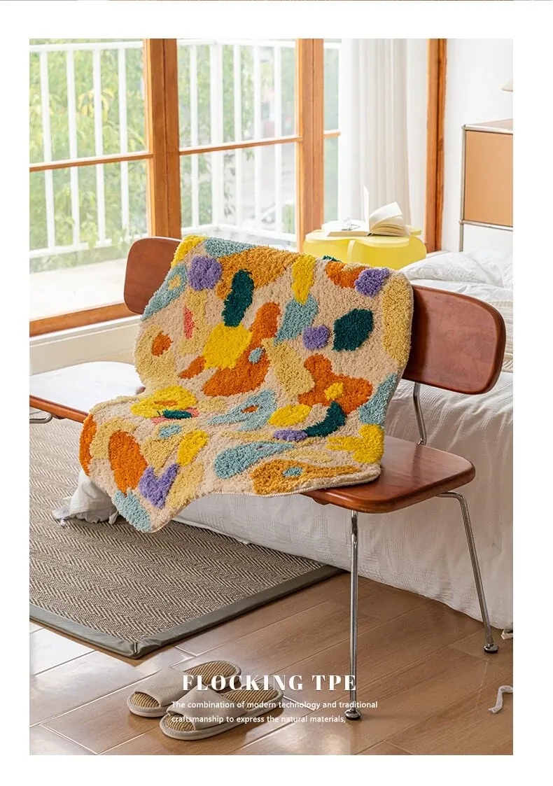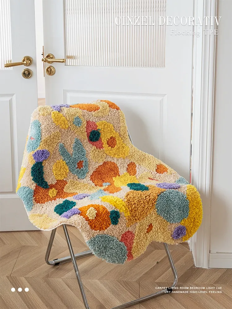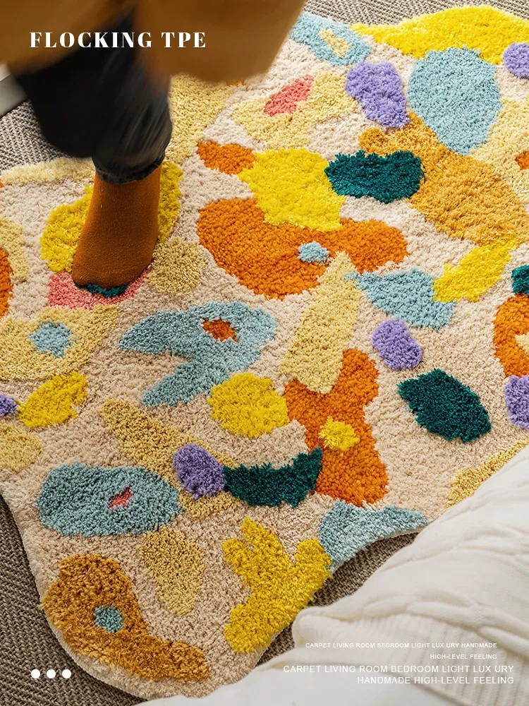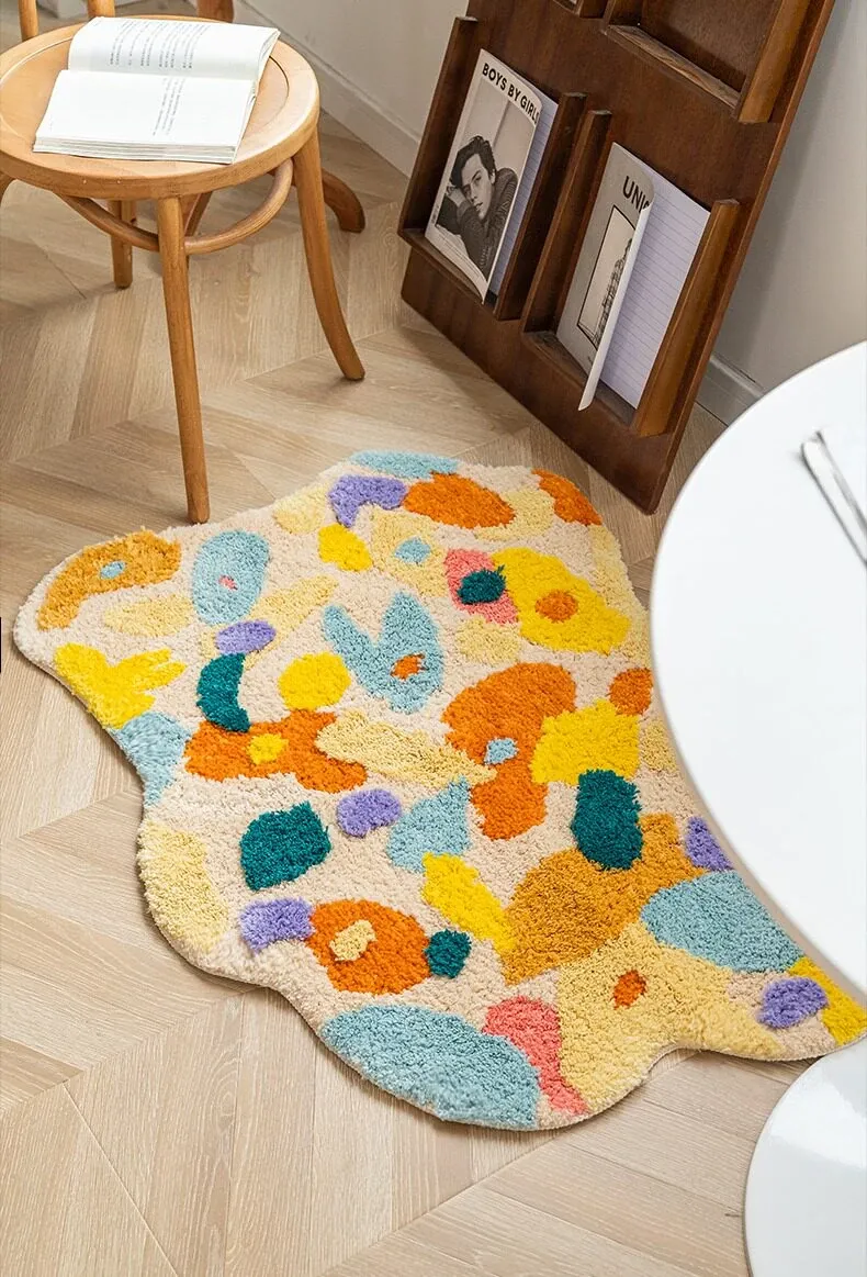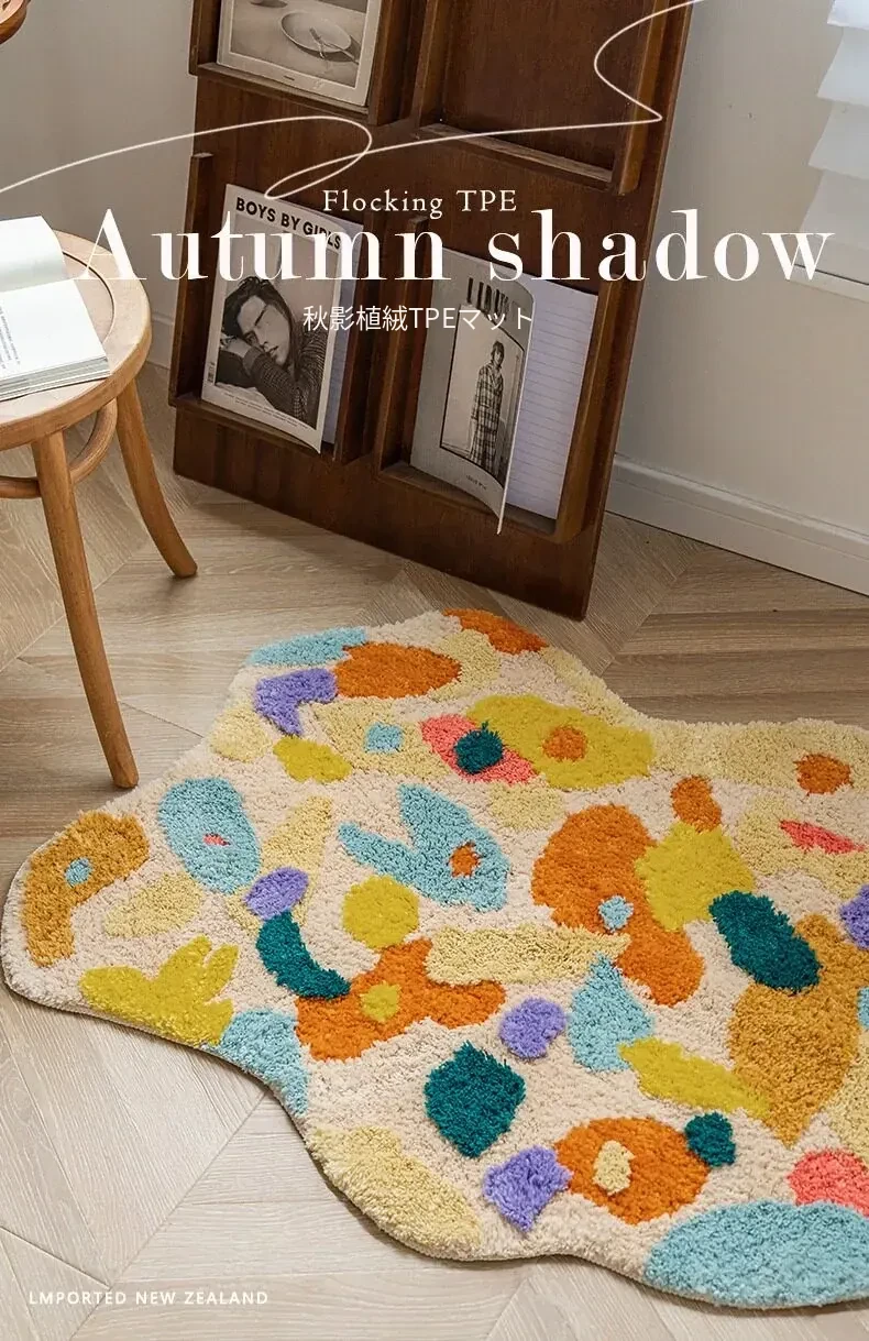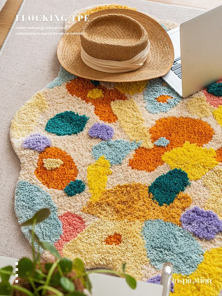 Caviosenの北欧スタイルクリエイティブ衣装コーナーラグ - リビングルームにぴったりな個性的な不規則形状のベッドサイドマット、苔デザインのソファーテーブルラグでおしゃれな空間を演出!