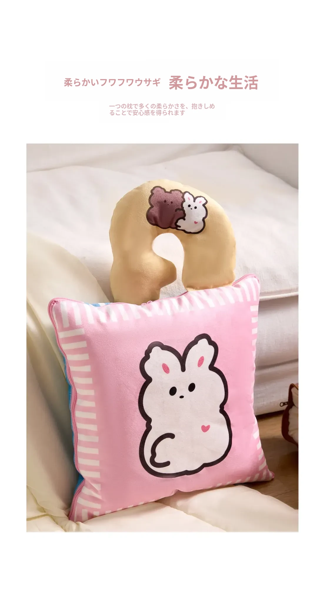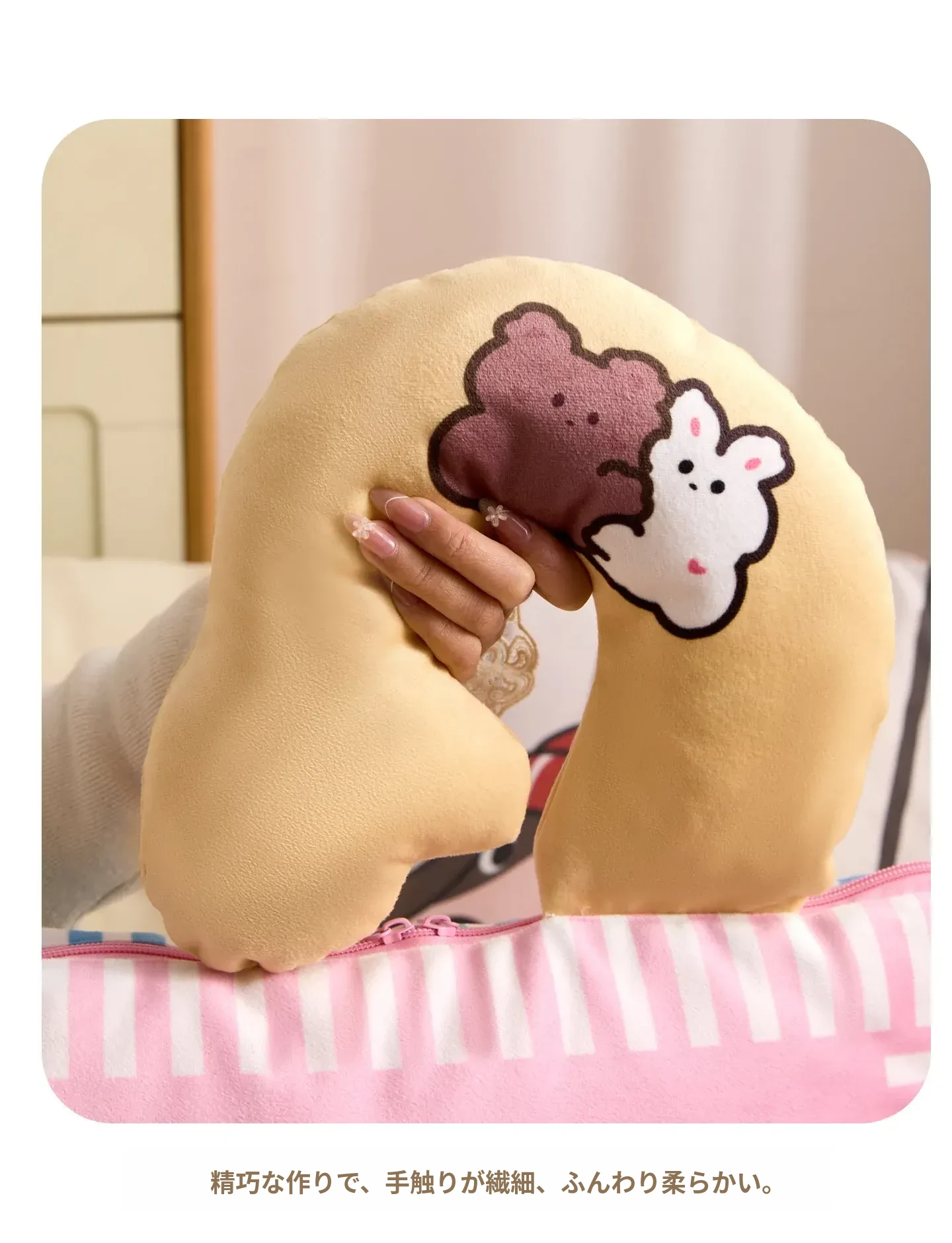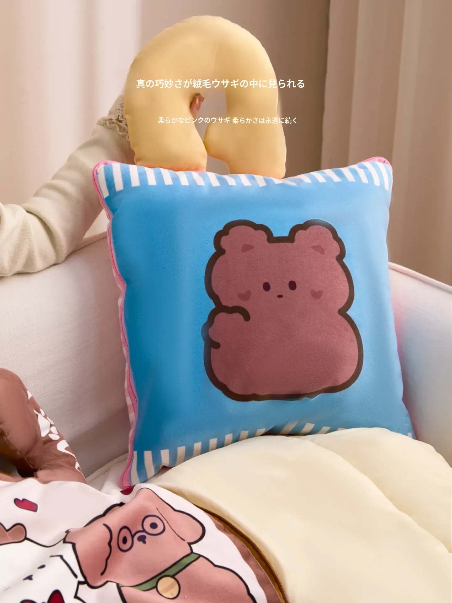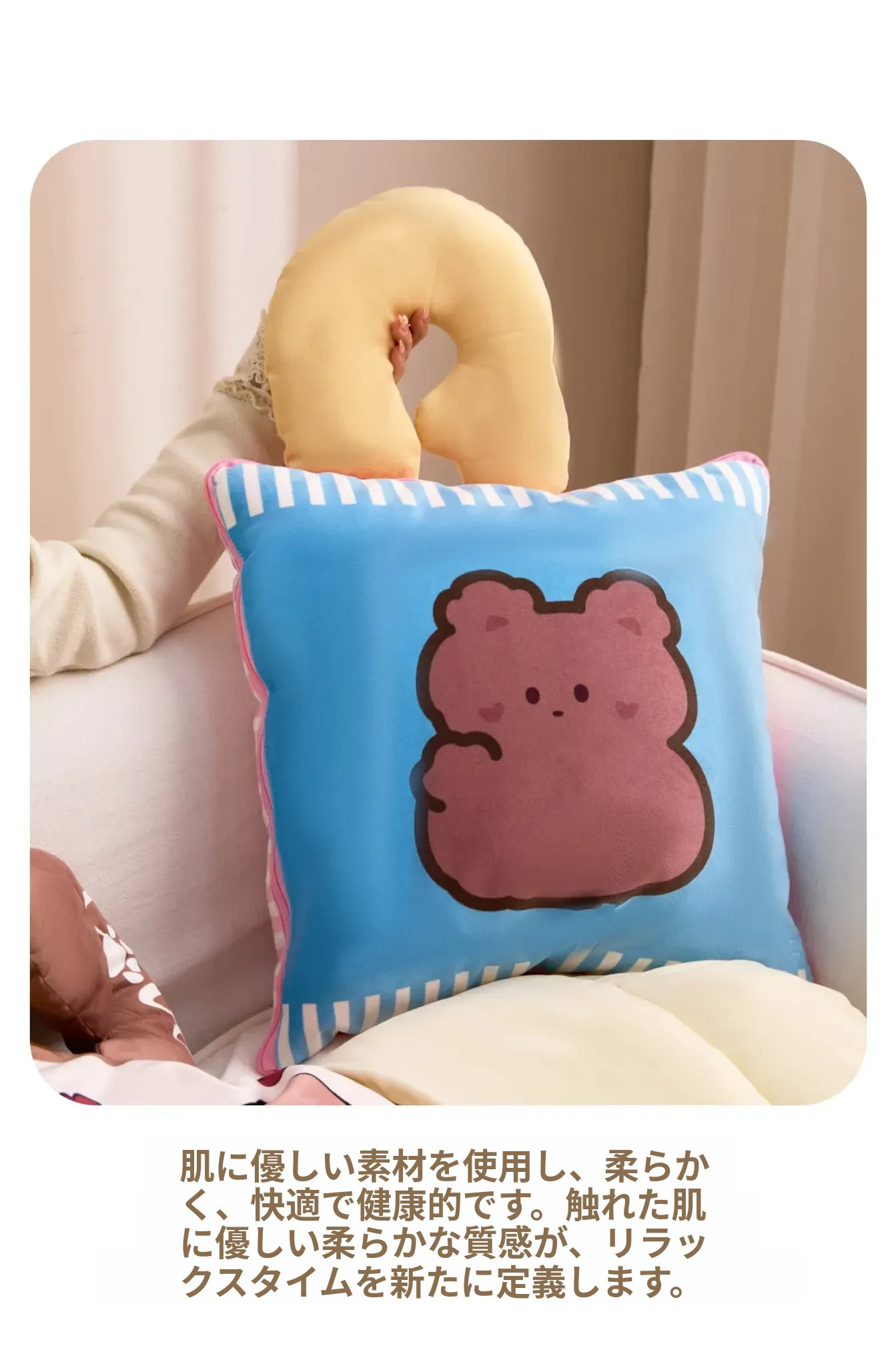 カヴィオセンのかわいいカートゥーン抱き枕兼毛布!車での快適な昼寝に最適な2in1デザイン。心地よい抱き心地で、リラックスしたひとときをお楽しみください!