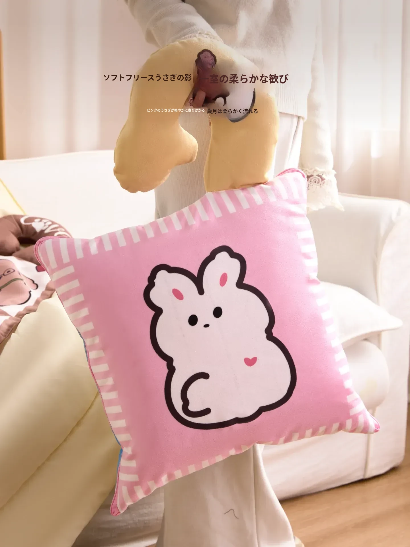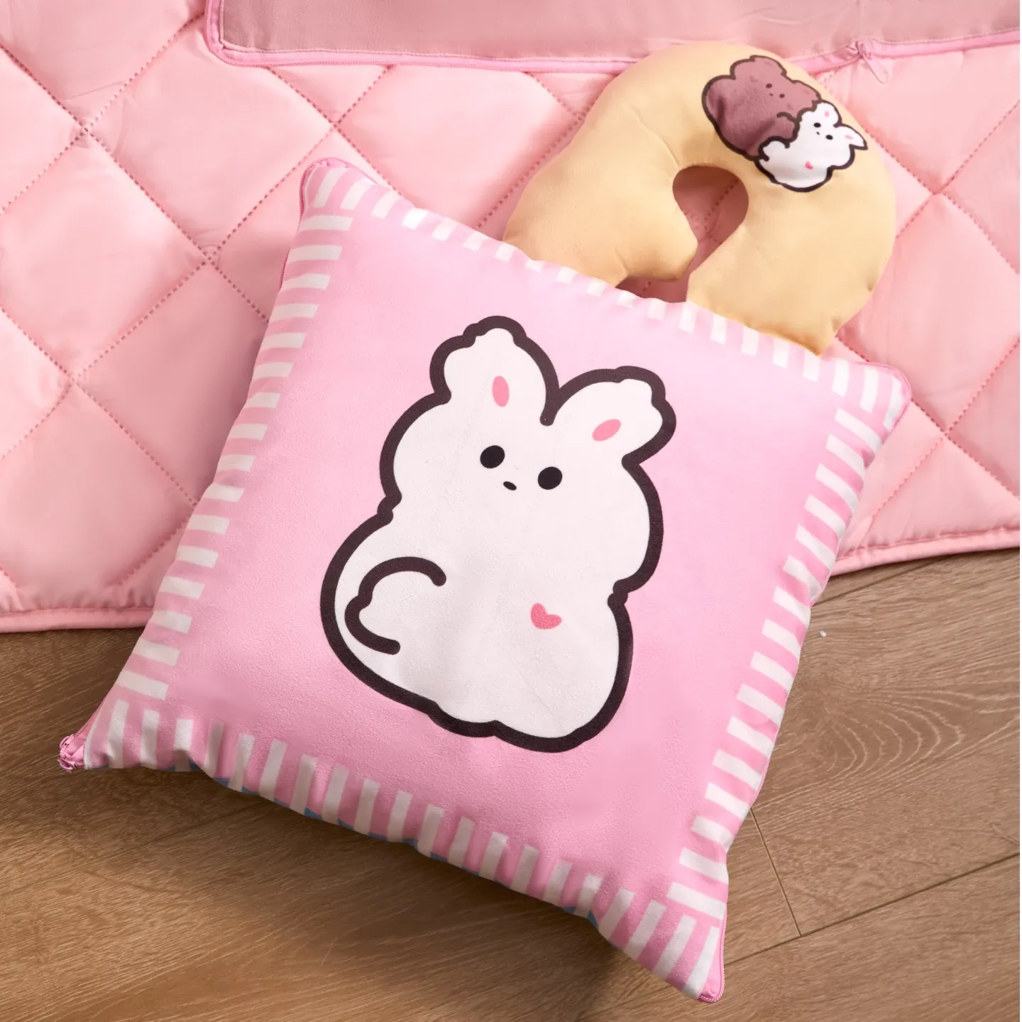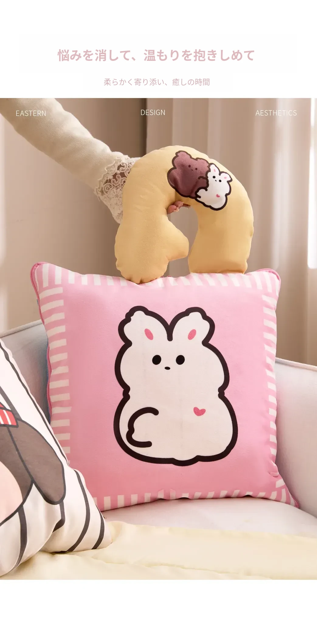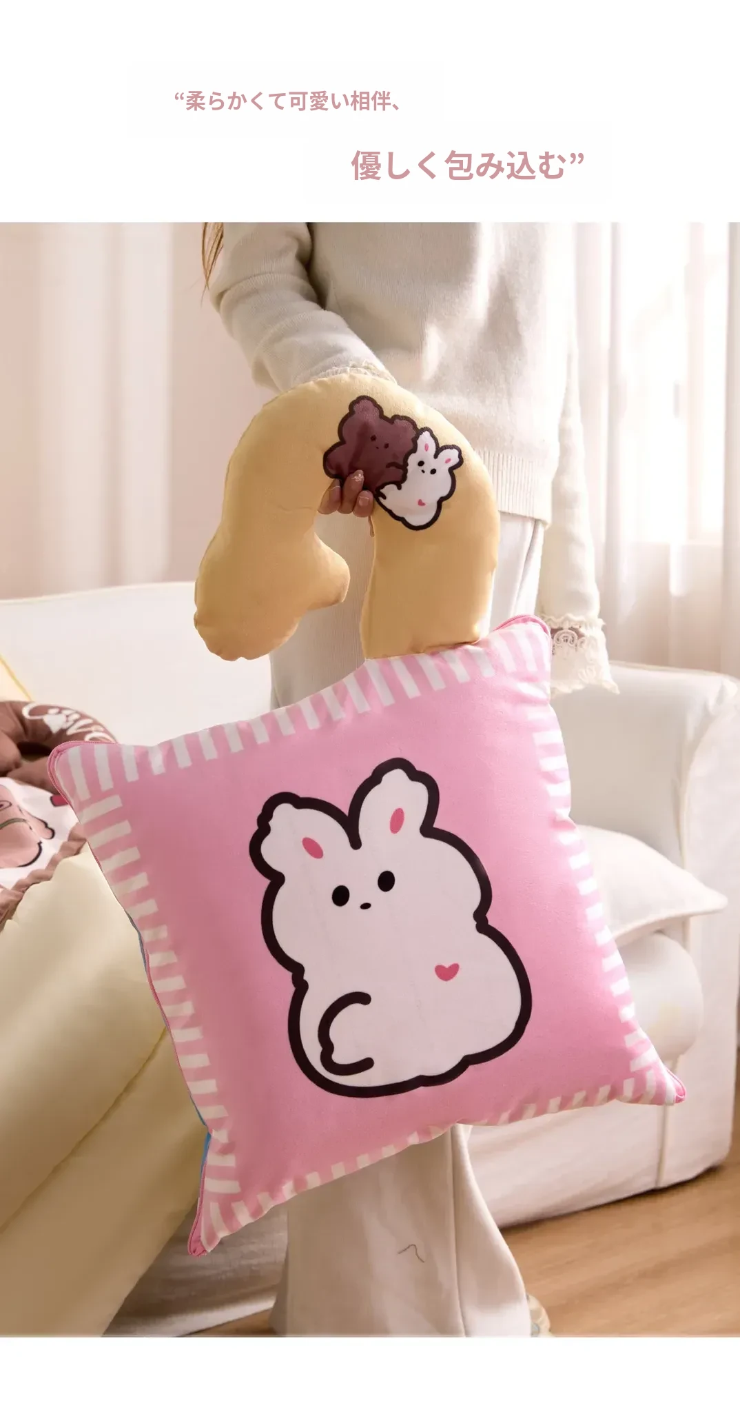 カヴィオセンのかわいいカートゥーン抱き枕兼毛布!車での快適な昼寝に最適な2in1デザイン。心地よい抱き心地で、リラックスしたひとときをお楽しみください!