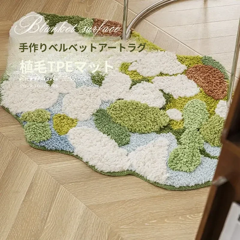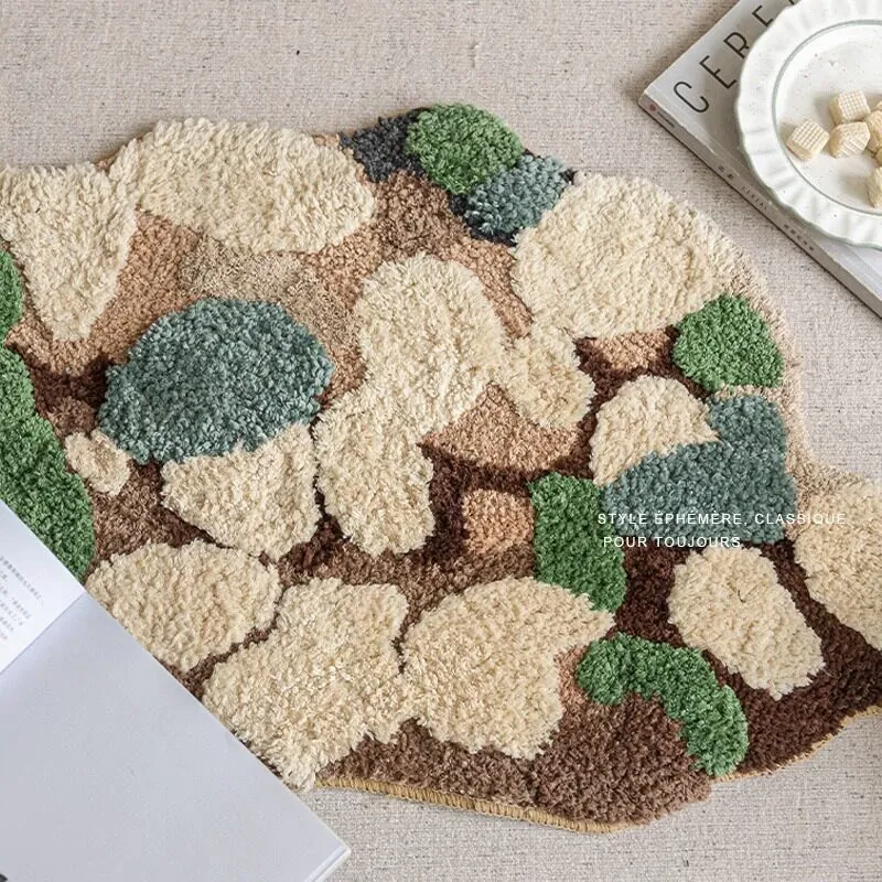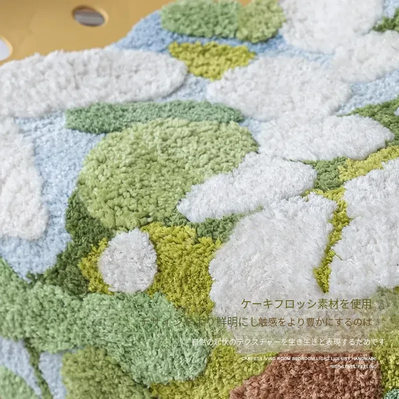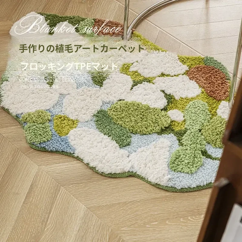 Caviosen 森林モスラグ - リビングルームや寝室のための高級デザイン、ユニークな形状でお部屋を華やかに演出。ティーテーブルの下やベッドサイドにぴったりの魅力的なアクセントラグ!