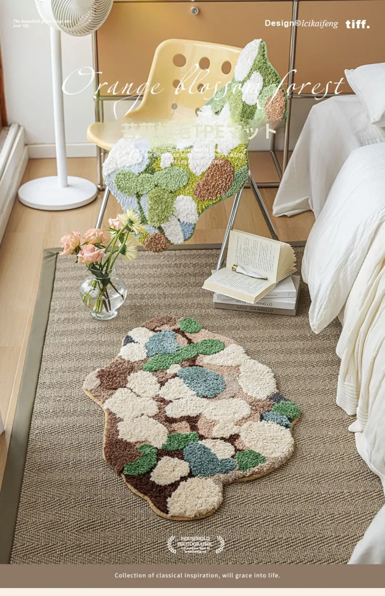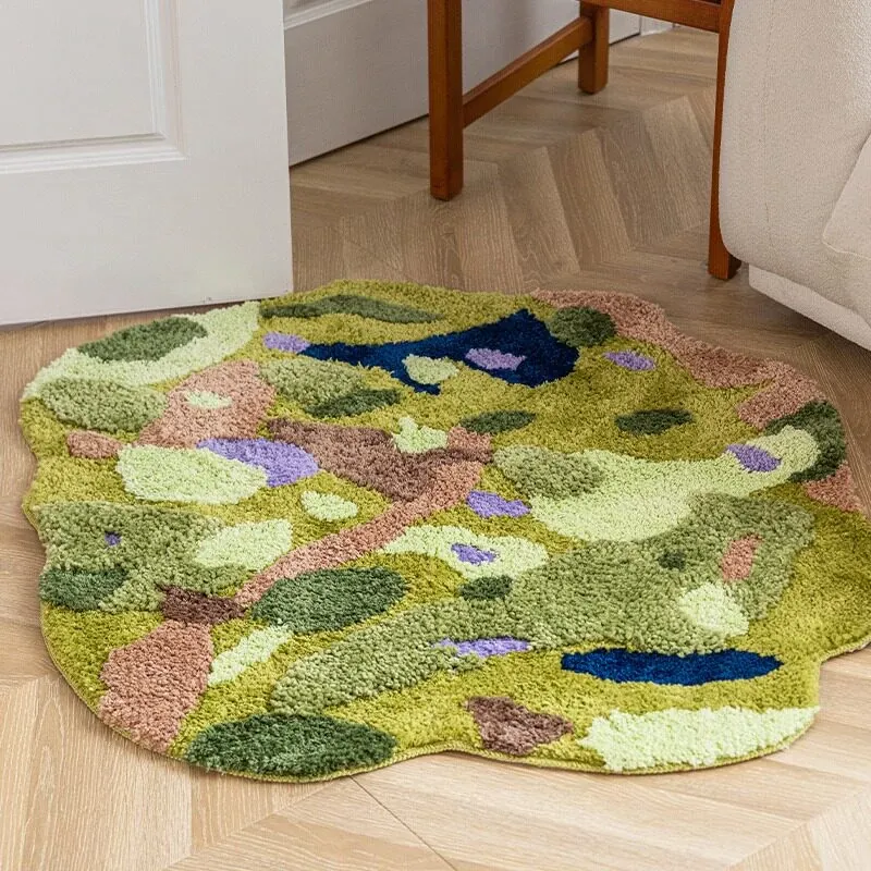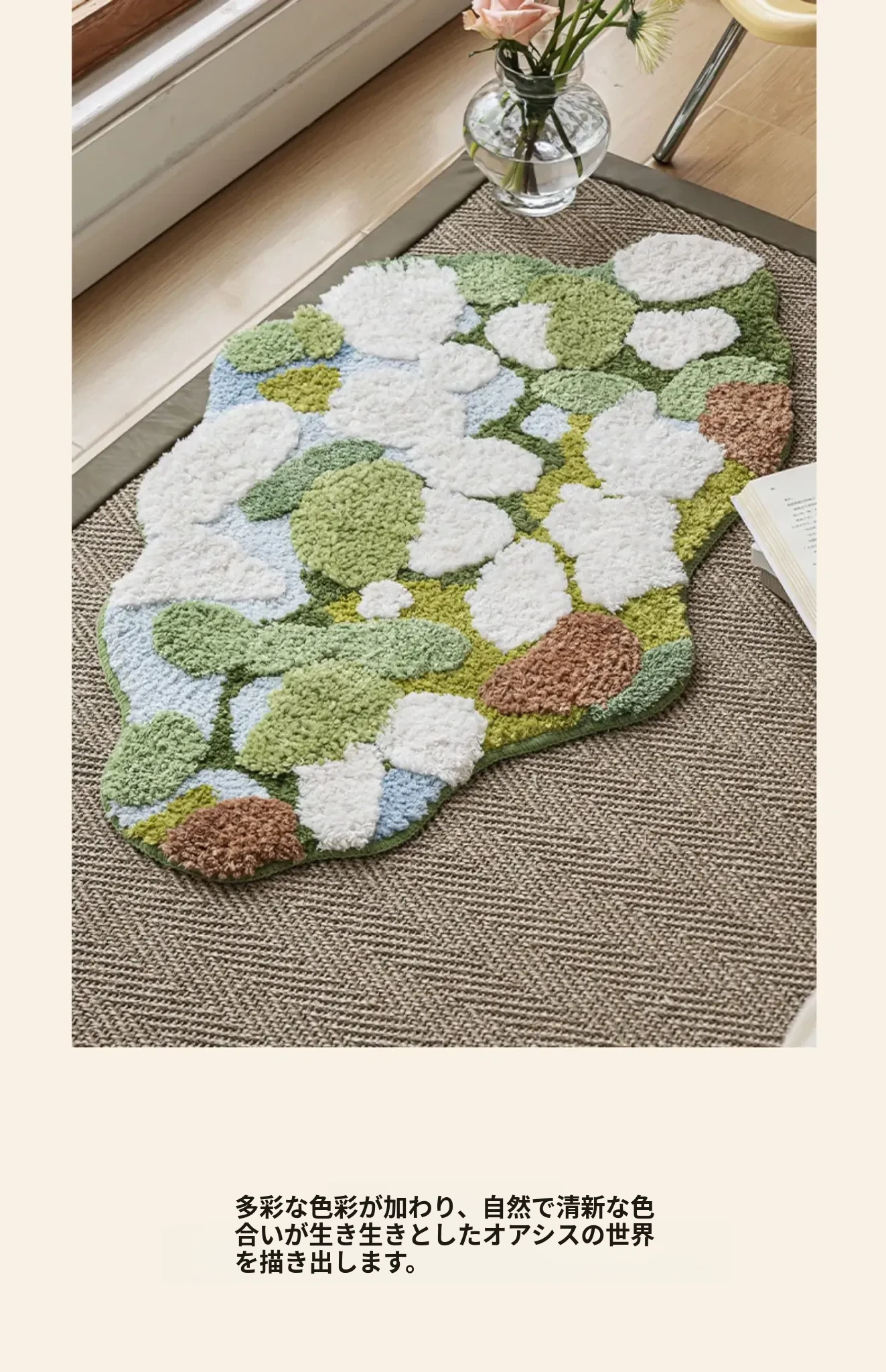Caviosen 森の苔ラグ - リビングのアクセントに最適なティーテーブルマット、寝室のベッドサイドラグ、主寝室にぴったりの高級ユニーク形状マット!心地よい空間を演出します。