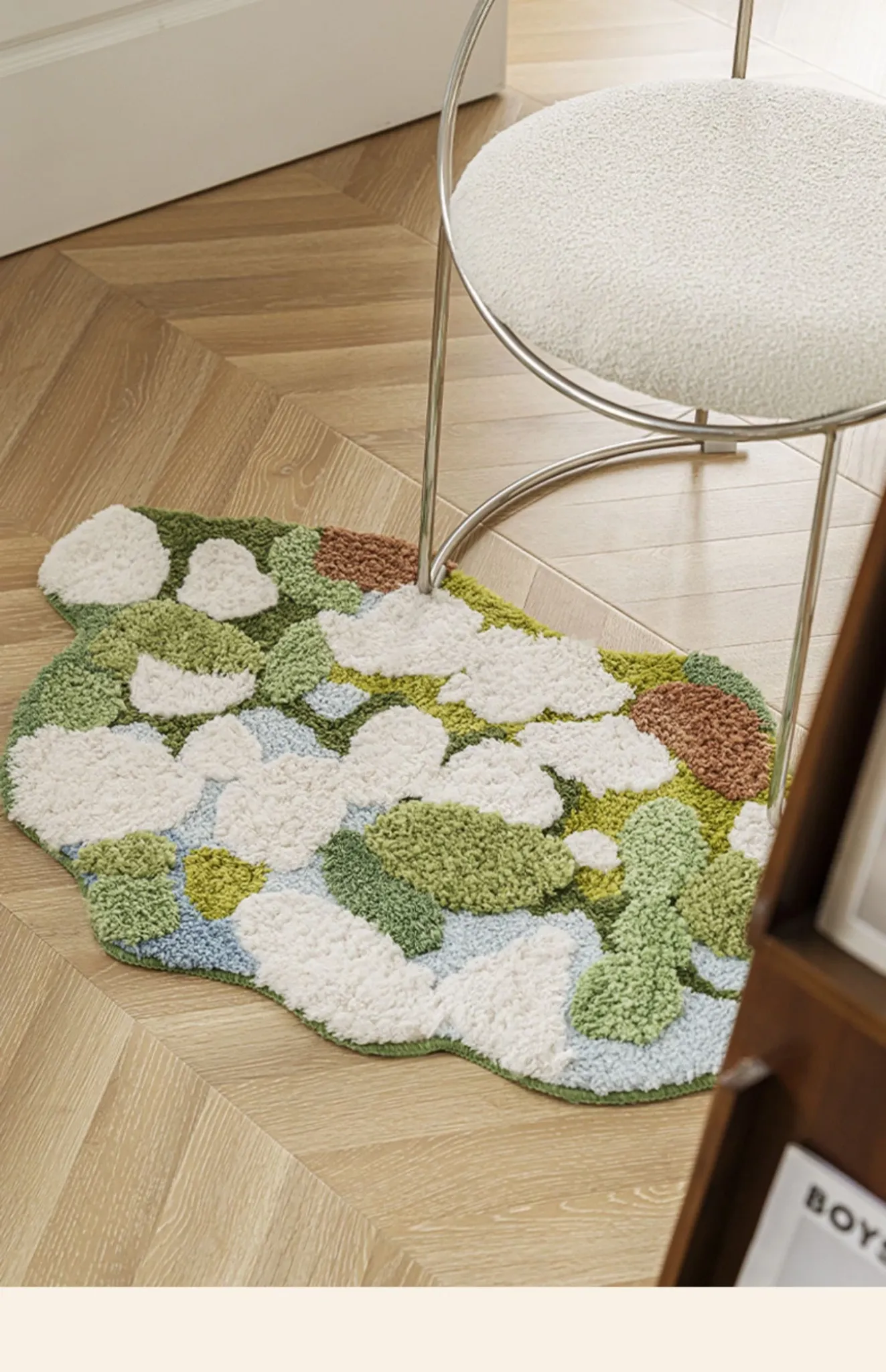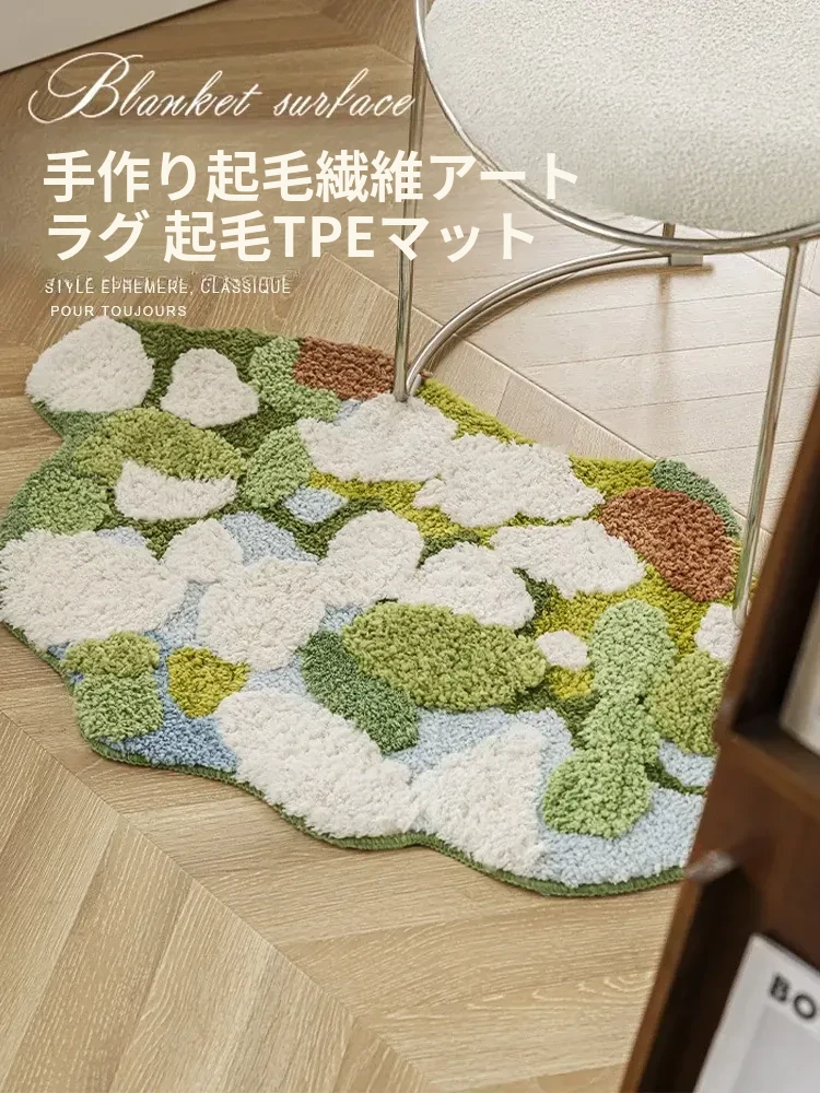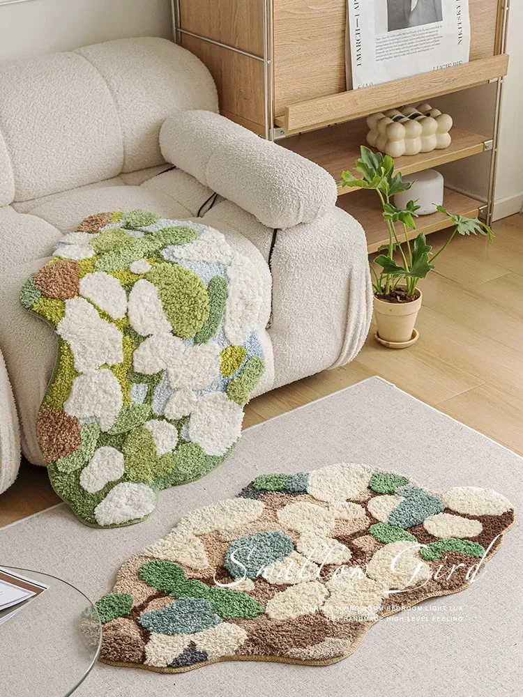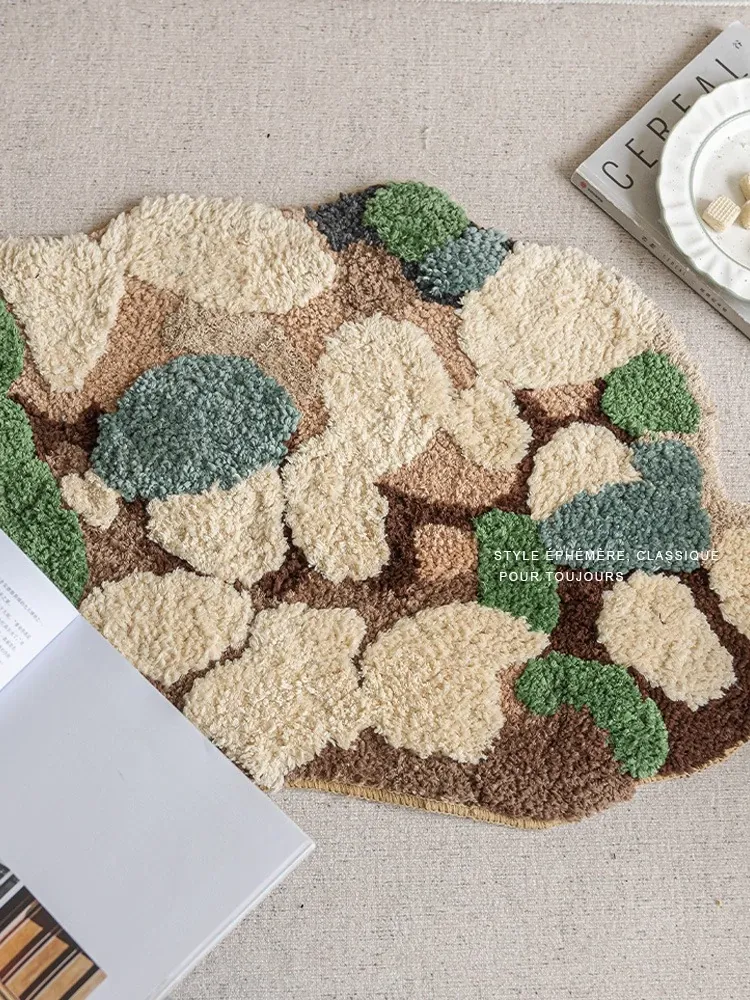 Caviosen 森の苔ラグ - リビングのアクセントに最適なティーテーブルマット、寝室のベッドサイドラグ、主寝室にぴったりの高級ユニーク形状マット!心地よい空間を演出します。
