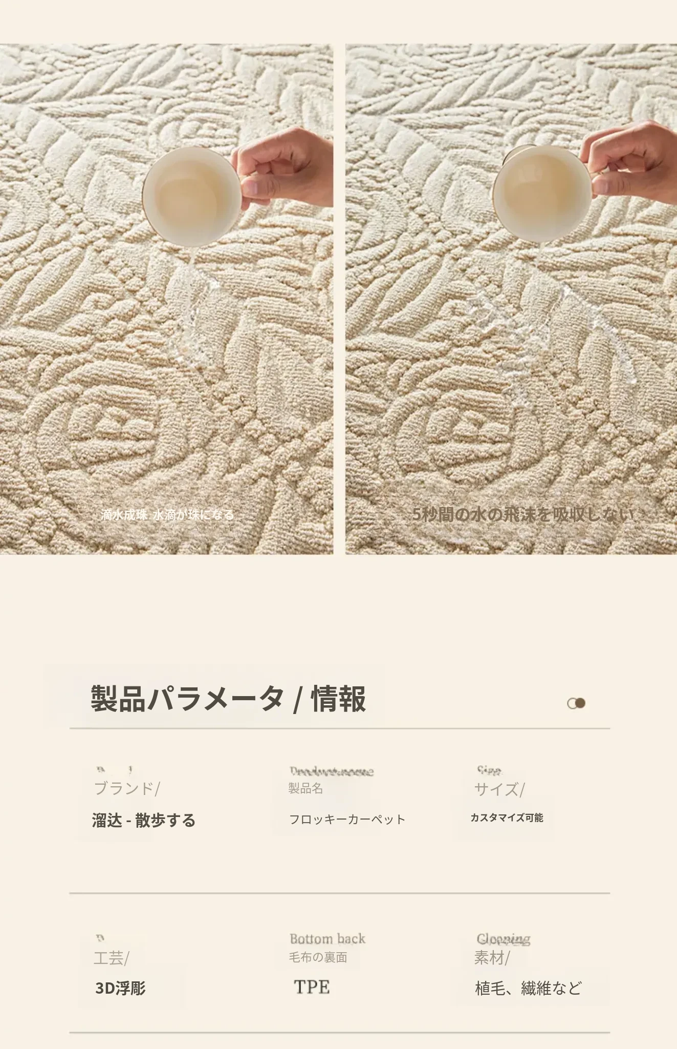 彼岸の島フロッキーTPEマット;90*95cm【ソファマット】
