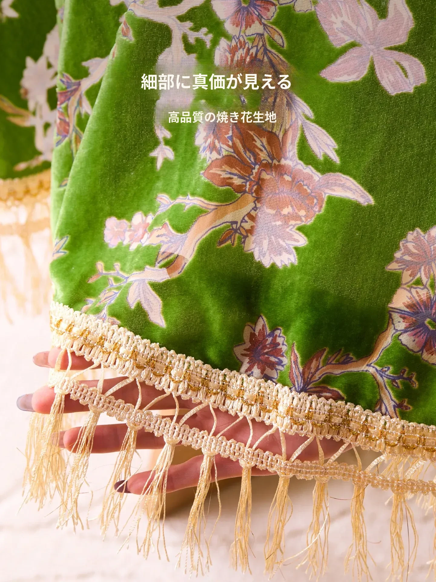 カビオセン グリーンフォレスト タッセルテーブルクロス 防水・防油 高級感あふれるラウンドテーブルクロス