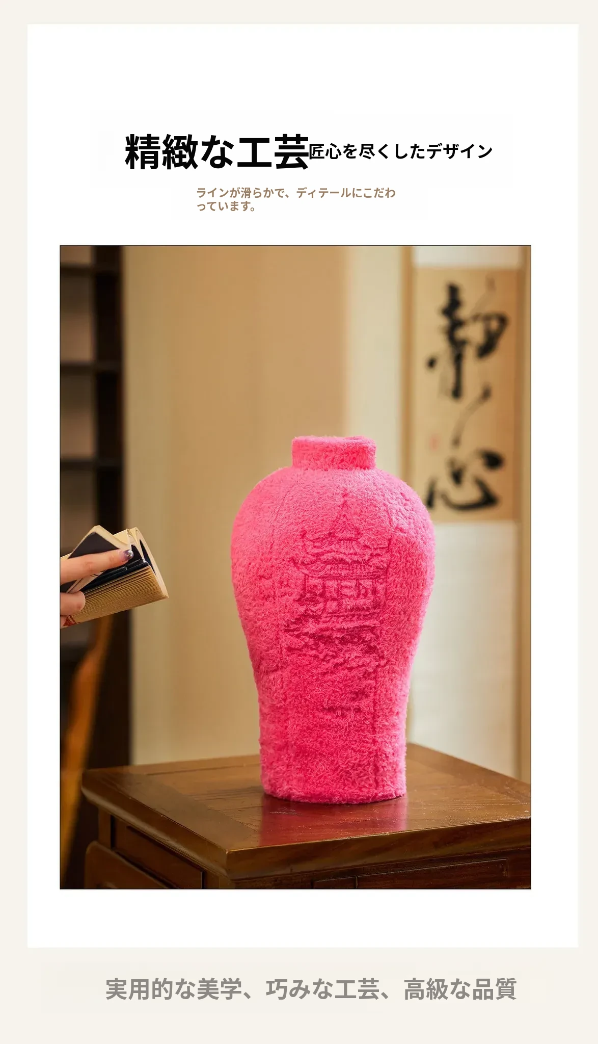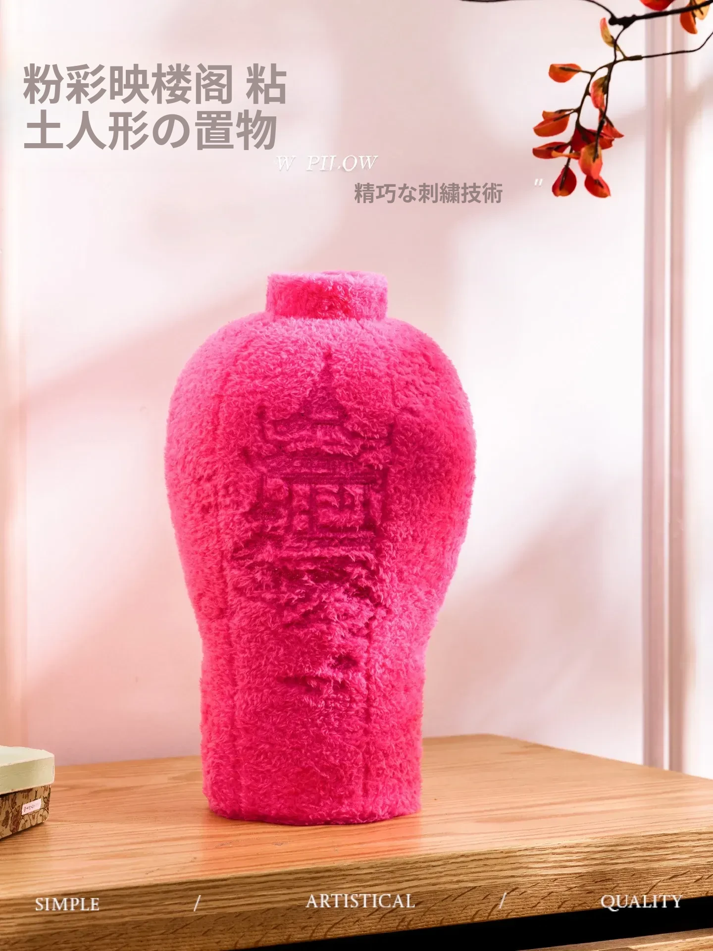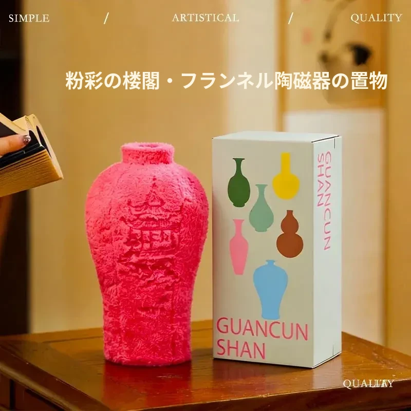 カヴィオセン新中式プラッシュフラワーベースクッション - リビングルームにぴったりの刺繍装飾品、ユニークなデザインのデスクトップギフト!