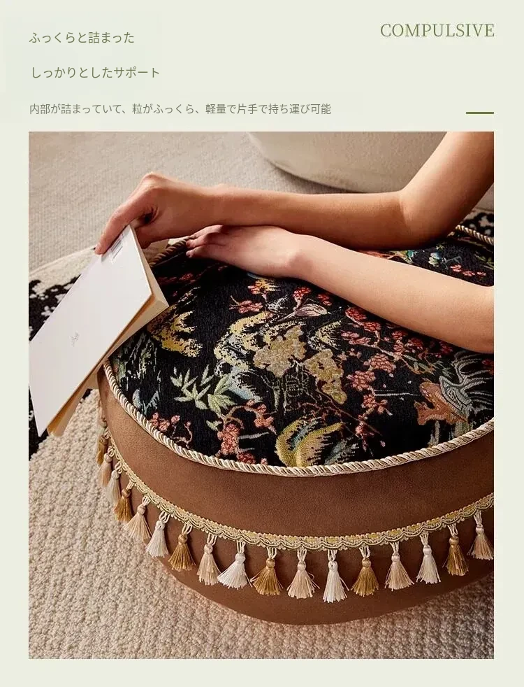 Caviosen新中式蒲団|リビングにぴったりの座れる座布団|畳スタイルの高級感あふれるデザインで、読書やリラックスに最適!おしゃれなミニスツールとしても楽しめます。