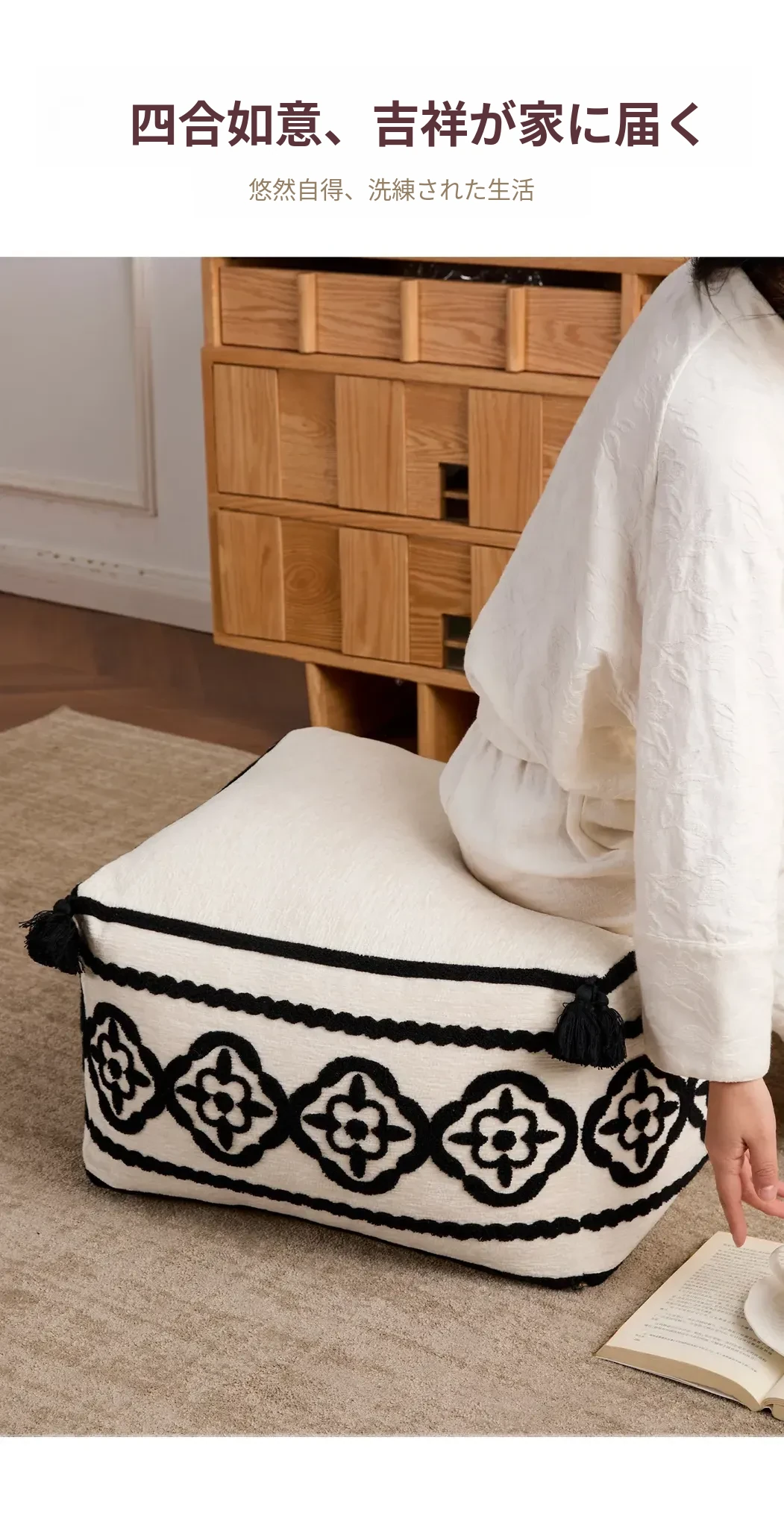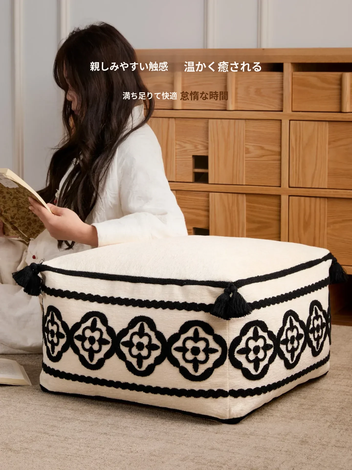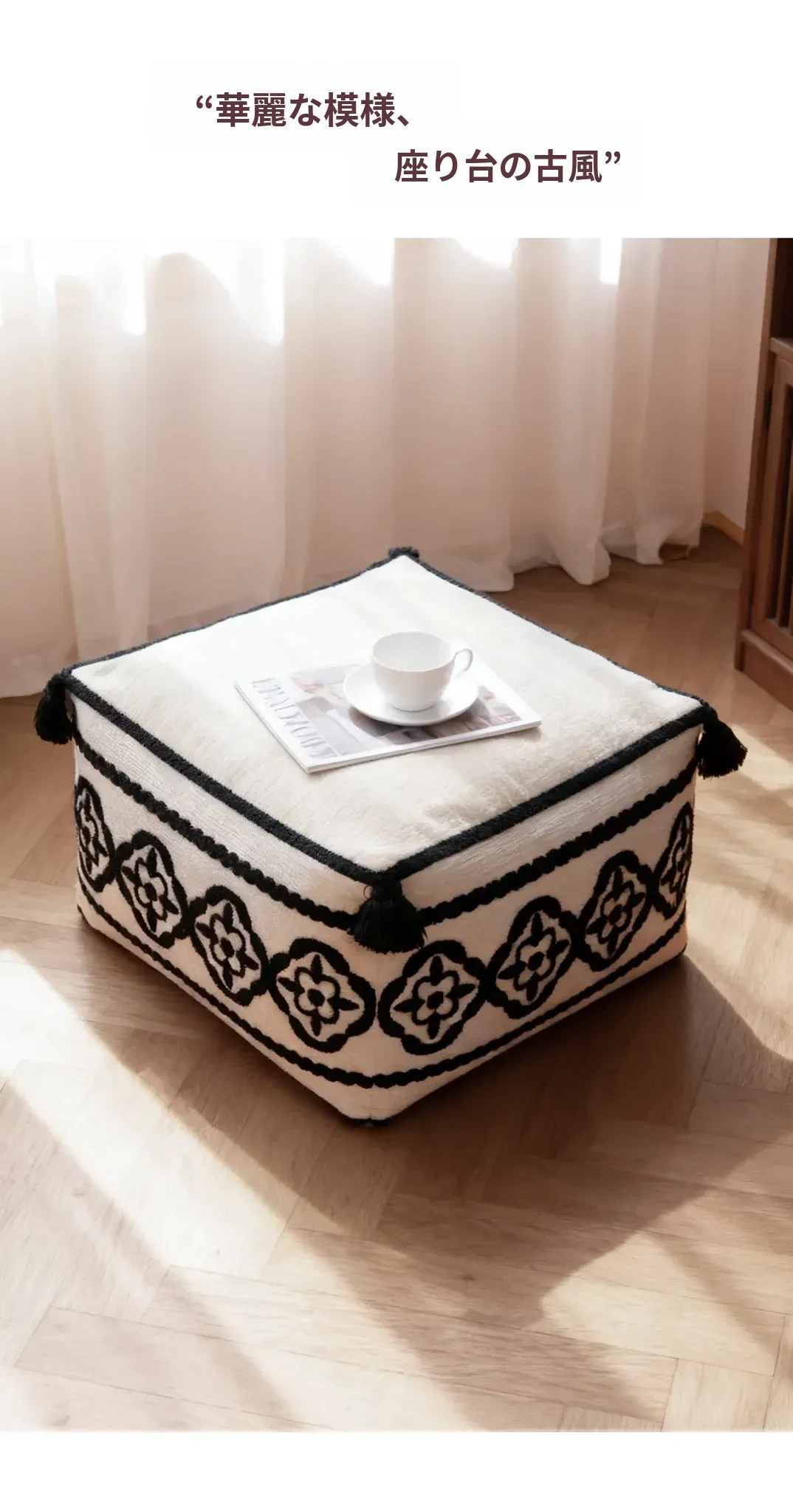 カヴィオセンのふわふわクッション stool - リビングルームに最適なテーブル用スツール!柔らかくて快適、ソファの足元や窓際にもぴったり。おしゃれなデザインでお部屋を華やかに!