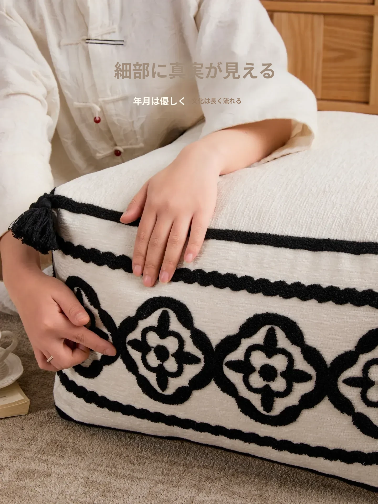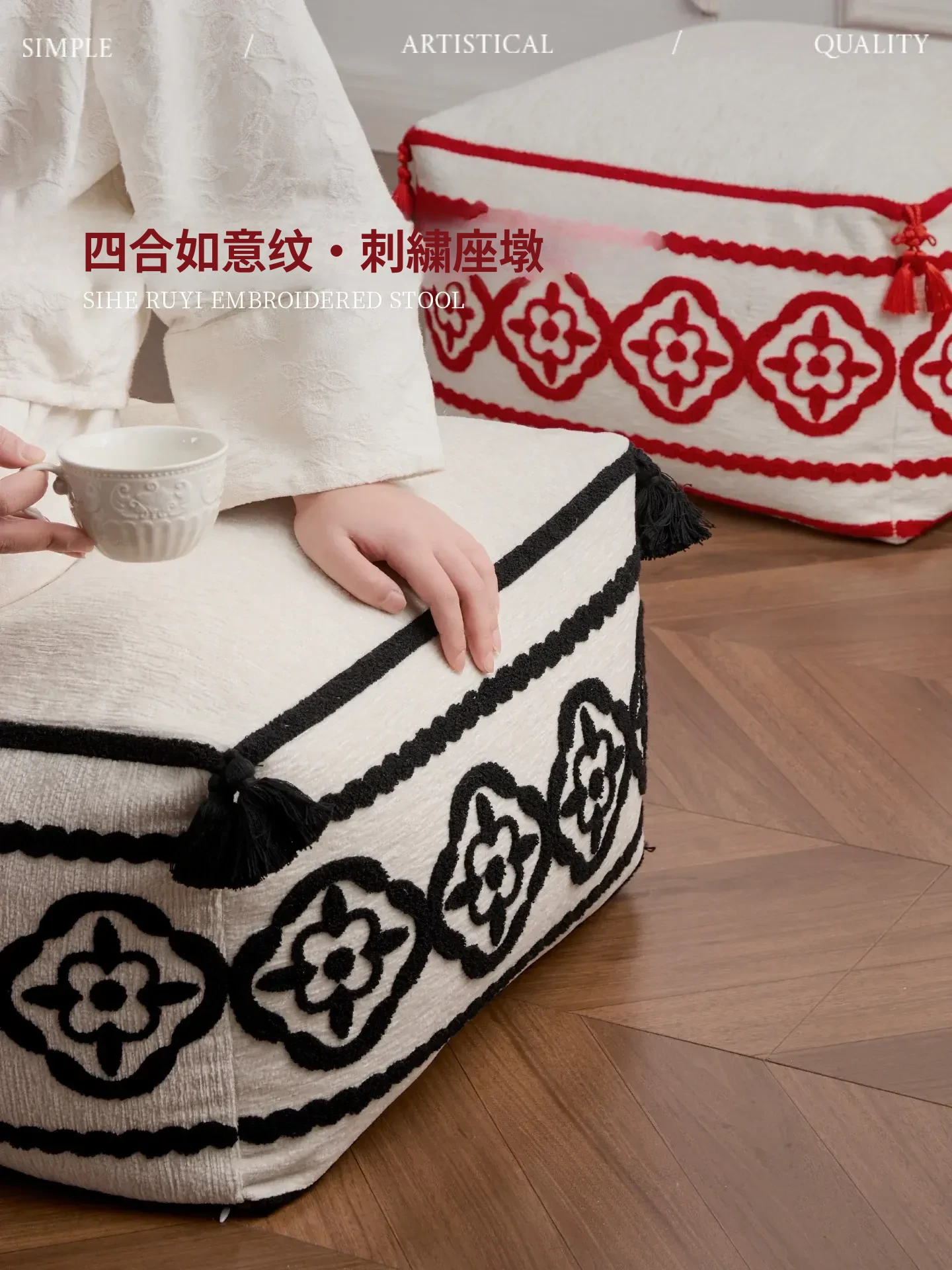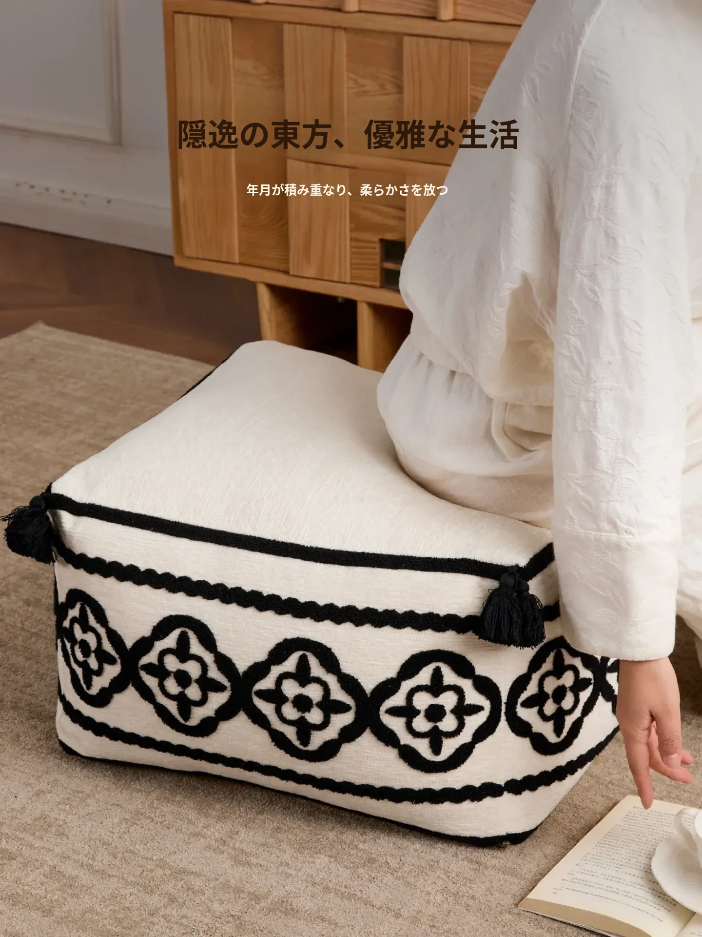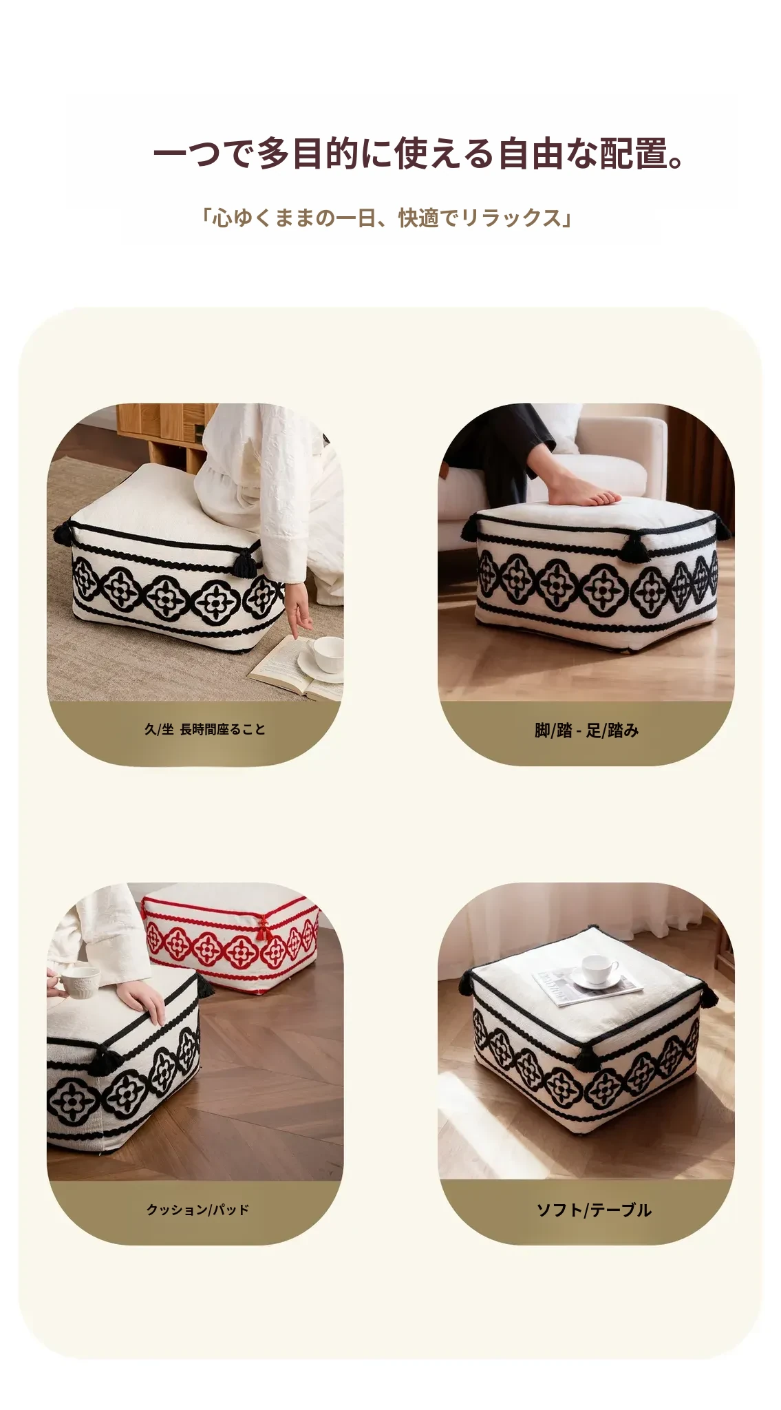 カヴィオセンのふわふわクッション stool - リビングルームに最適なテーブル用スツール!柔らかくて快適、ソファの足元や窓際にもぴったり。おしゃれなデザインでお部屋を華やかに!