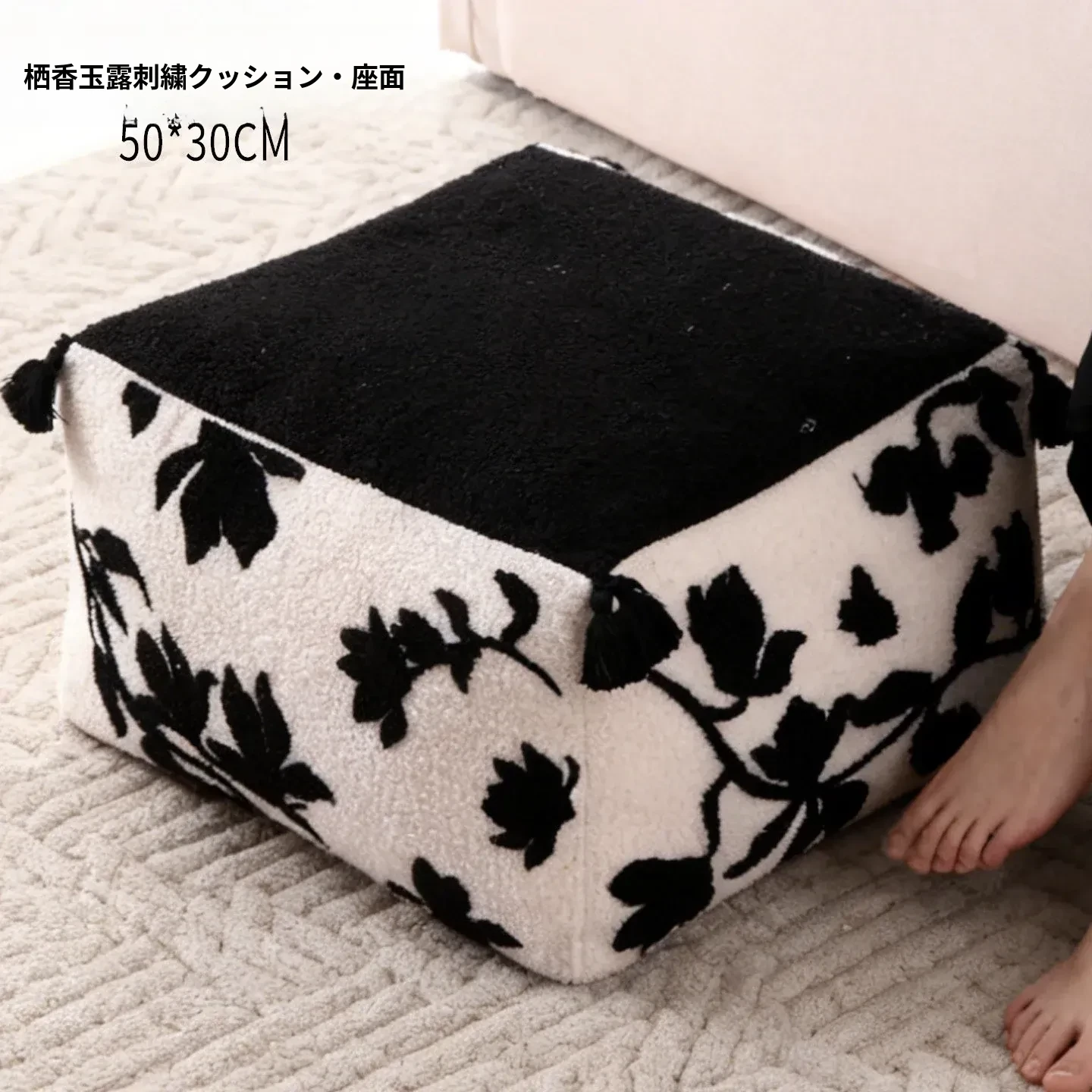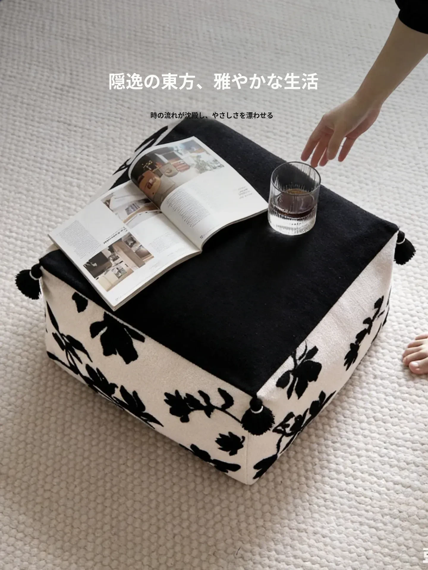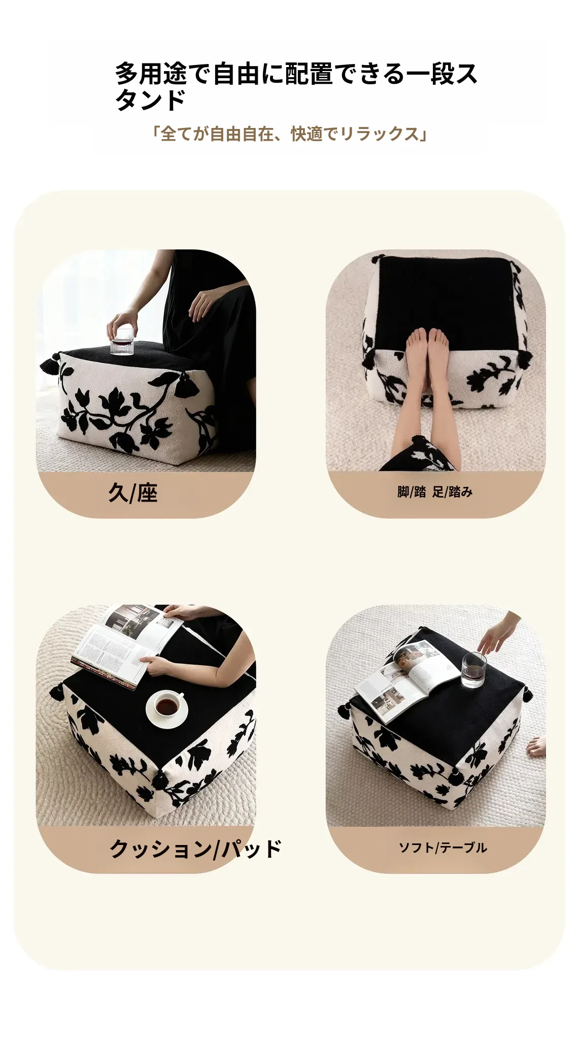 カビオセン毛布のソファスツール - 洗えるクッション付きのロータイプのテーブルスツール、リビングや畳に最適な快適な足置き。