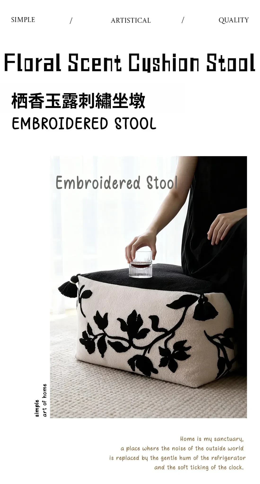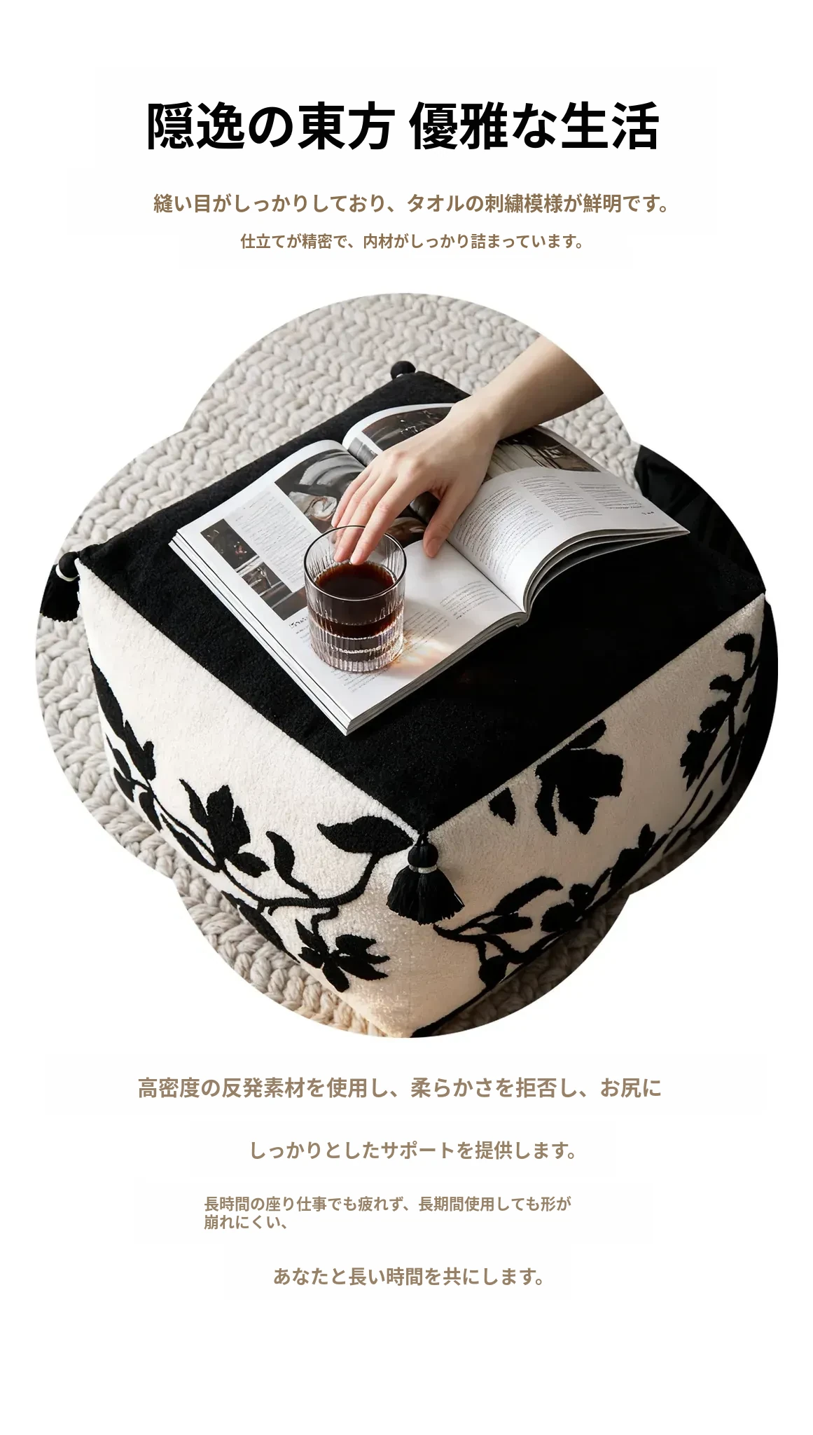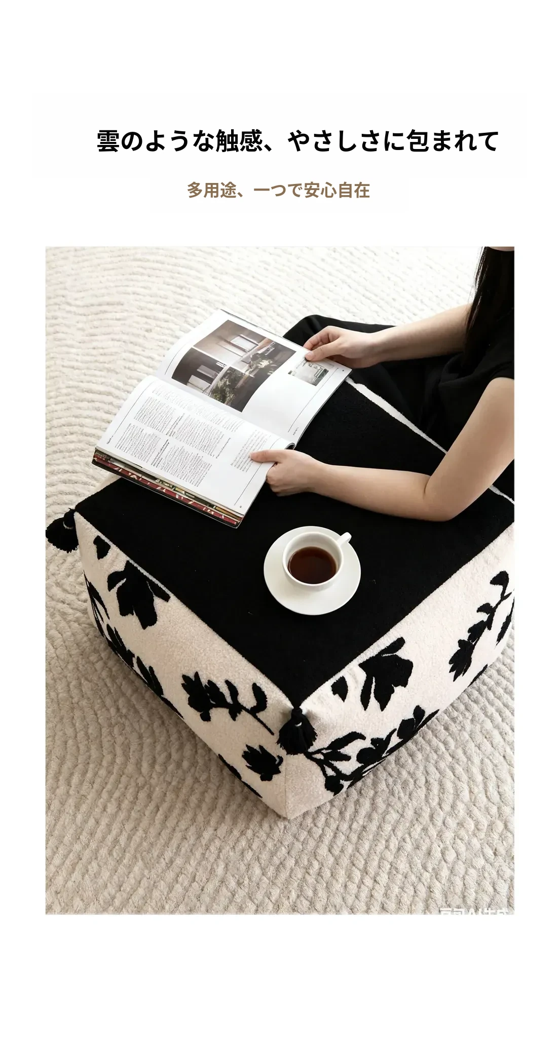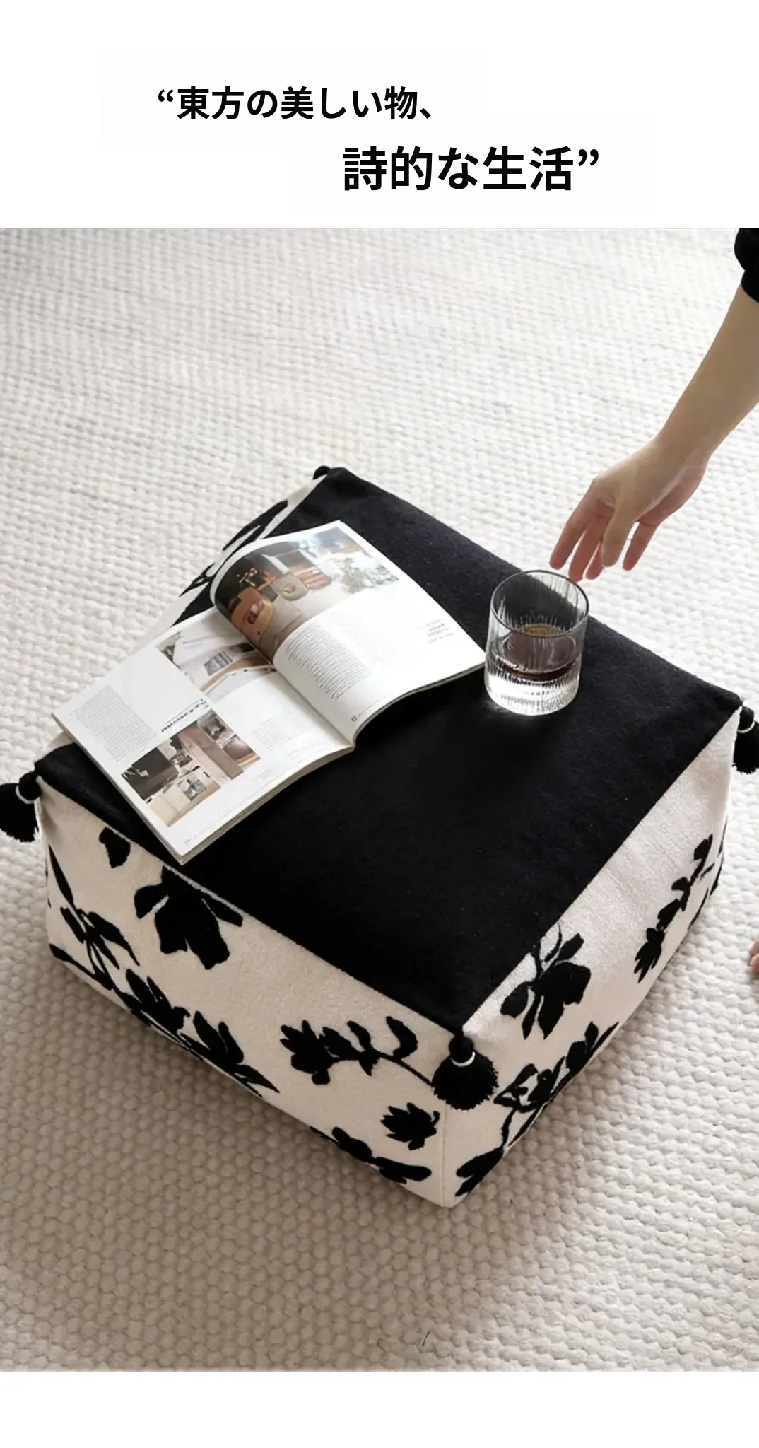 カビオセン毛布のソファスツール - 洗えるクッション付きのロータイプのテーブルスツール、リビングや畳に最適な快適な足置き。