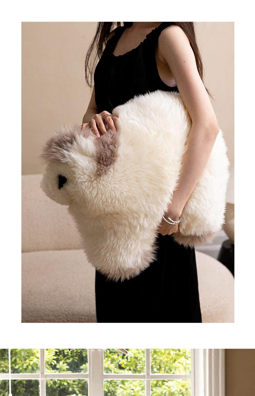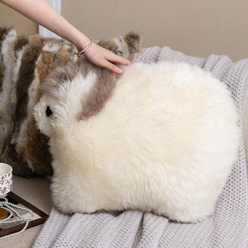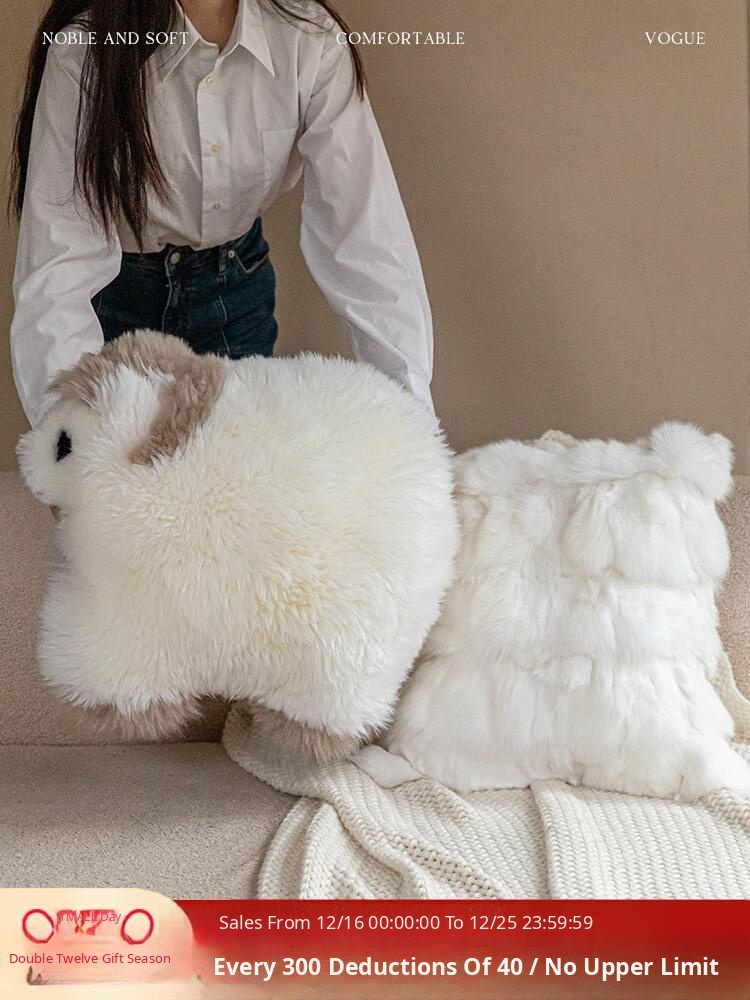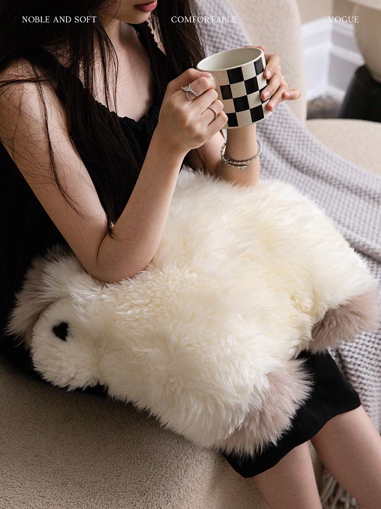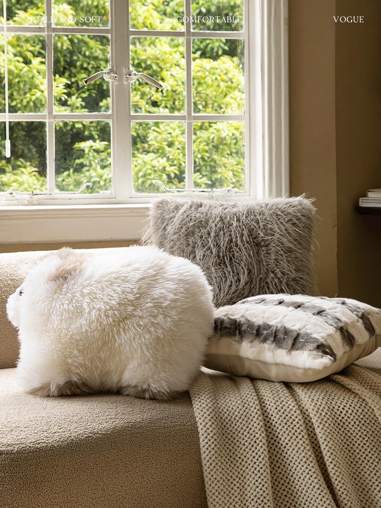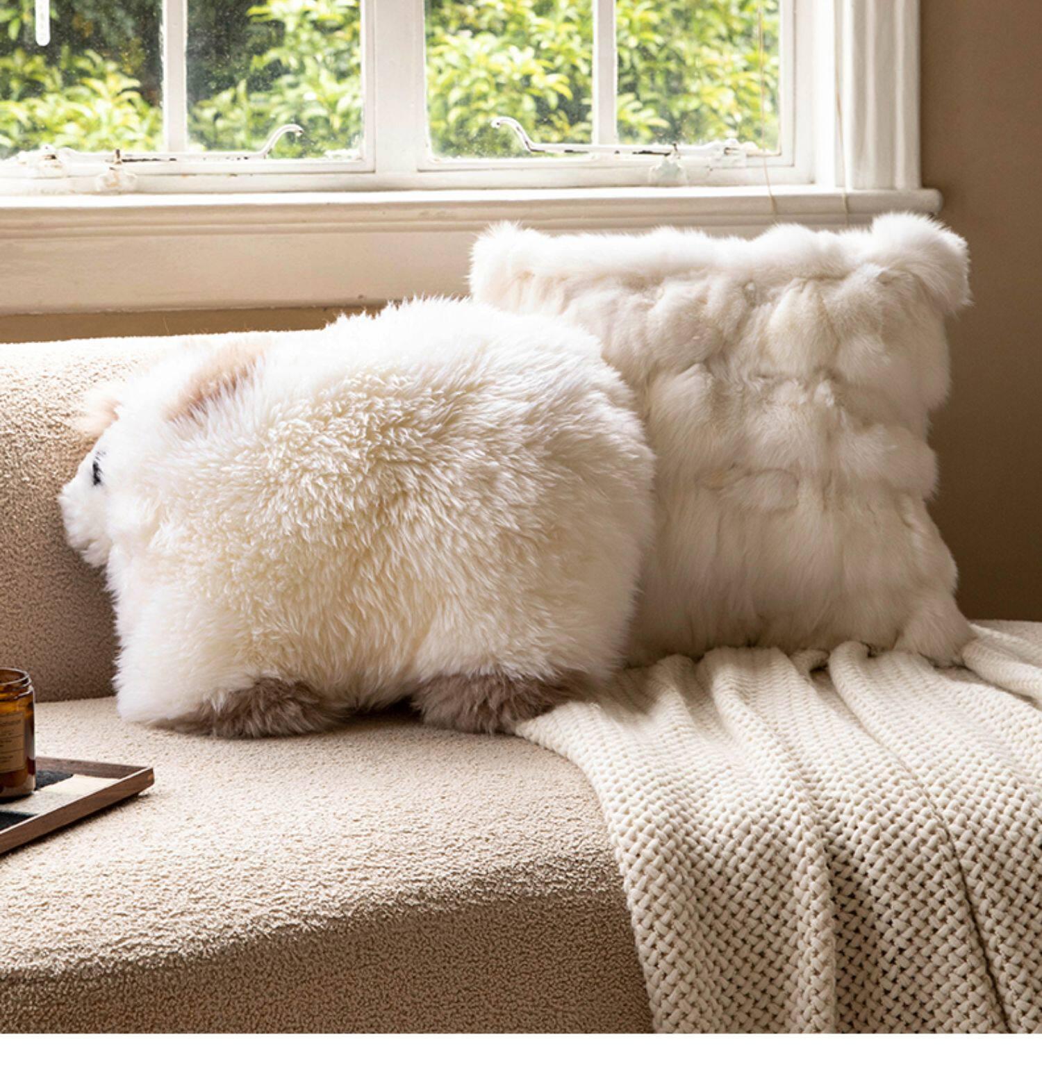 Caviosen Premium Leather Faux Fur Pillow - Stylish Shaped Lumbar Cushion for Living Room Sofa, Adorable Kids' Room Support Pillow, Elegant Headboard Accent Cushion