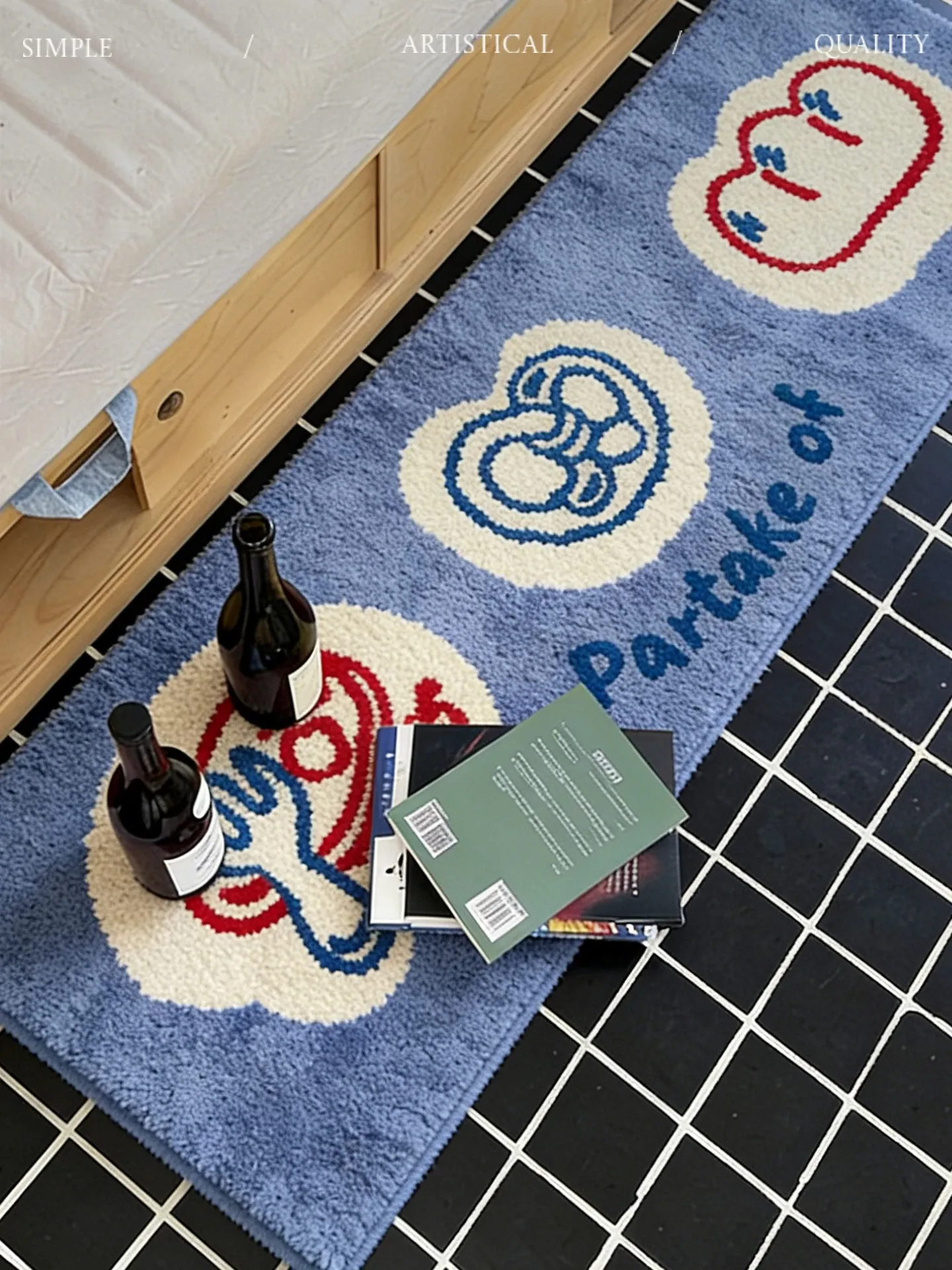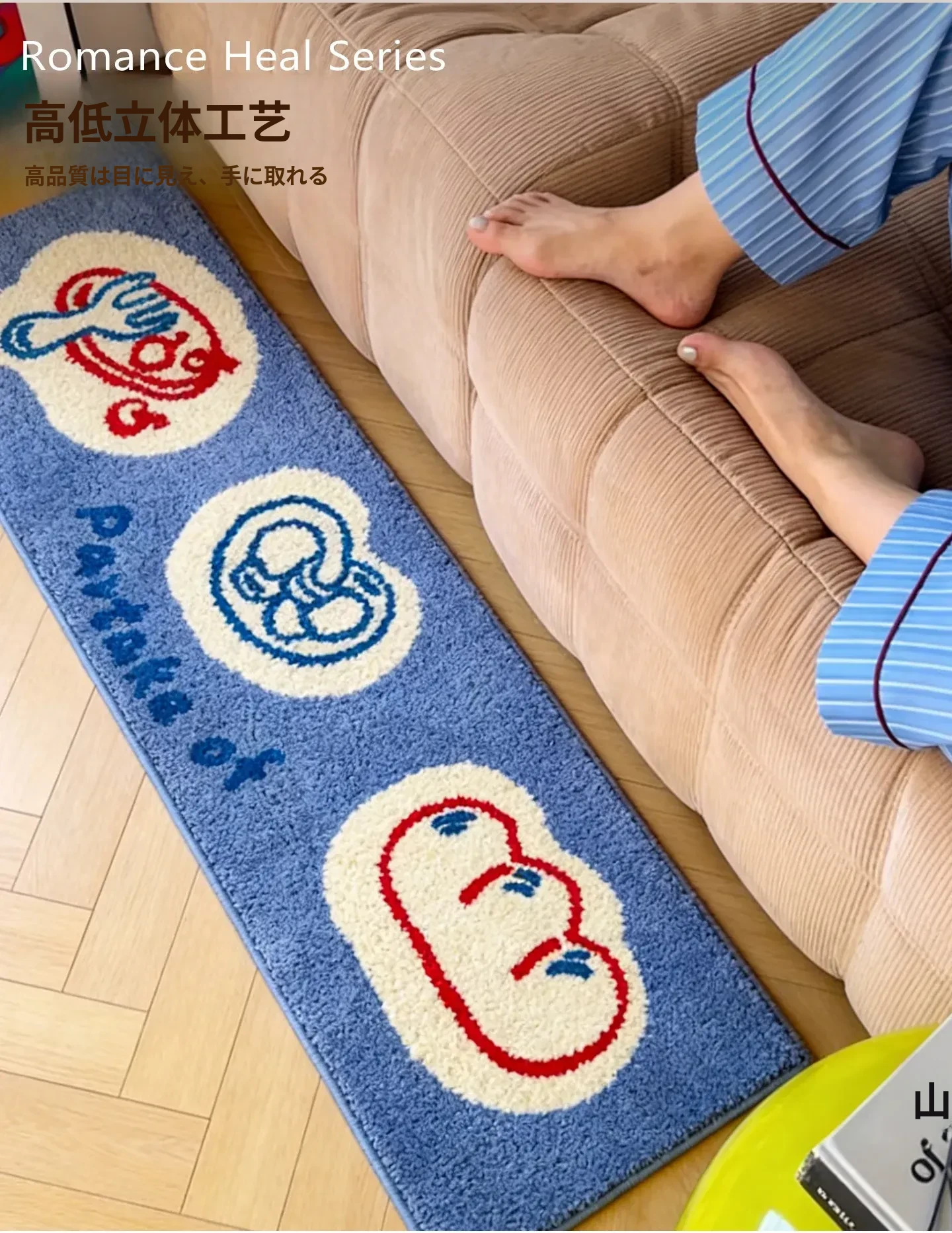 カビオセン 高級感溢れるクリエイティブマット おしゃれな寝室用カーペット 主寝室ベッドサイドラグ スタイリッシュなロングストリップデザイン