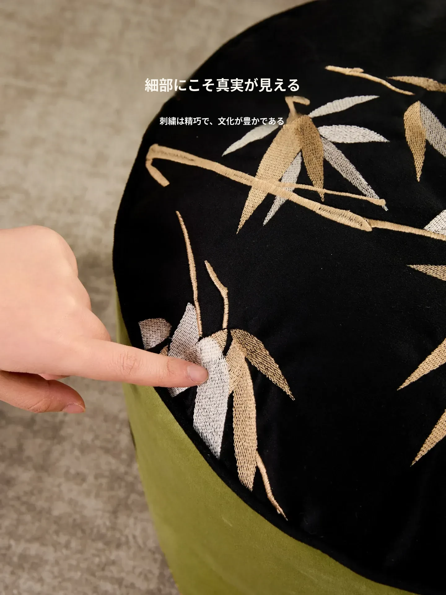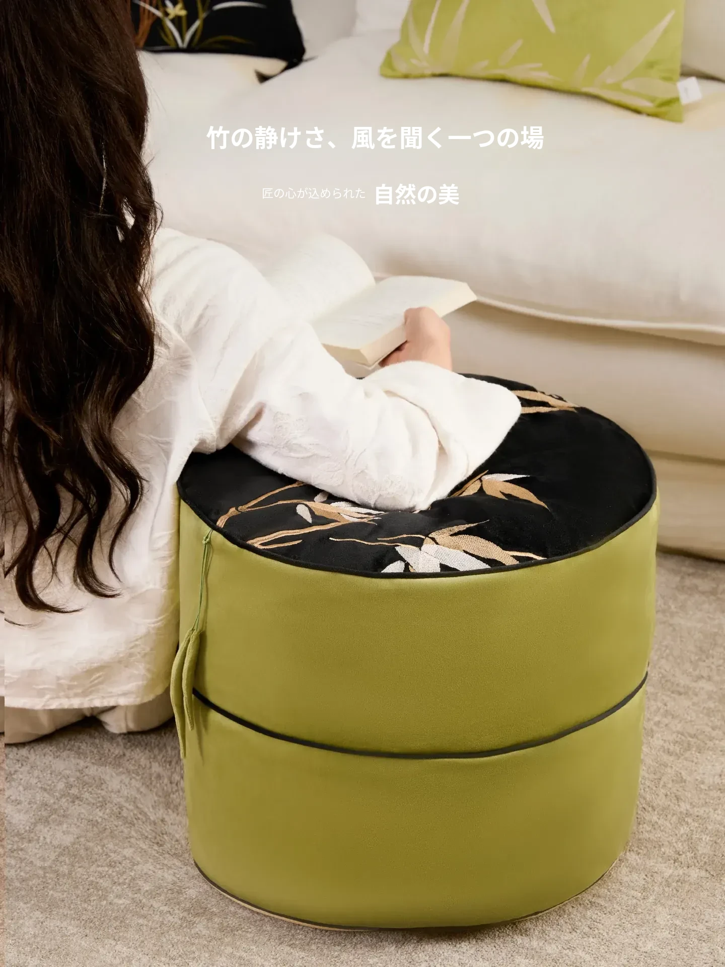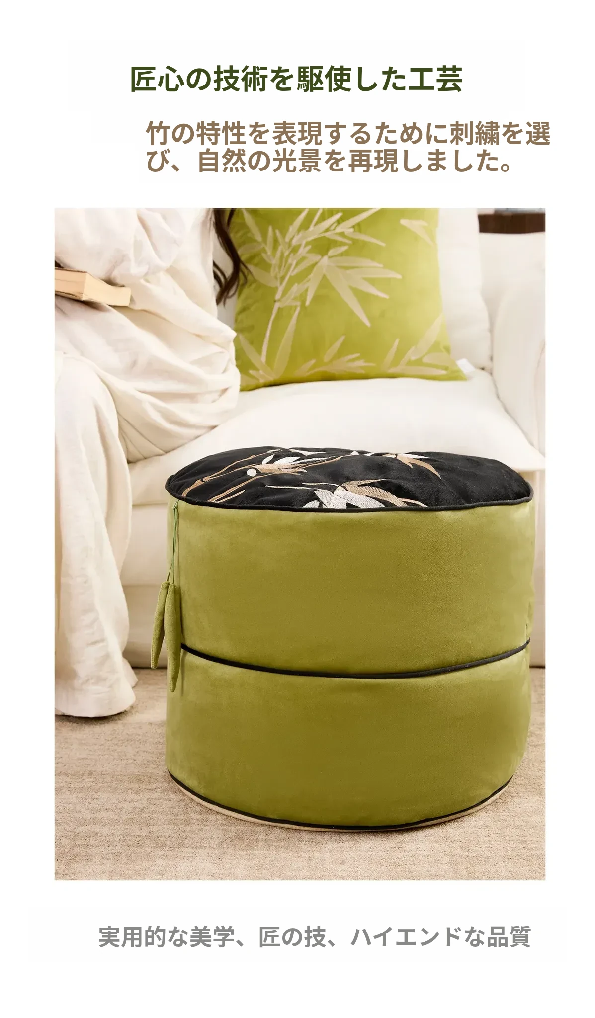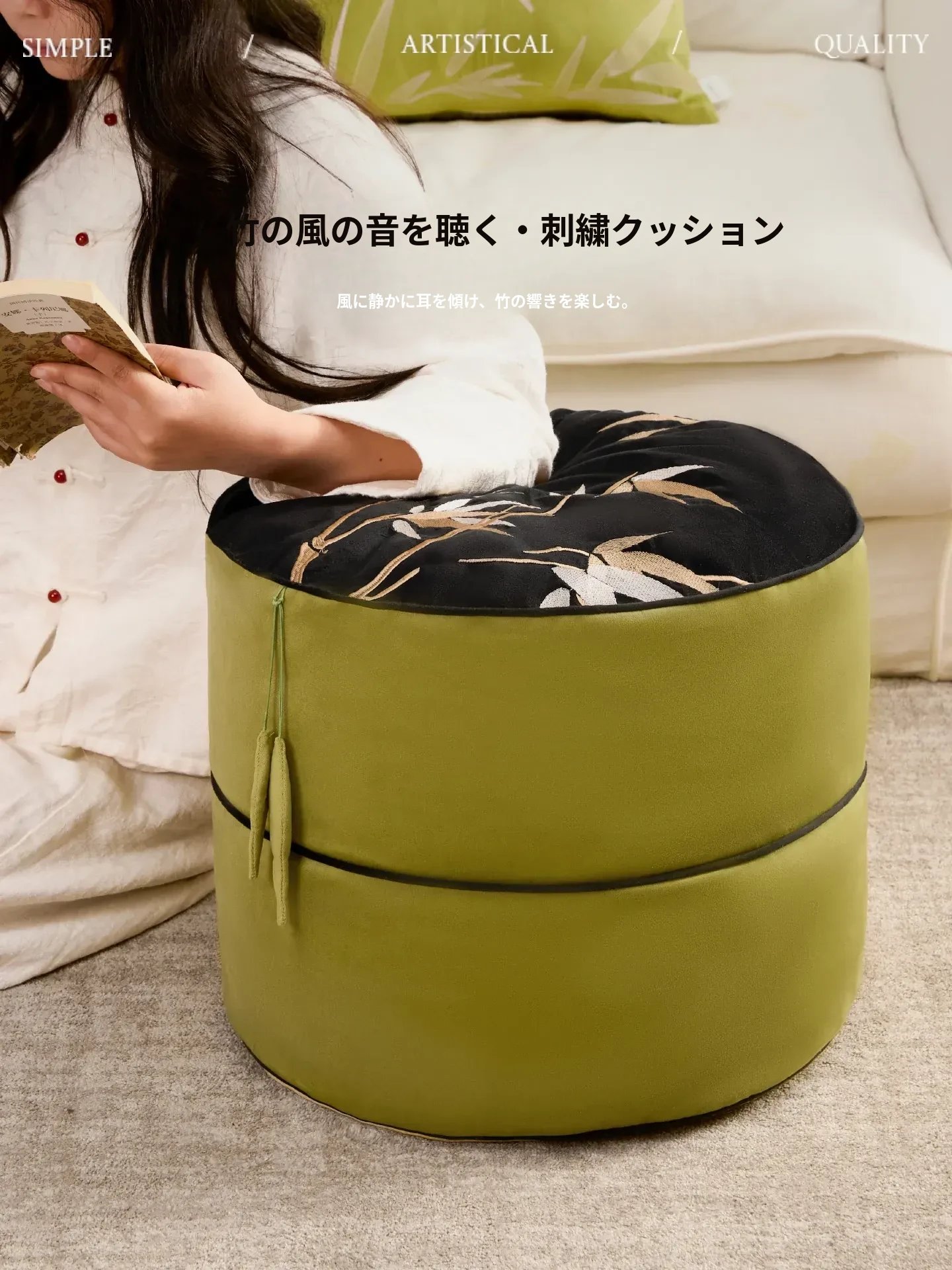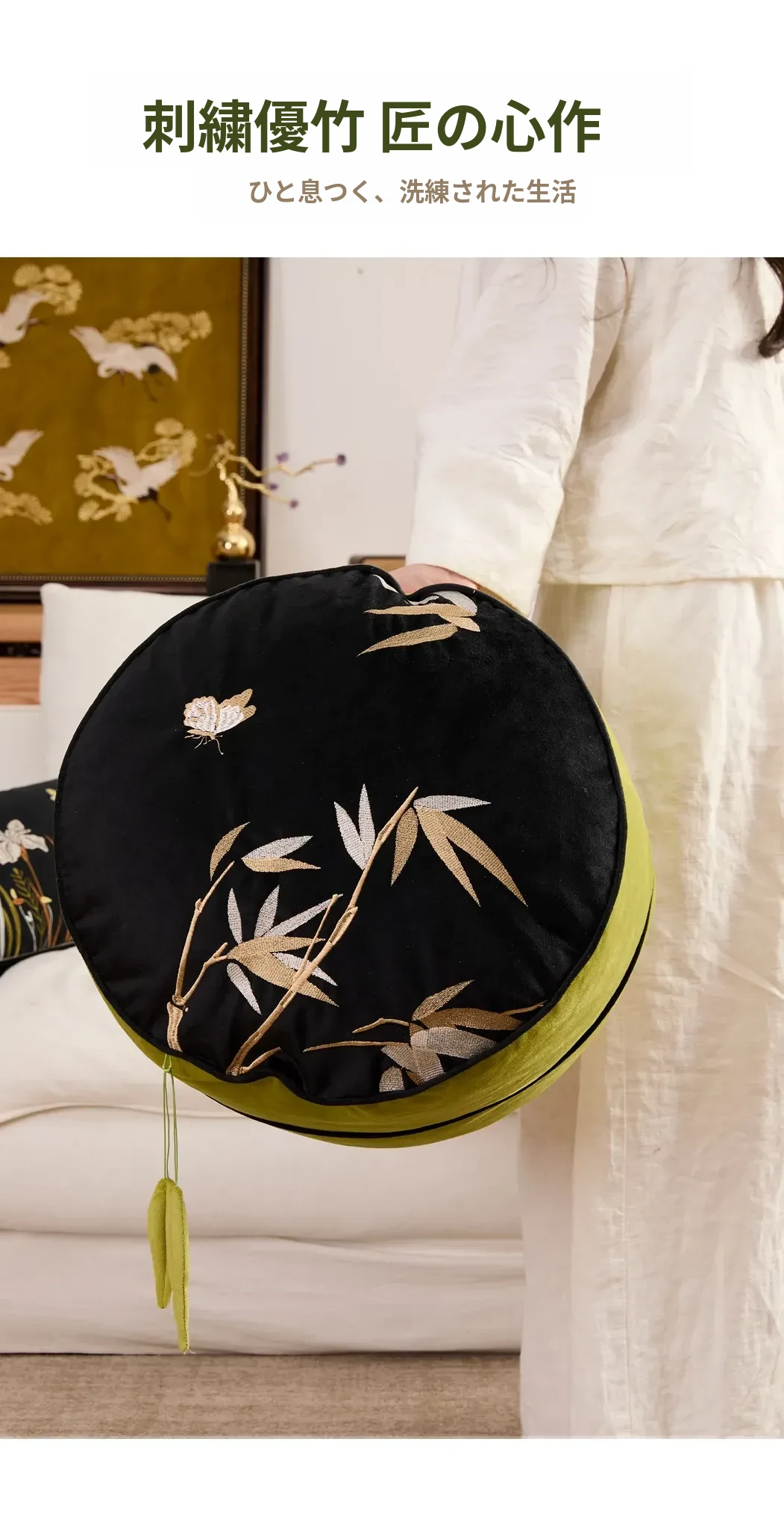 竹の風刺繍座布団