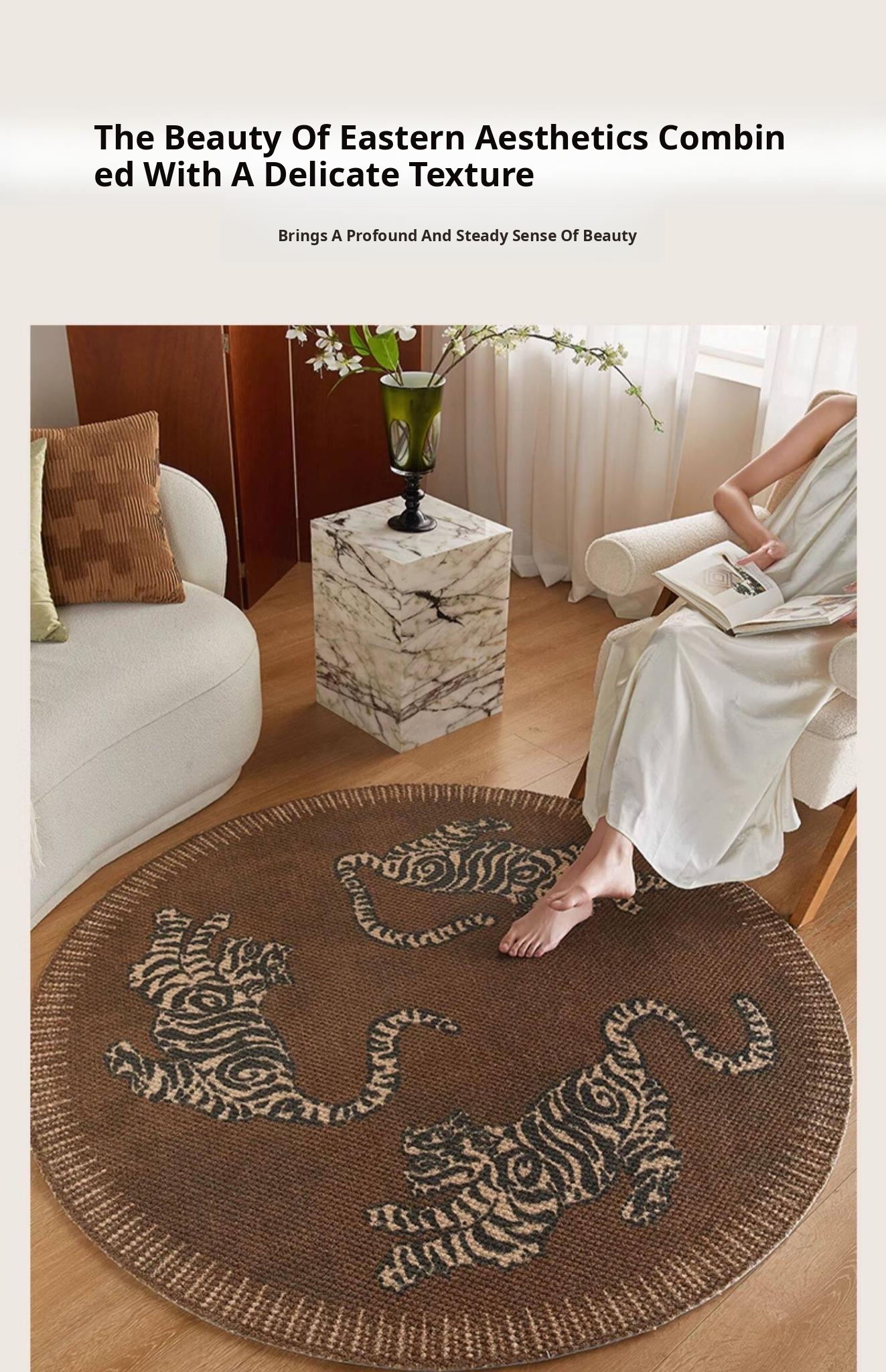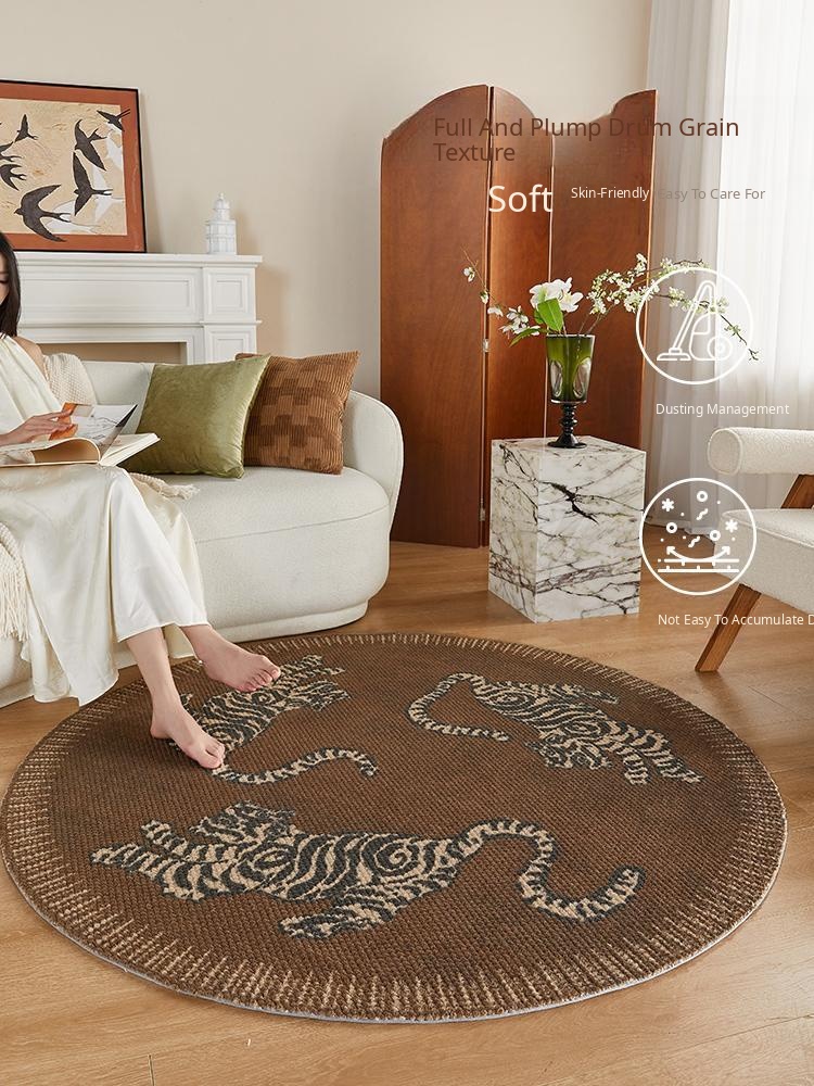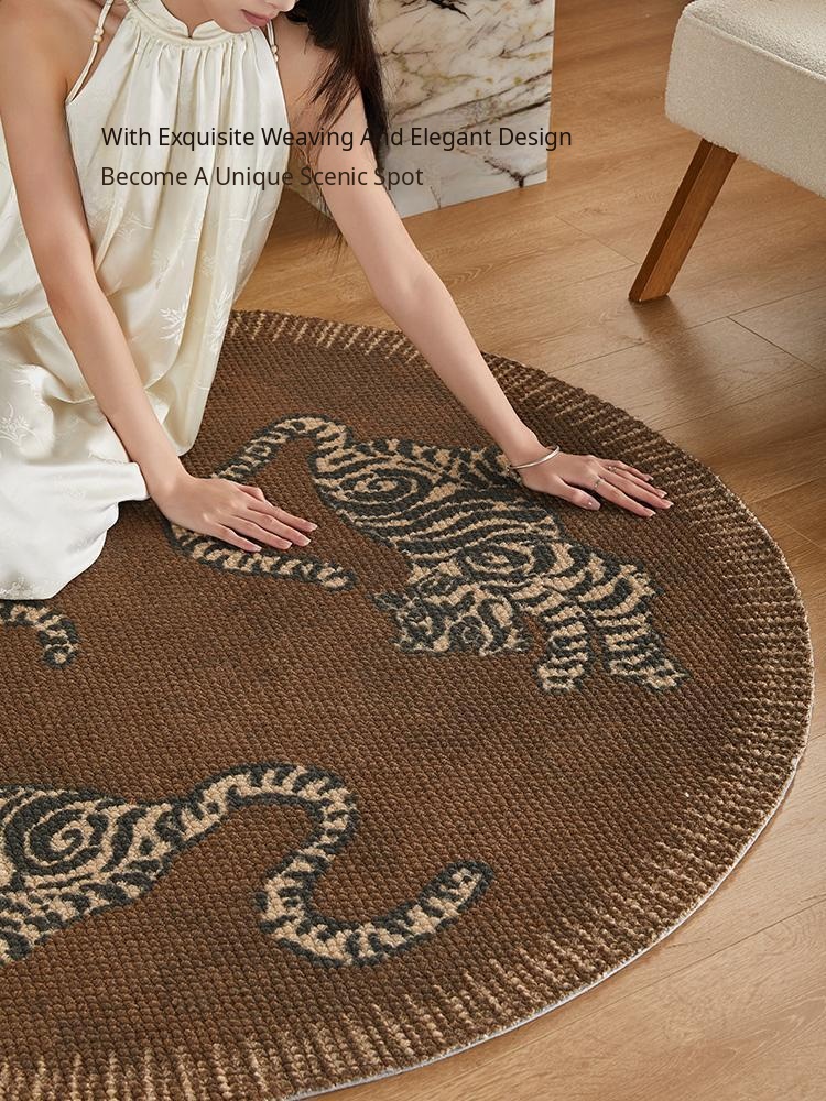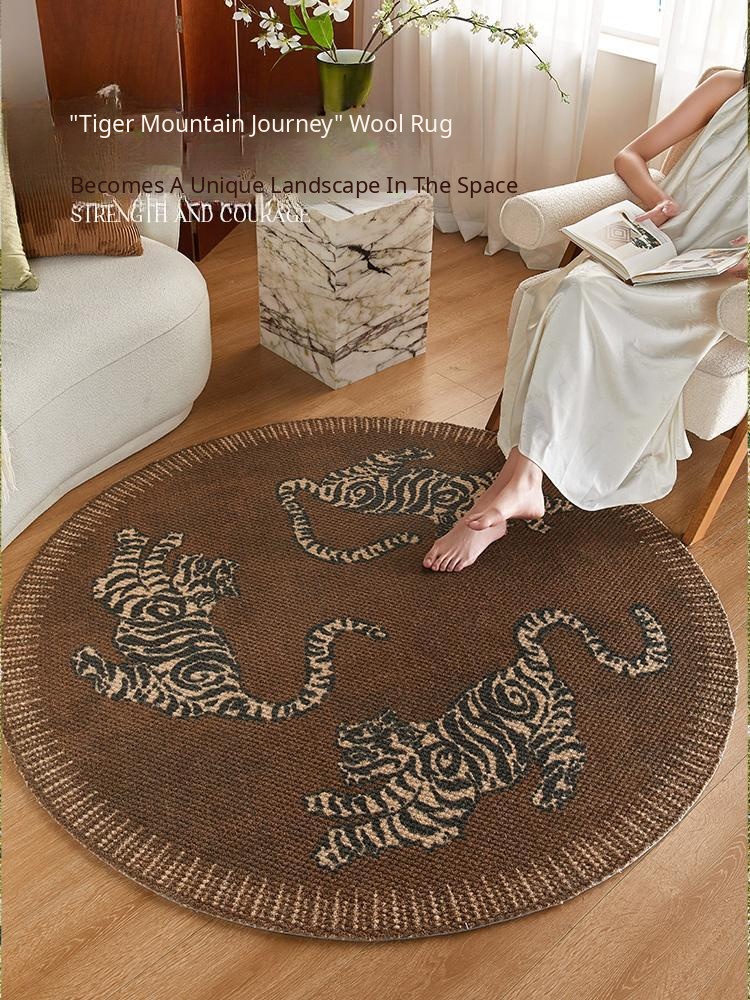 Chinese Style Round Wool Area Rug - Stain-Resistant Soft Carpet for Living Room, Sofa, Armchair, Entryway, and Makeup Chair. Perfect for Adding Elegance and Comfort to Your Space!