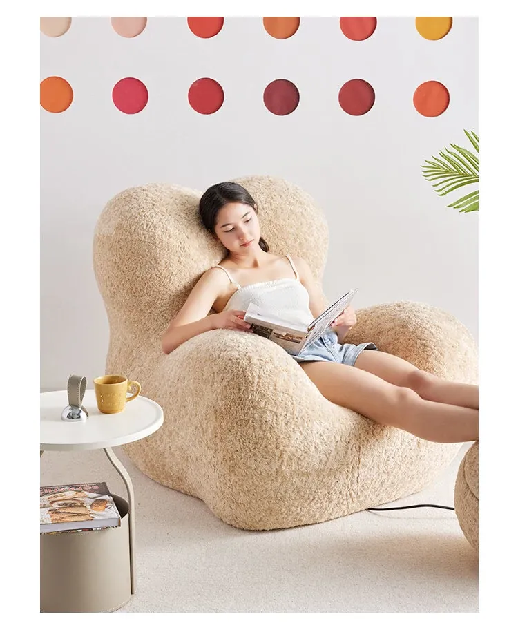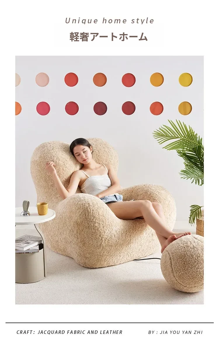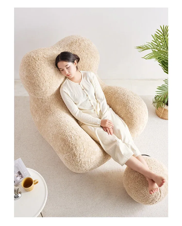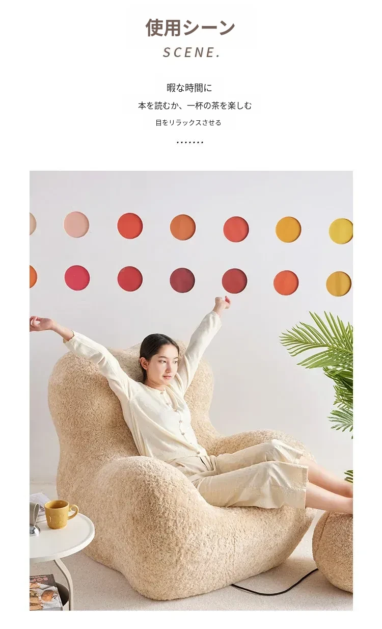 ママの抱擁デザイン!クリエイティブなリラックスソファ、トレンディなクリーム風リビング用単体チェア、横になれる贅沢なひとときを。快適さとスタイルを兼ね備えた理想的な選択!