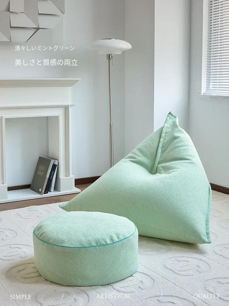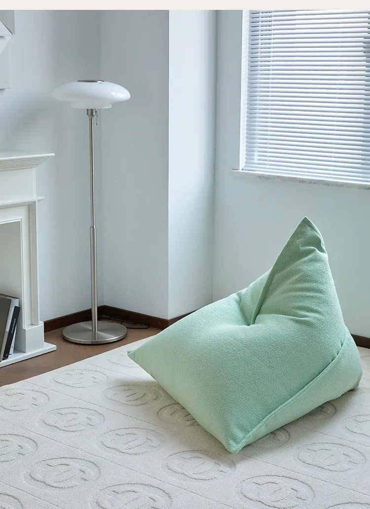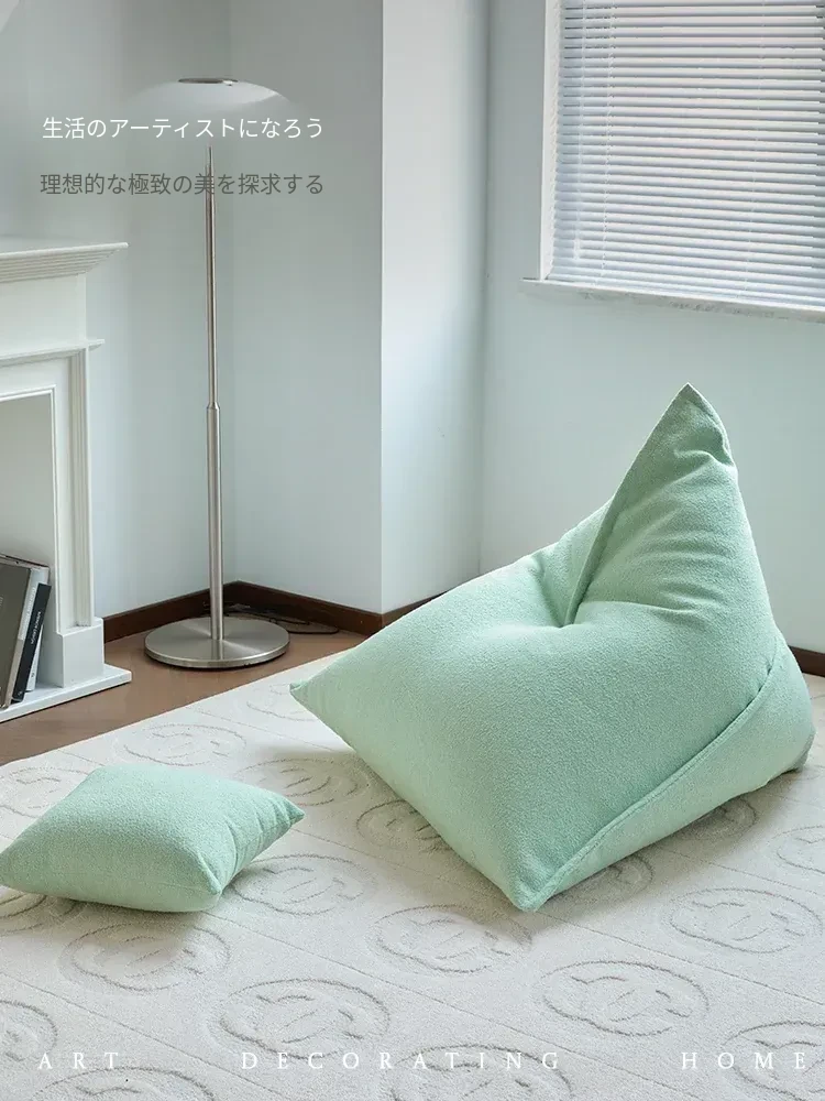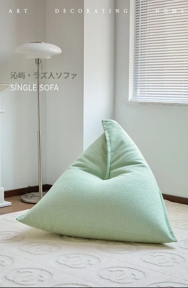 リラックス三角ビーズソファ – 寝転びも座りも自由自在!小型住宅やバルコニーにぴったりの一人用タタミスタイル。快適な休憩スペースを提供する、あなたの新しいお気に入りの座椅子!