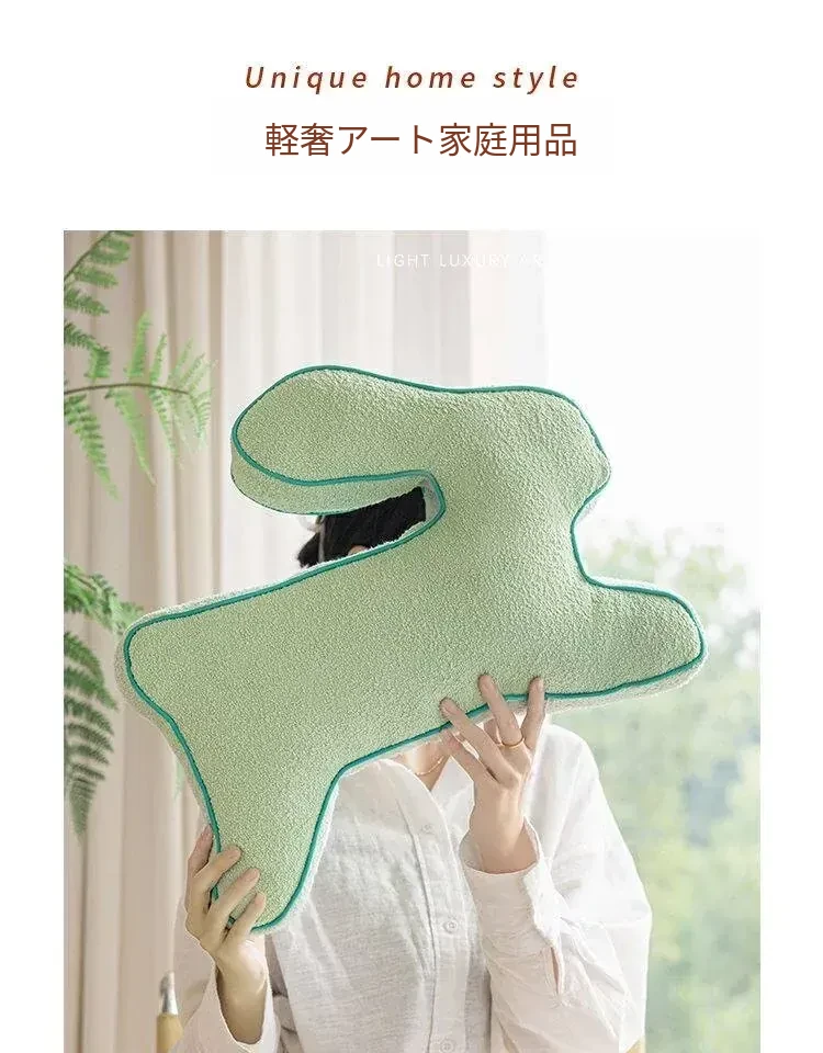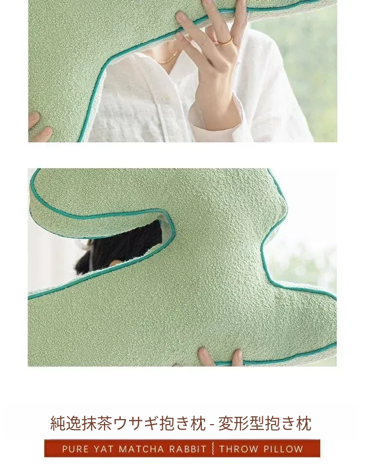クリーミー抹茶色ラビットデザイン抱き枕 - 子供部屋やリビングにぴったり!おしゃれなベッドサイドクッション、ソファに最適な大きなバックレスト。快適さと可愛さを兼ね備えたアイテムで、お部屋を明るく彩ります!