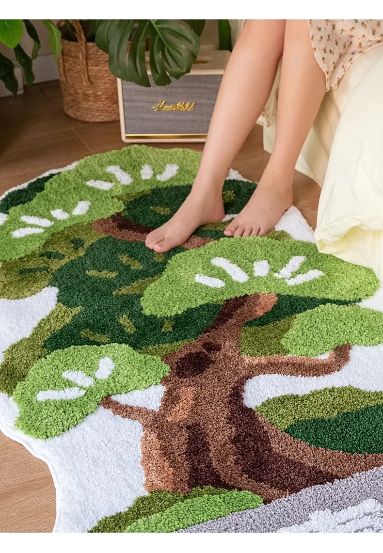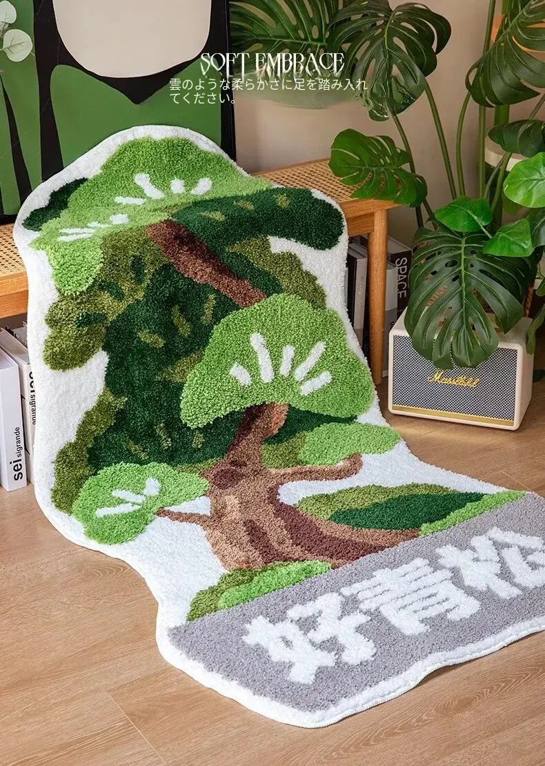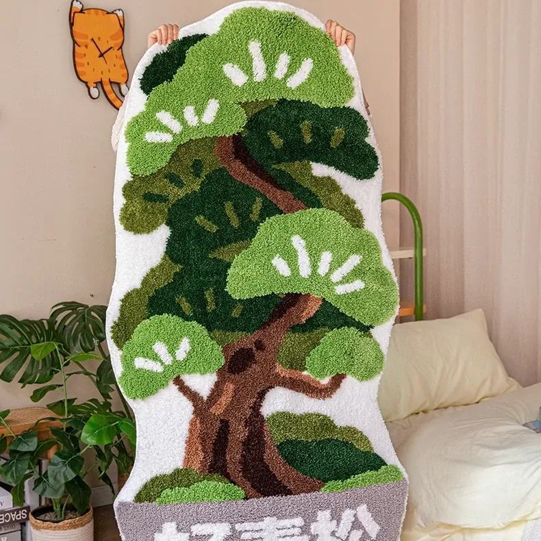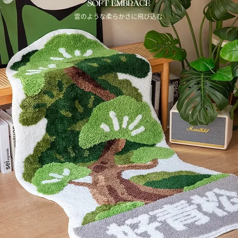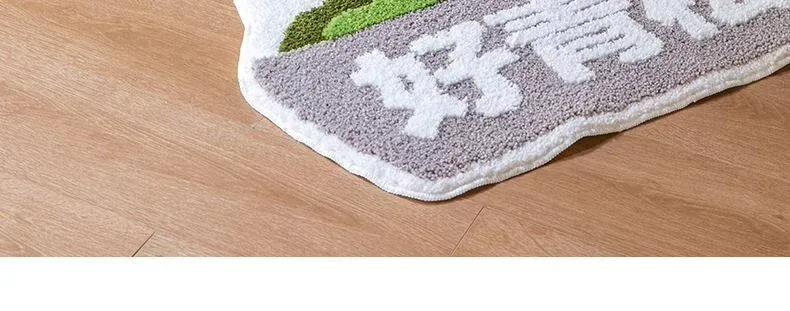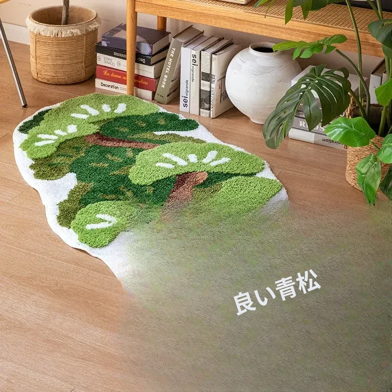 寝室にぴったりなクリエイティブなグリーンの毛糸マット!滑り止め付きで安心、安全。おしゃれなベッドサイドラグや高級な窓辺マットとしても活躍。あなたの部屋を一層素敵に演出します!
