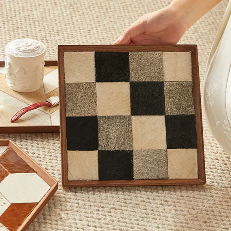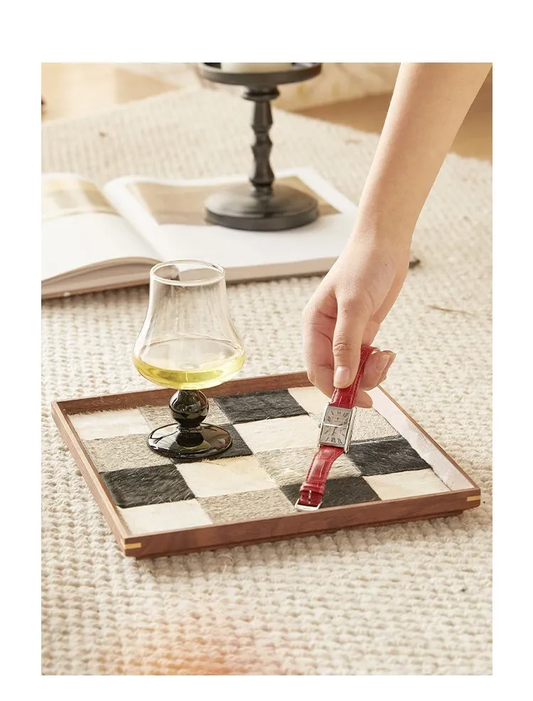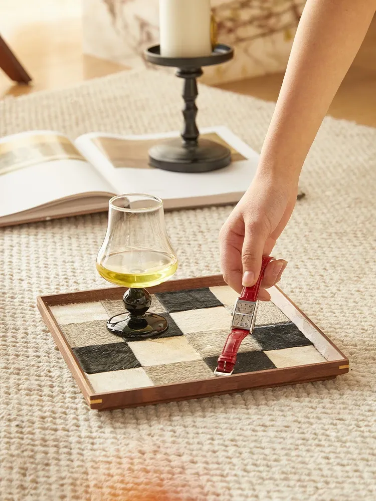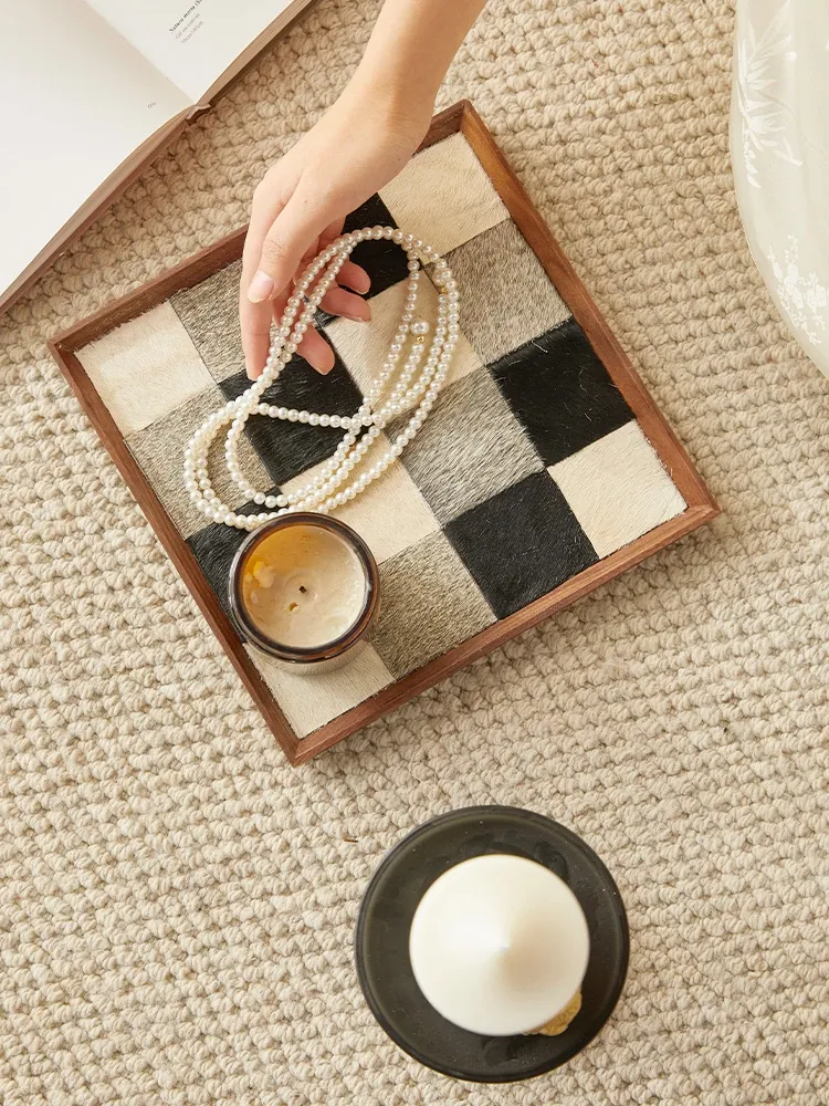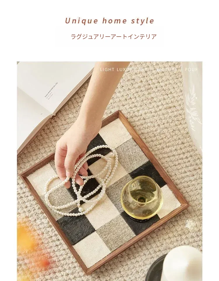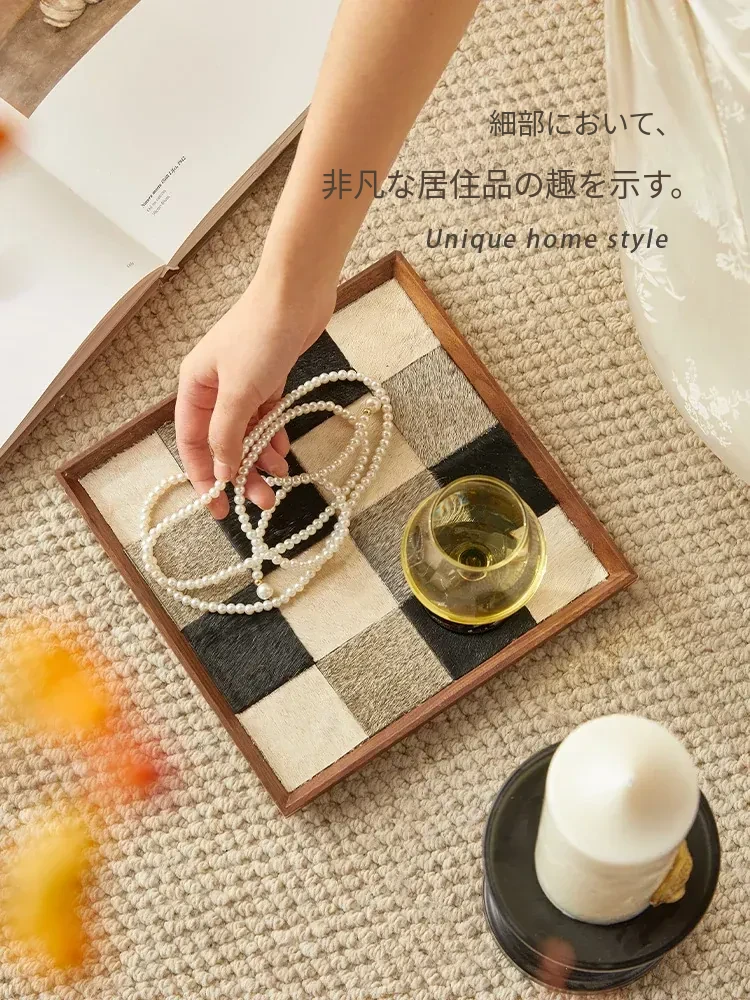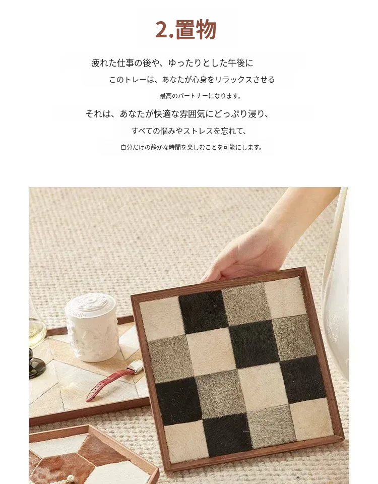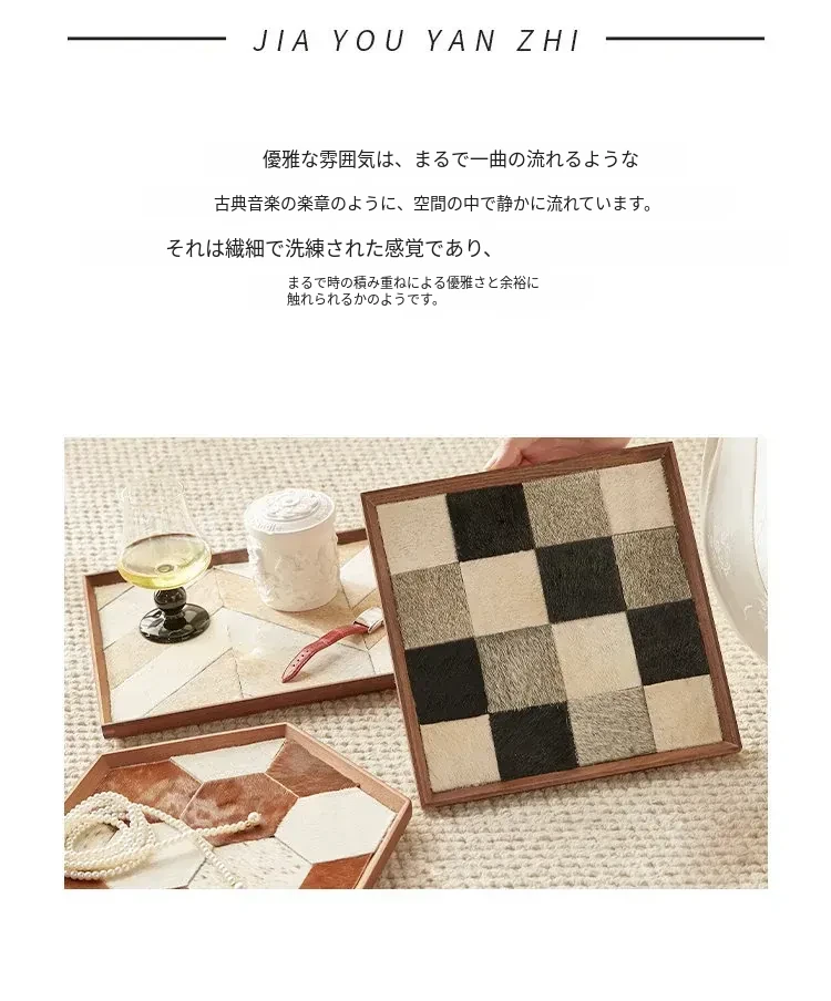 インスタ映えするクリエイティブな不規則形状の木製レザー調トレー!おしゃれなデコレーションとして、和風のデスク上で香りを楽しむ収納アイテムや撮影小道具に最適です。あなたの空間を特別に演出します!