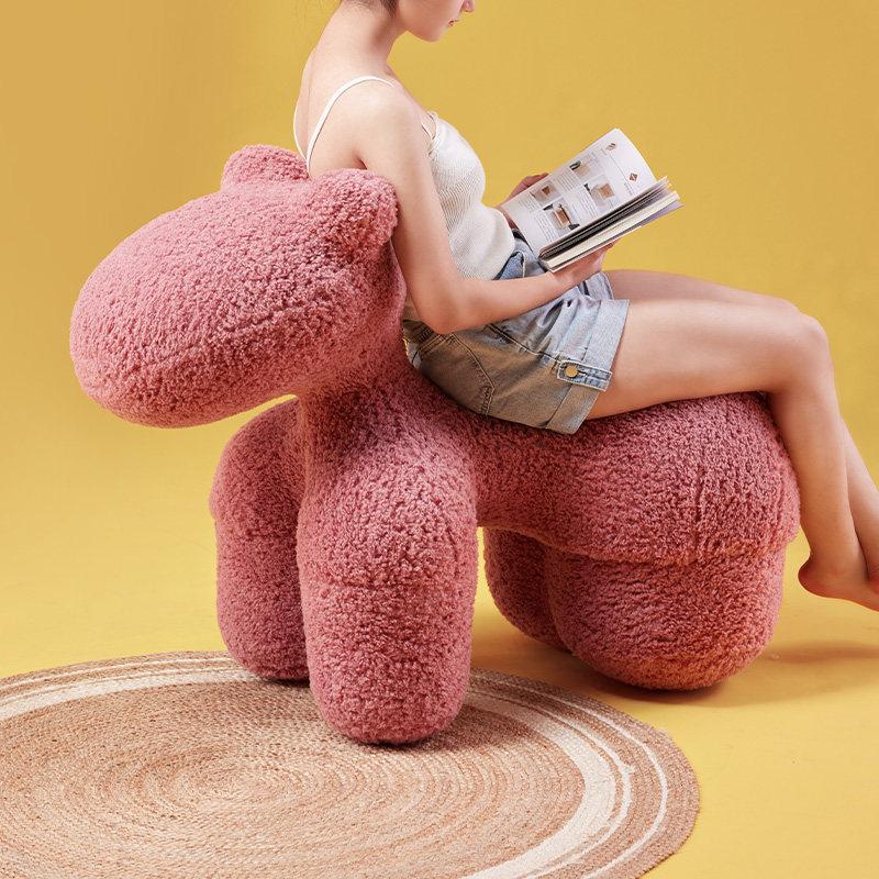 Creative Minimalist American-Style Luxury Kids' Pony Chair – Chic Floor Stool for Living Room, Perfect Shoe Bench and Single Sofa Option for Your Little One