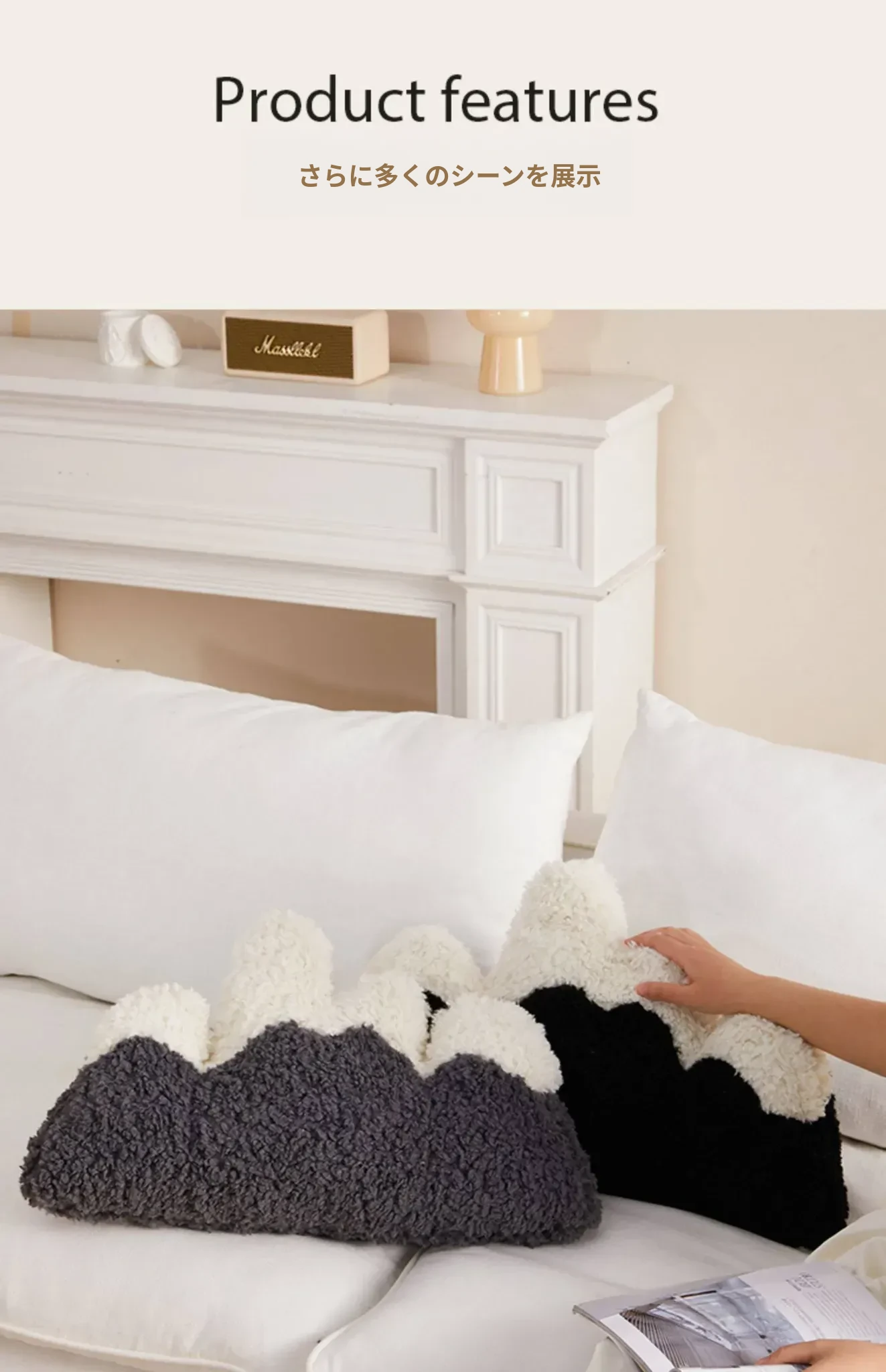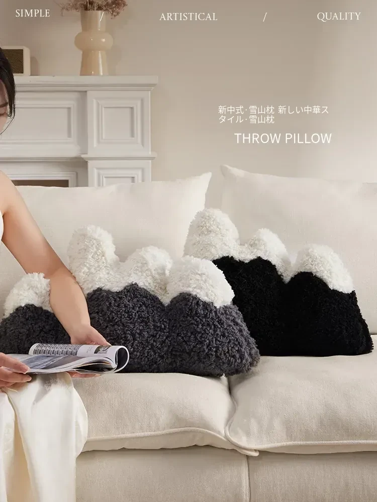 インスタ映え!雪山デザインのユニークな抱き枕。ふわふわの毛布素材で快適な背もたれ。個性的なオフィスや自宅のインテリアに最適な異形クッション!あなたのスタイルを引き立てるアイテムです。