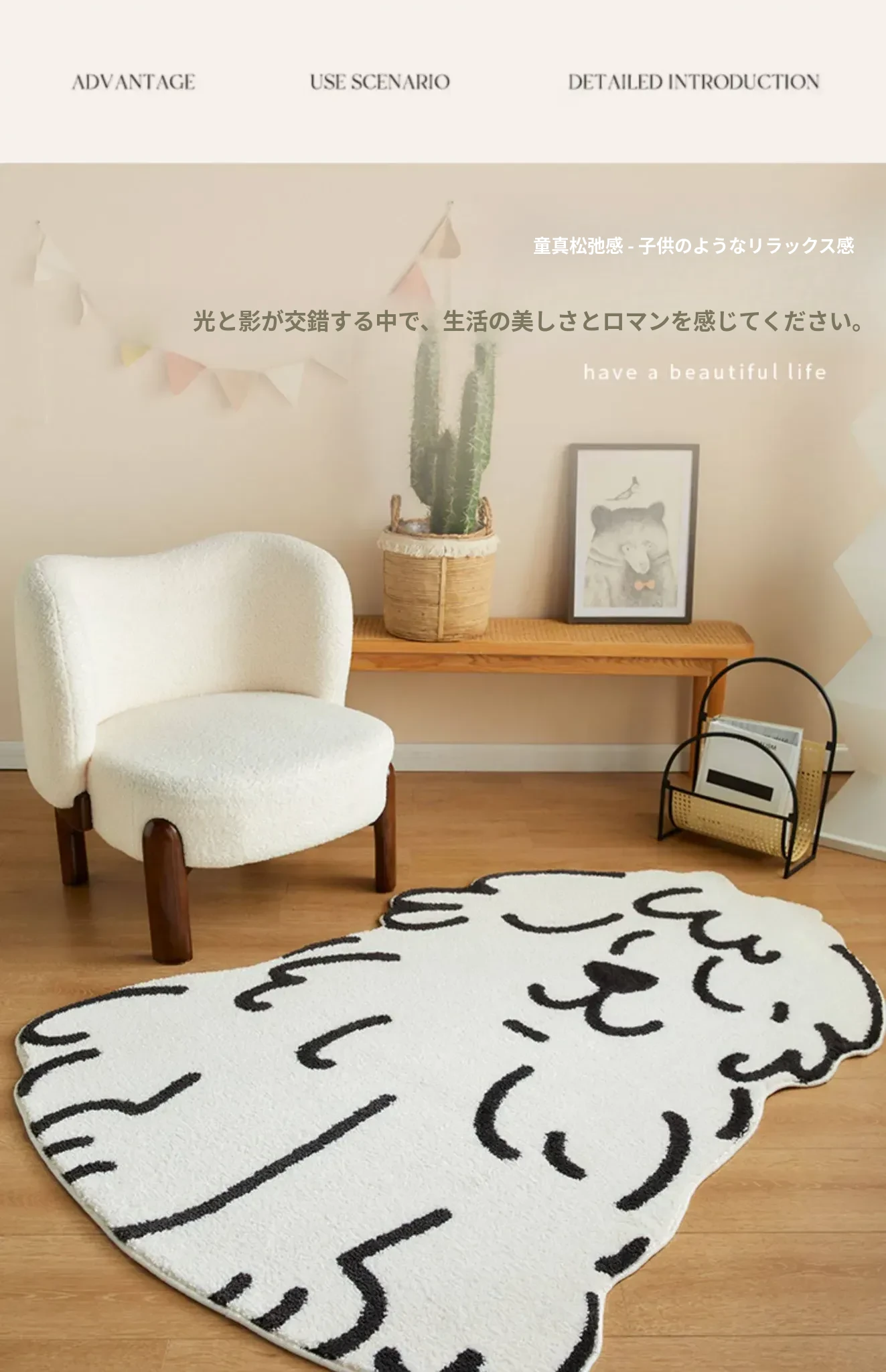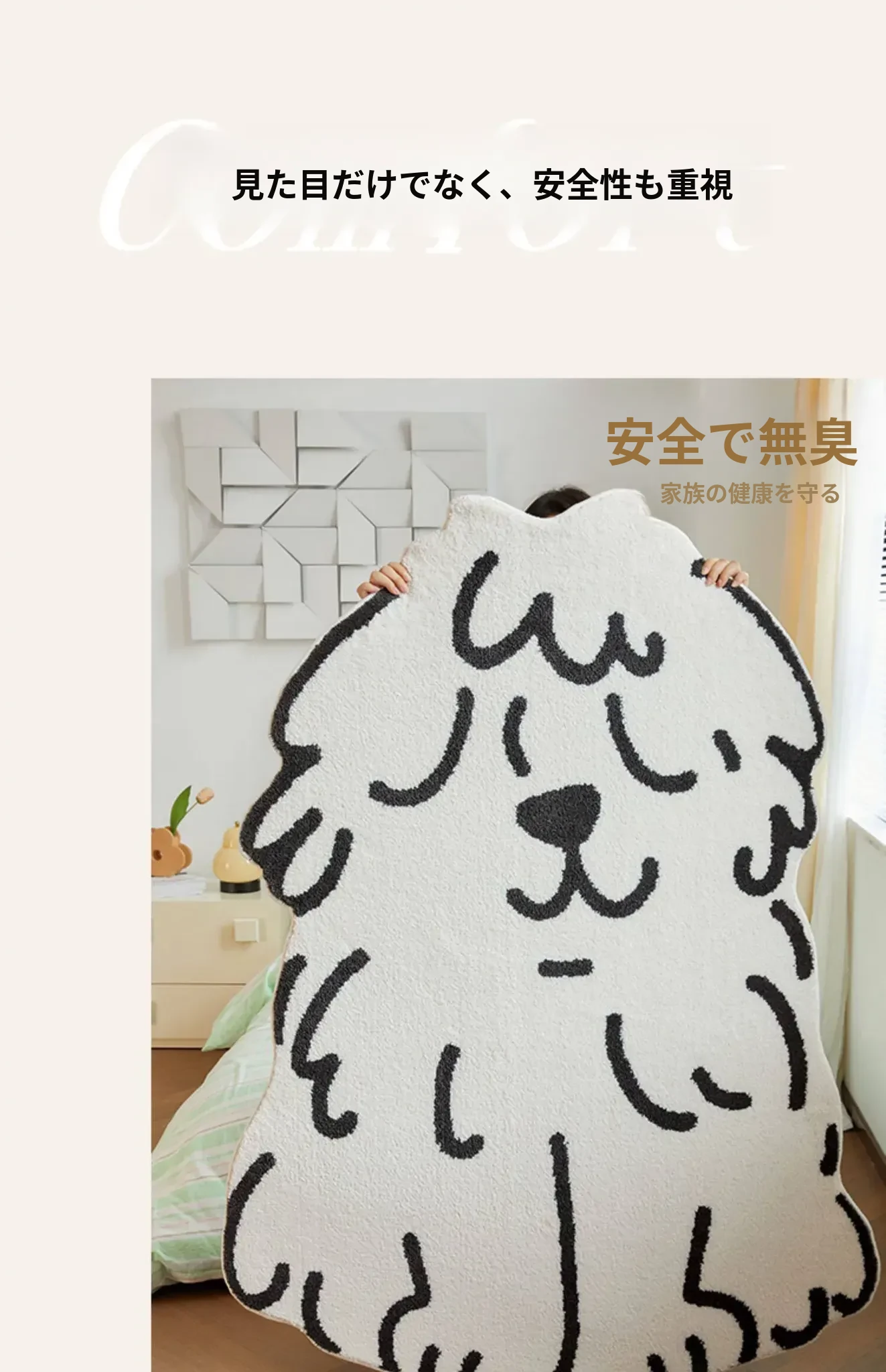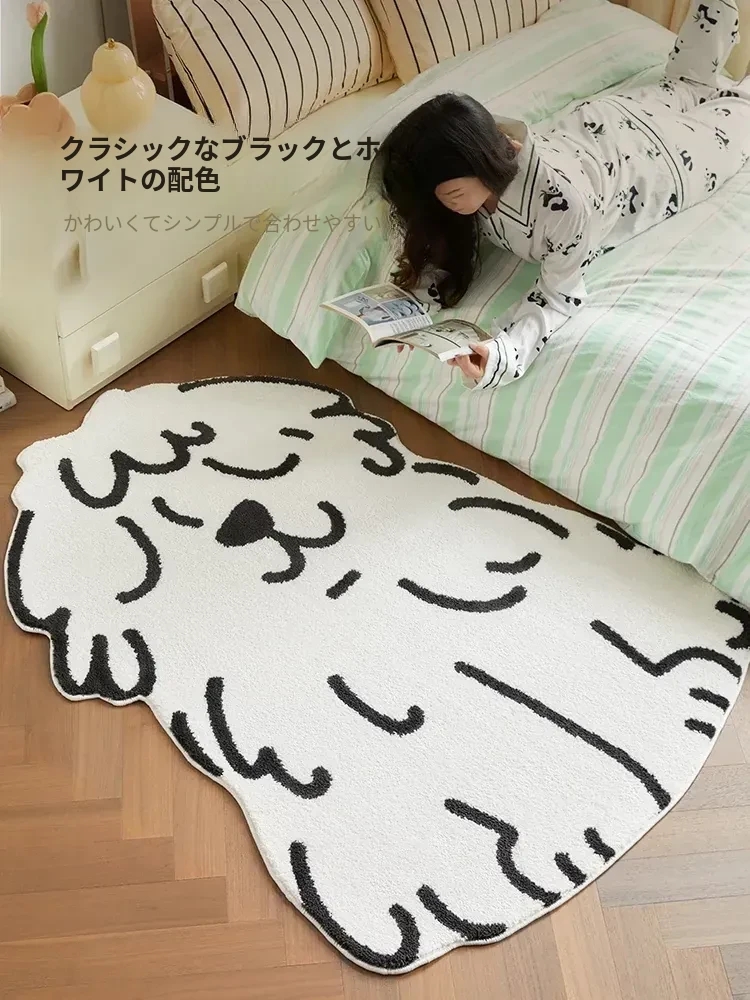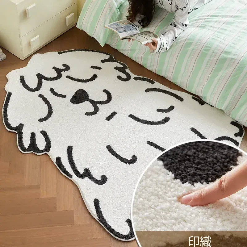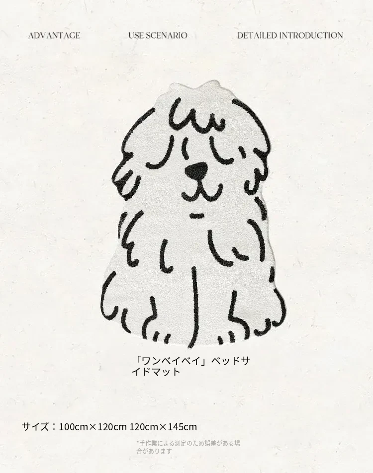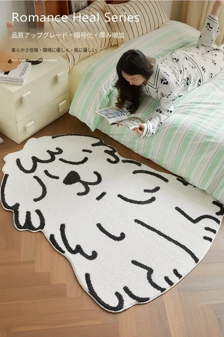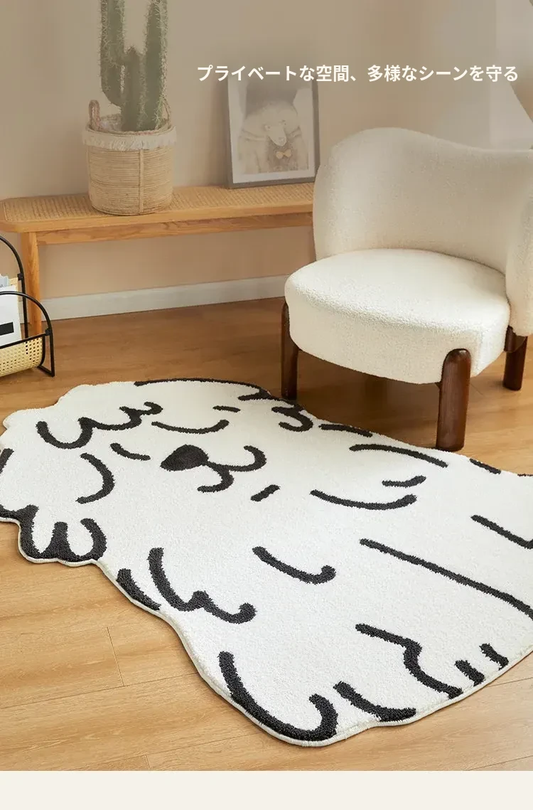 かわいいキャラクター犬のカーペット - リビング、子供部屋、ベッドサイドにぴったり!ふわふわの滑り止めマットで、遊びや読書のスペースを快適に演出。お子様の笑顔を引き出す、心温まるアイテムです!