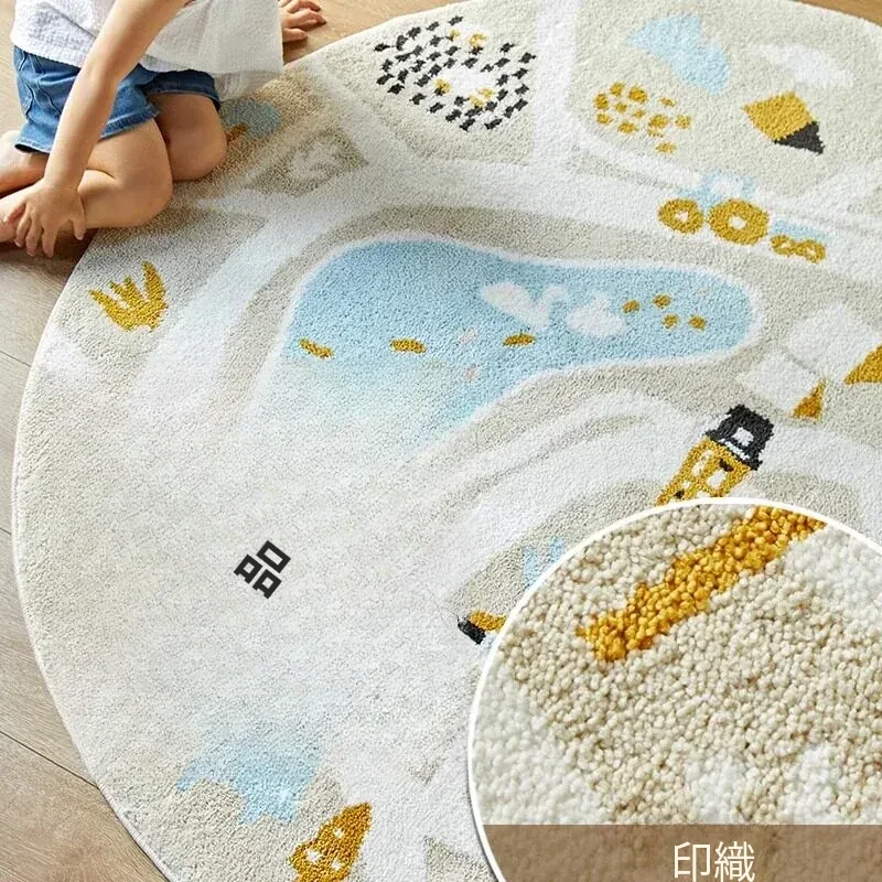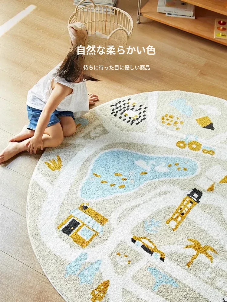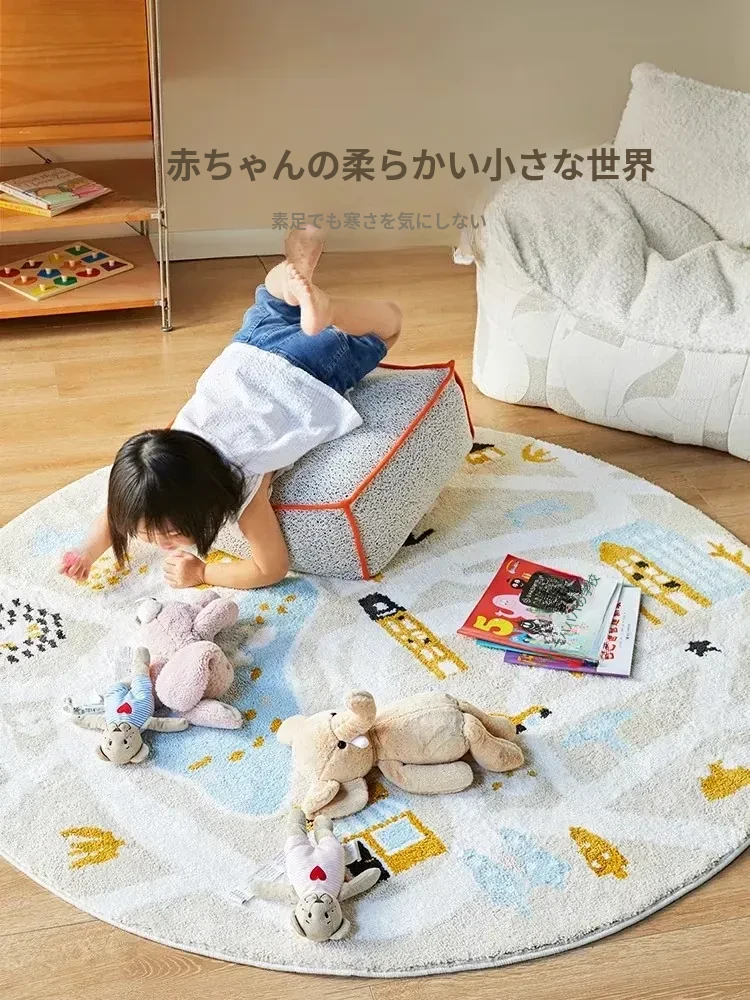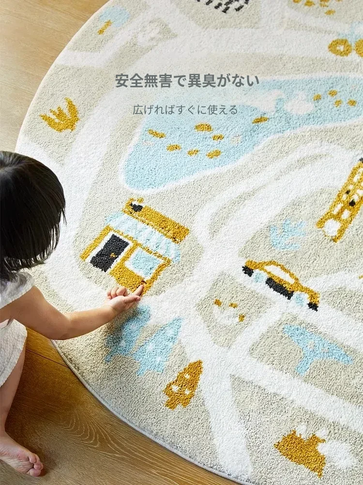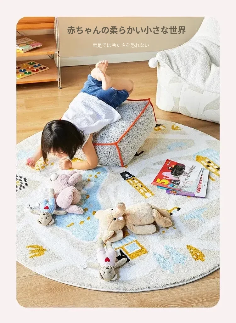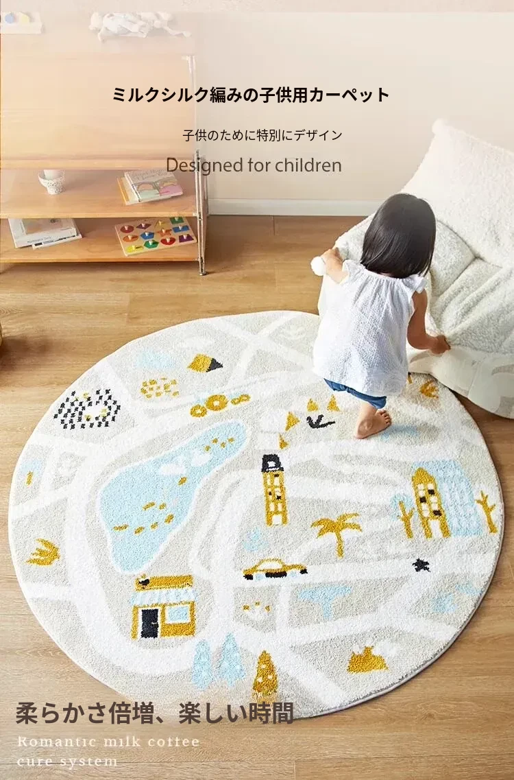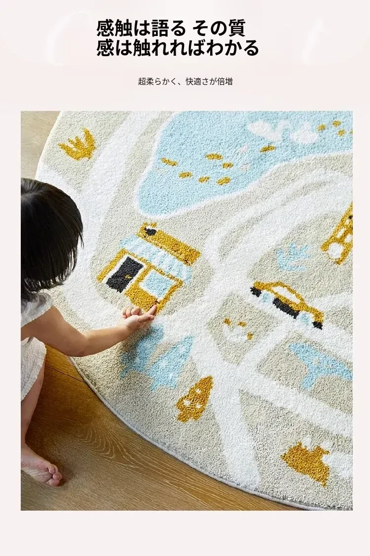 可愛いキャラクターの子供部屋用ラウンドカーペット|読書スペースやベッドサイドにぴったり!シンプルで高品質、滑り止め機能付きで安全性もバッチリ!
