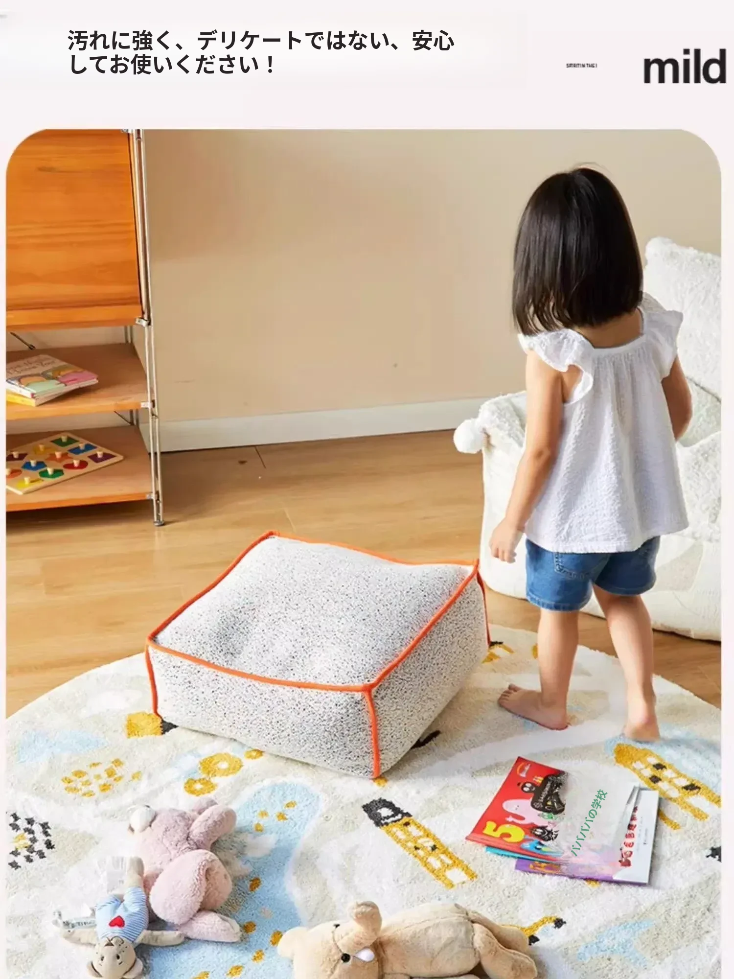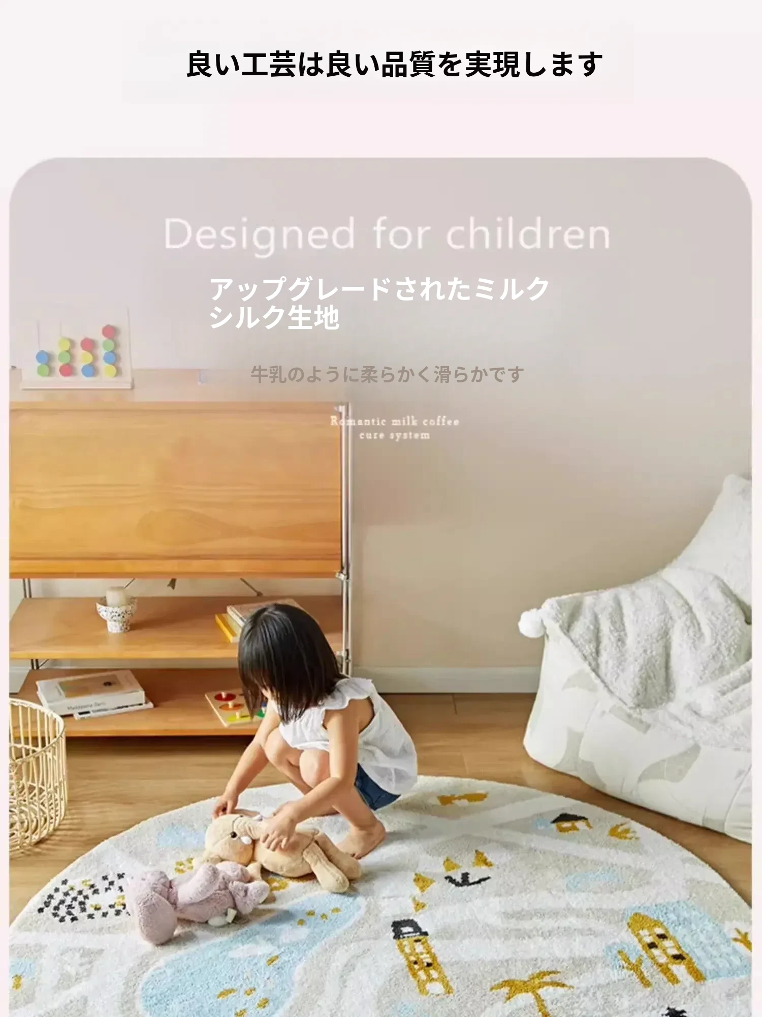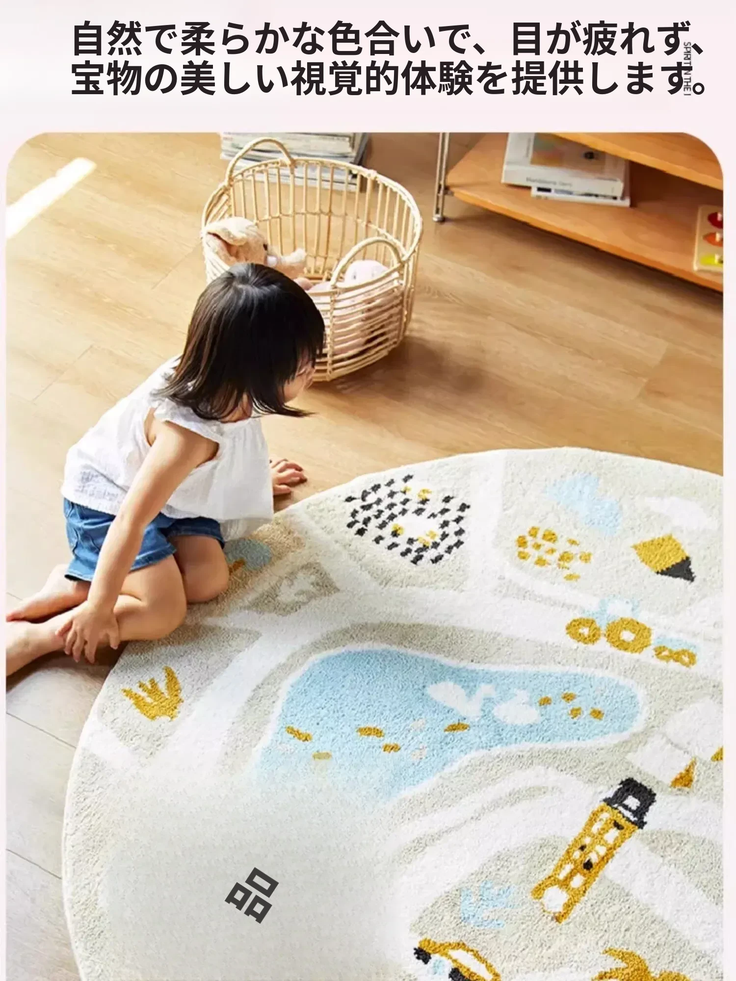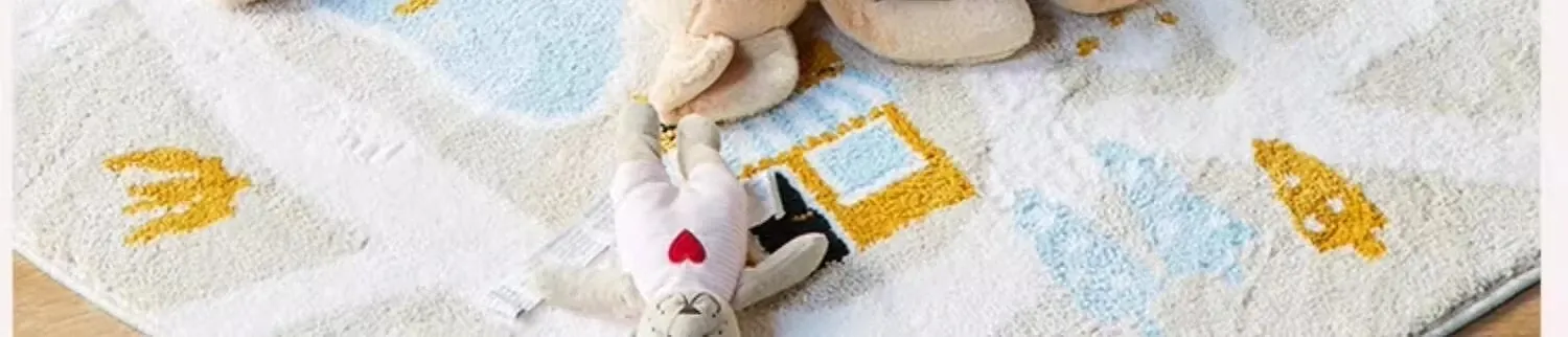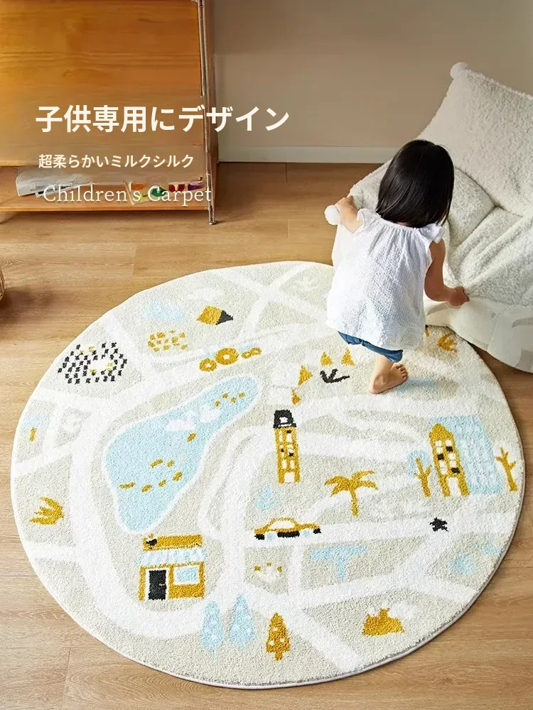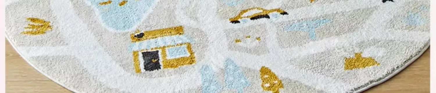 可愛いキャラクターの子供部屋用ラウンドカーペット|読書スペースやベッドサイドにぴったり!シンプルで高品質、滑り止め機能付きで安全性もバッチリ!