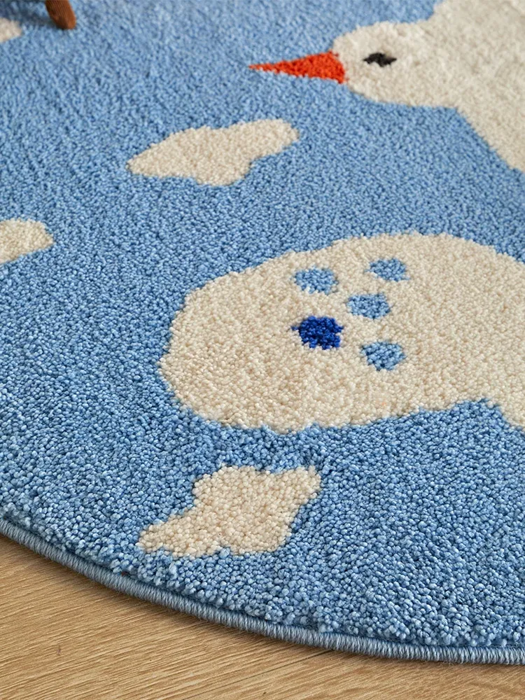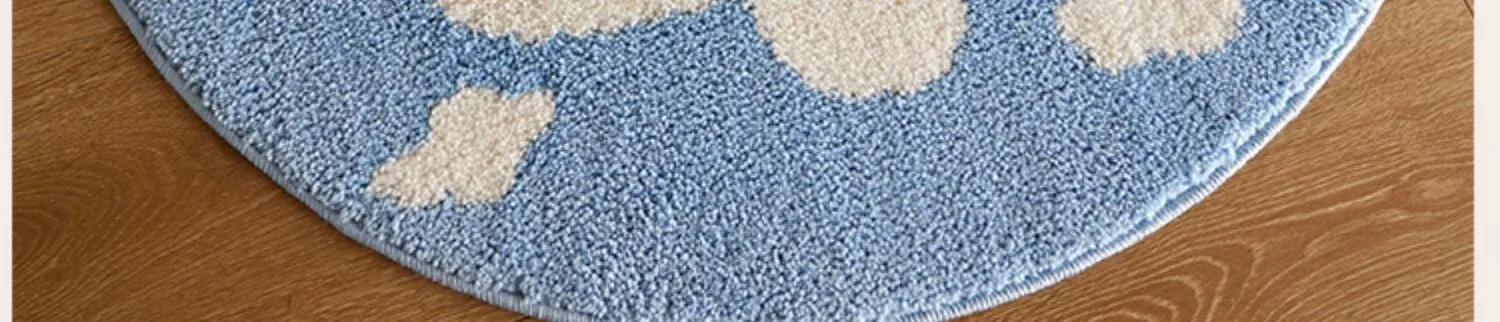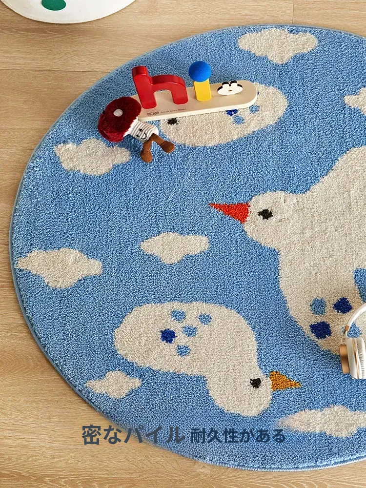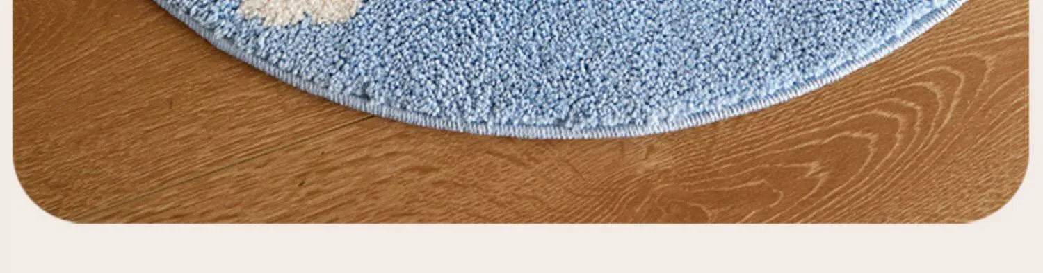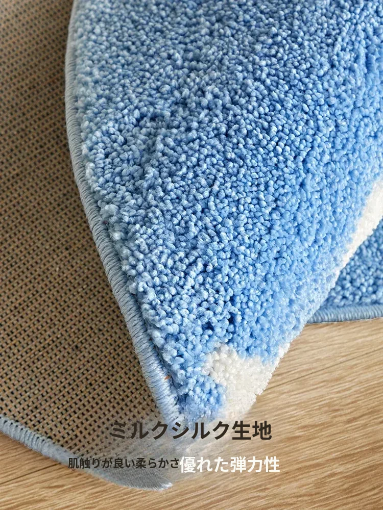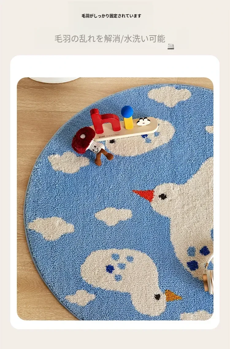 かわいいカートゥーンデザインのラウンドカーペット、ミルクシルク製で厚みがあり、子供部屋や寝室の読書エリアに最適!家庭用ベッドサイドマットとしても大活躍!お子様の快適な空間を演出します。
