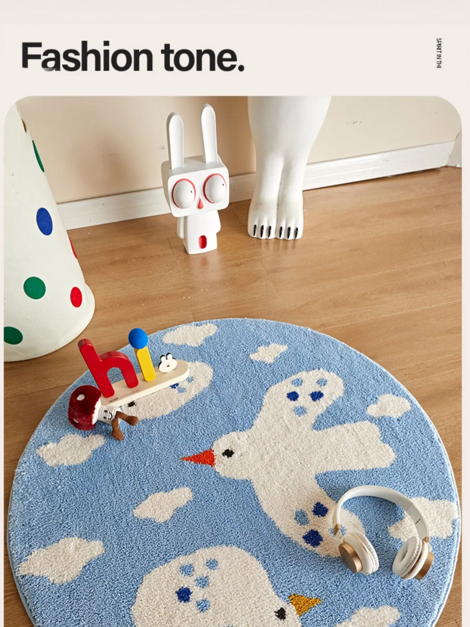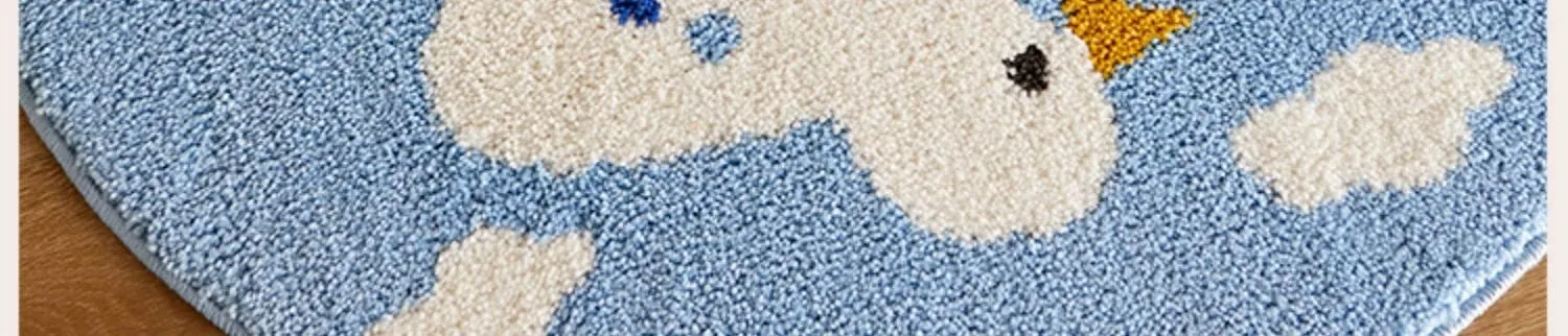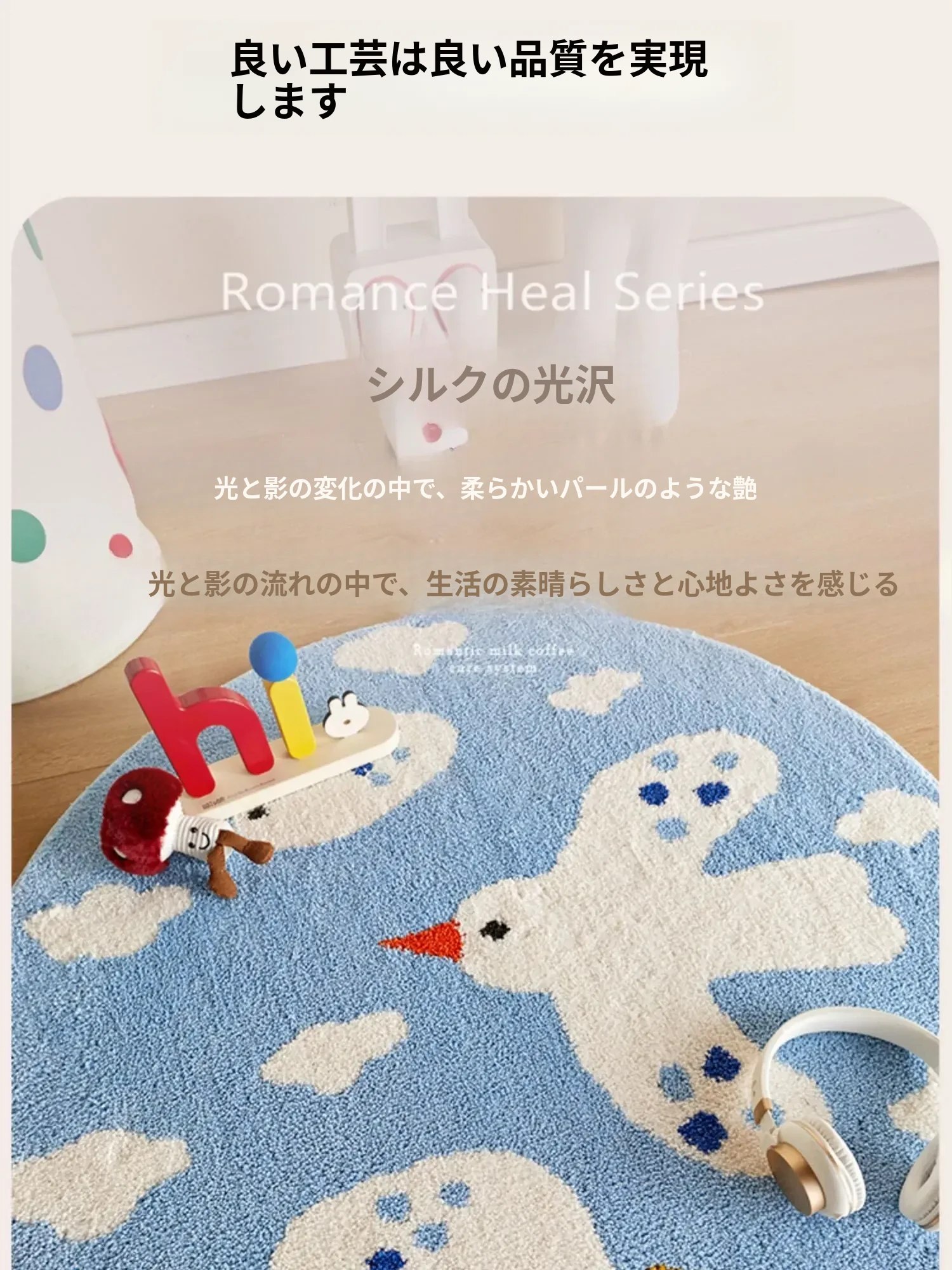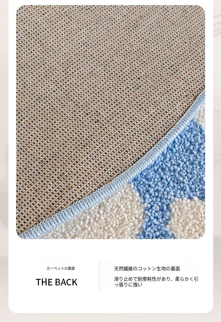 かわいいカートゥーンデザインのラウンドカーペット、ミルクシルク製で厚みがあり、子供部屋や寝室の読書エリアに最適!家庭用ベッドサイドマットとしても大活躍!お子様の快適な空間を演出します。