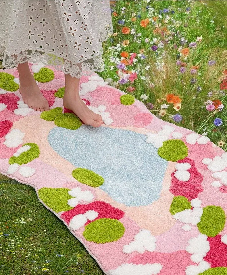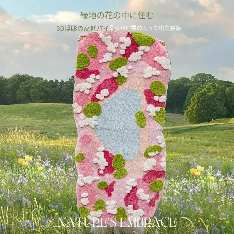 ドーパミンモスラグ - 高級感溢れるユニークなデザイン、リビングや寝室にぴったり!滑り止め付きで安全、ソファやベッドサイドに最適なラグマット。感性を刺激する快適な空間を演出!