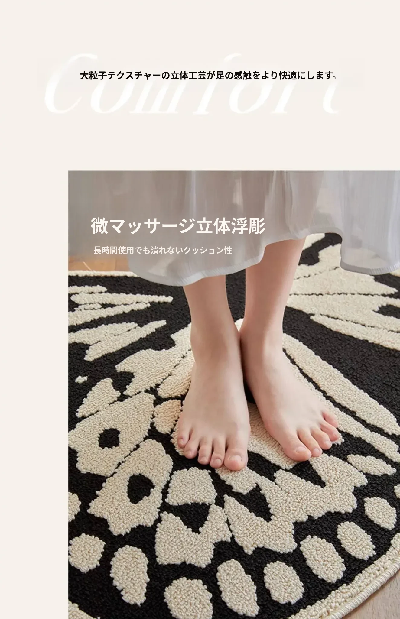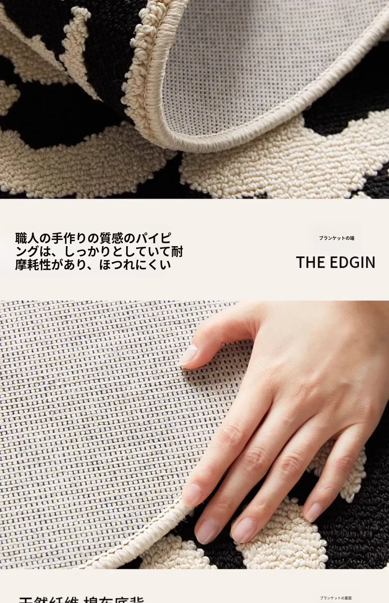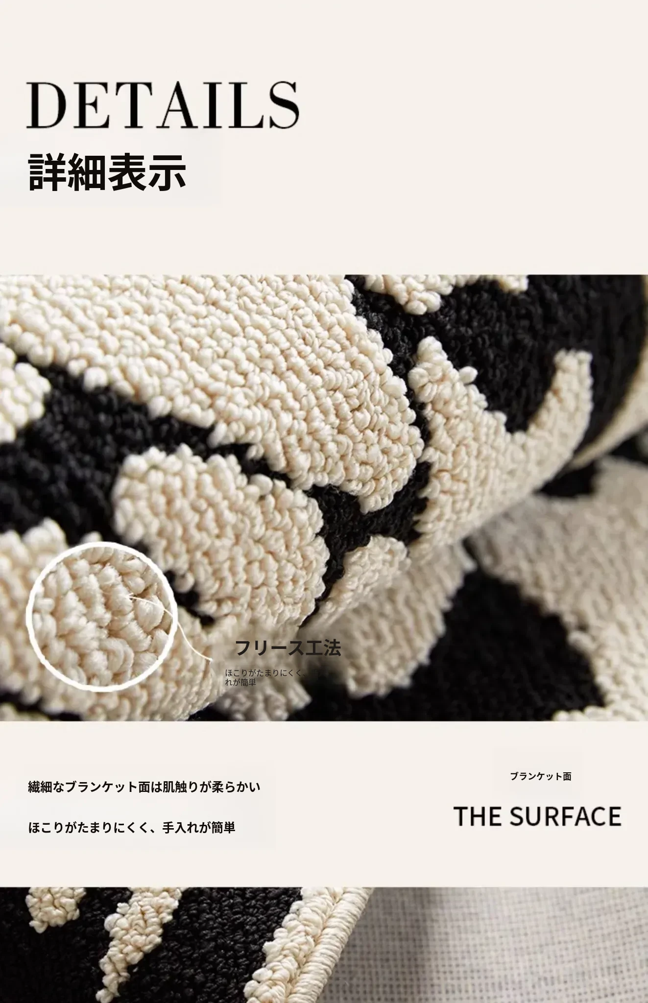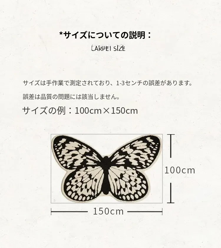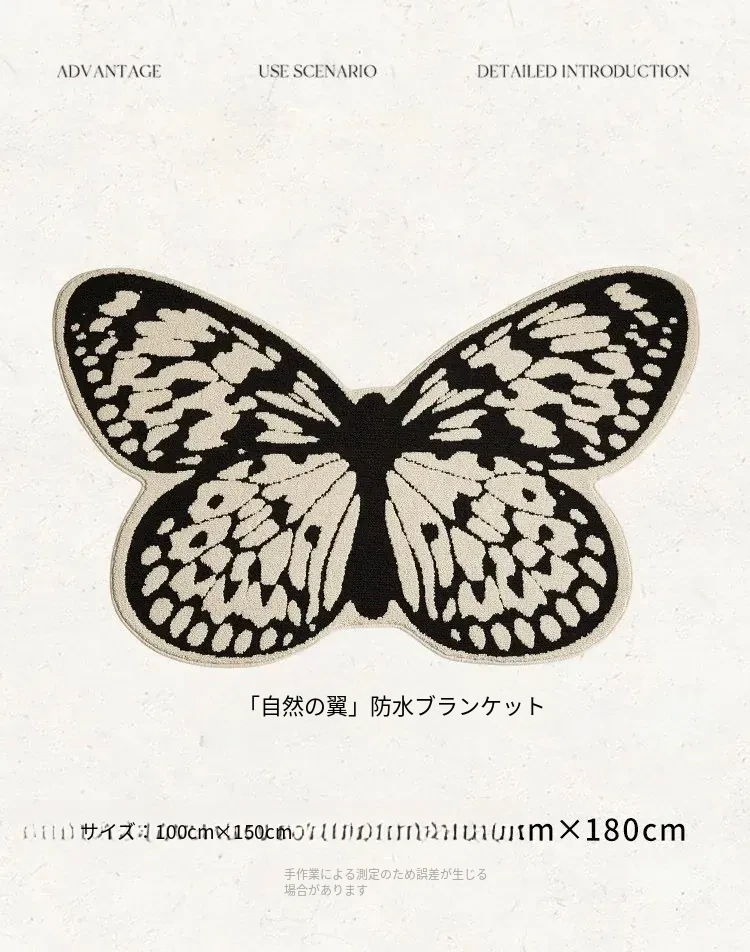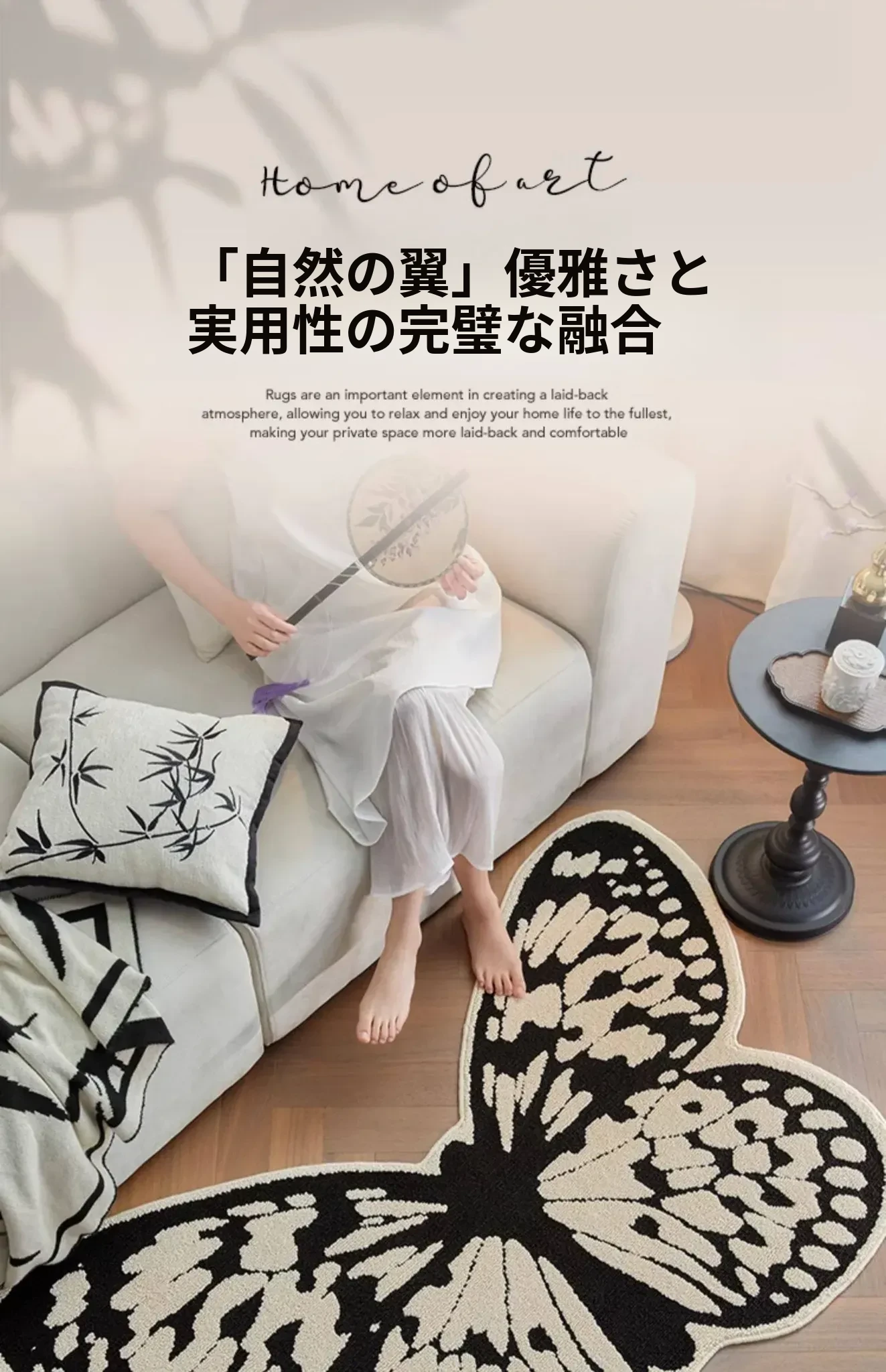 ブラック&ホワイト蝶型デザインベッドサイドマット - おしゃれなクリーム風リビング・寝室用高級感あふれる防水・防汚カーペット、チェアマットに最適!
