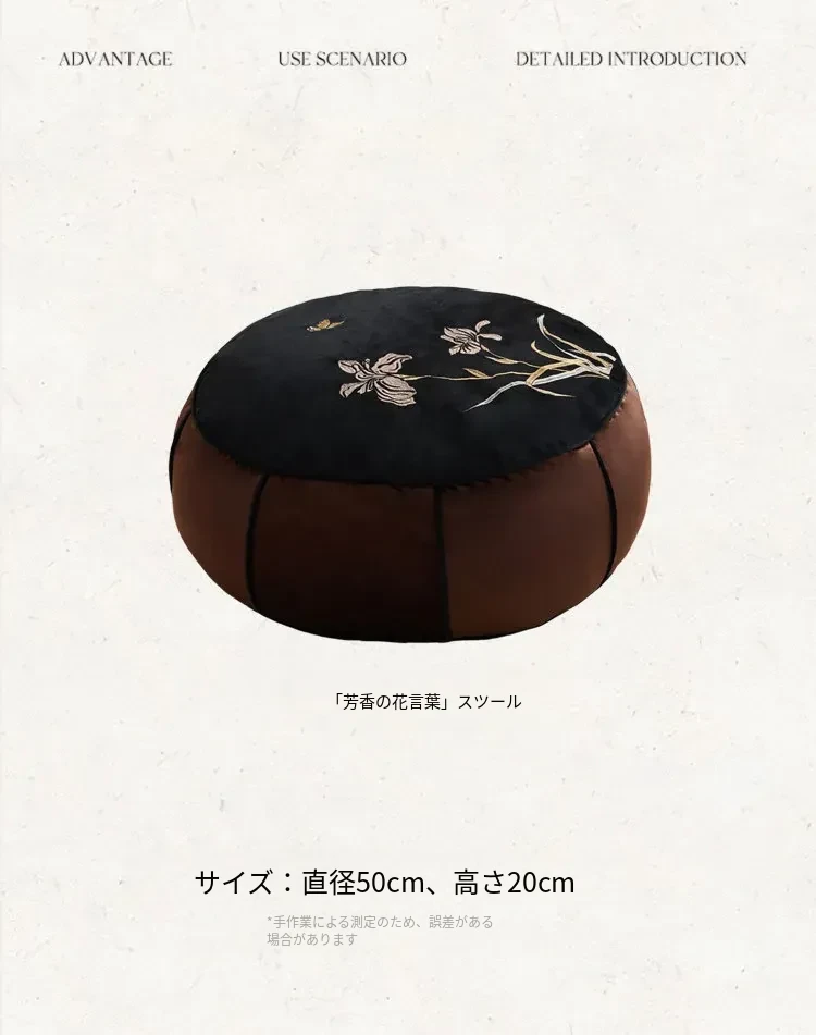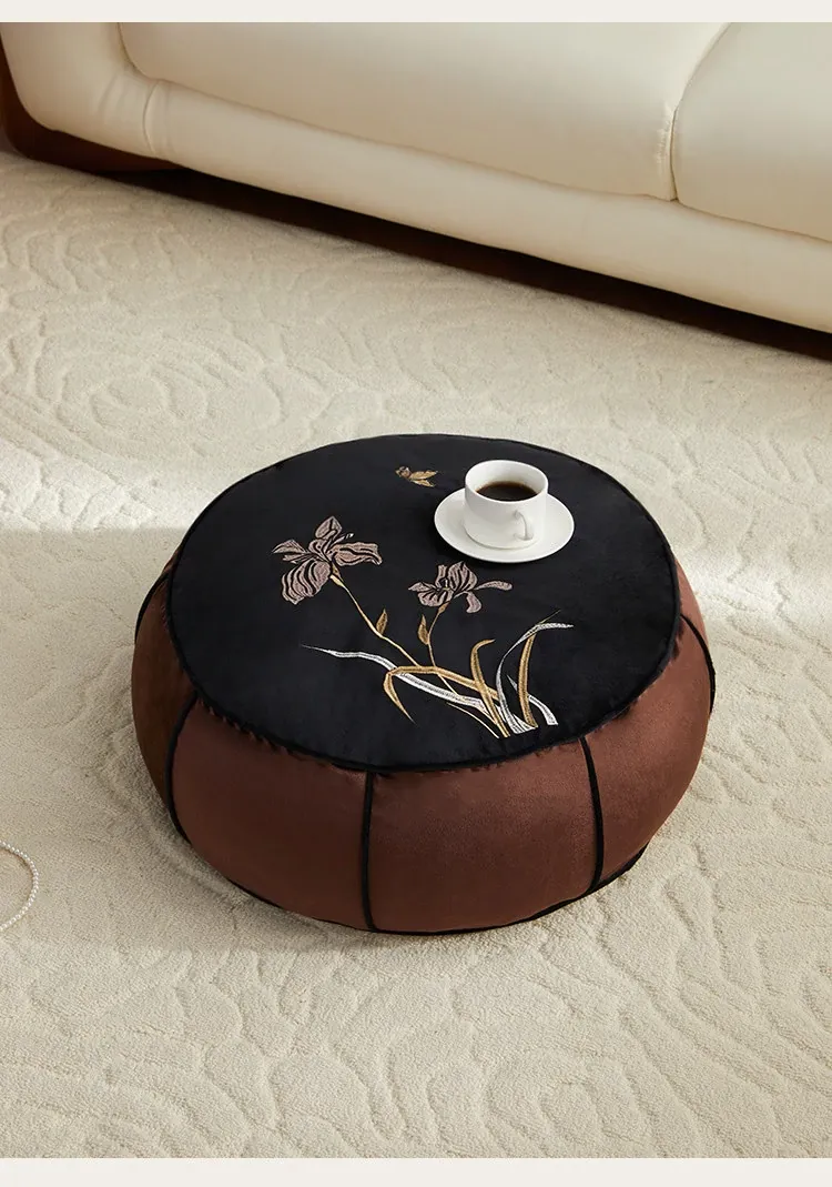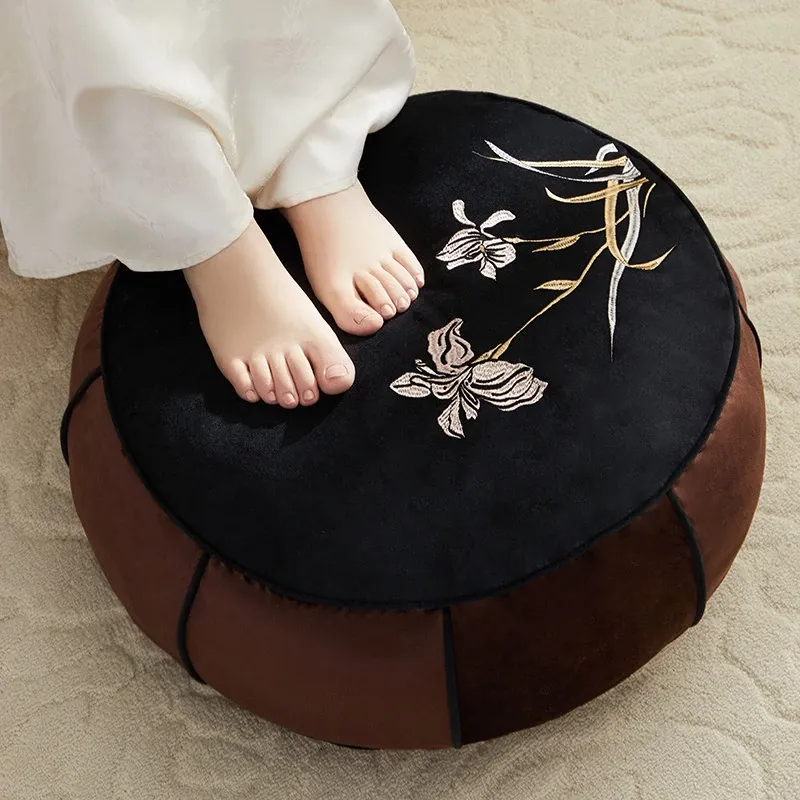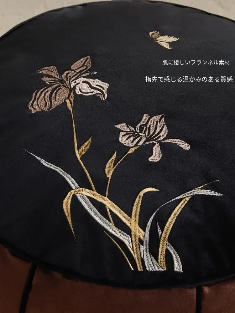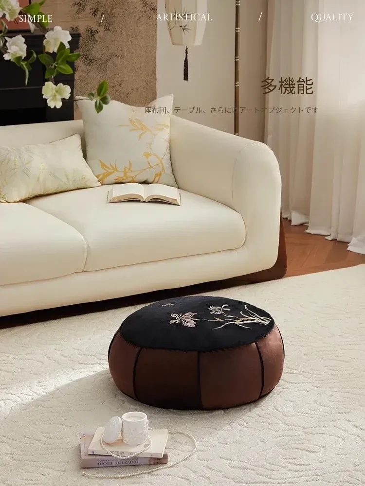 高級感溢れる中式刺繍のラウンドクッション - リビングや寝室、ティールームにぴったり!軽やかな贅沢を感じる畳や窓辺のアクセントとして最適な座布団です。