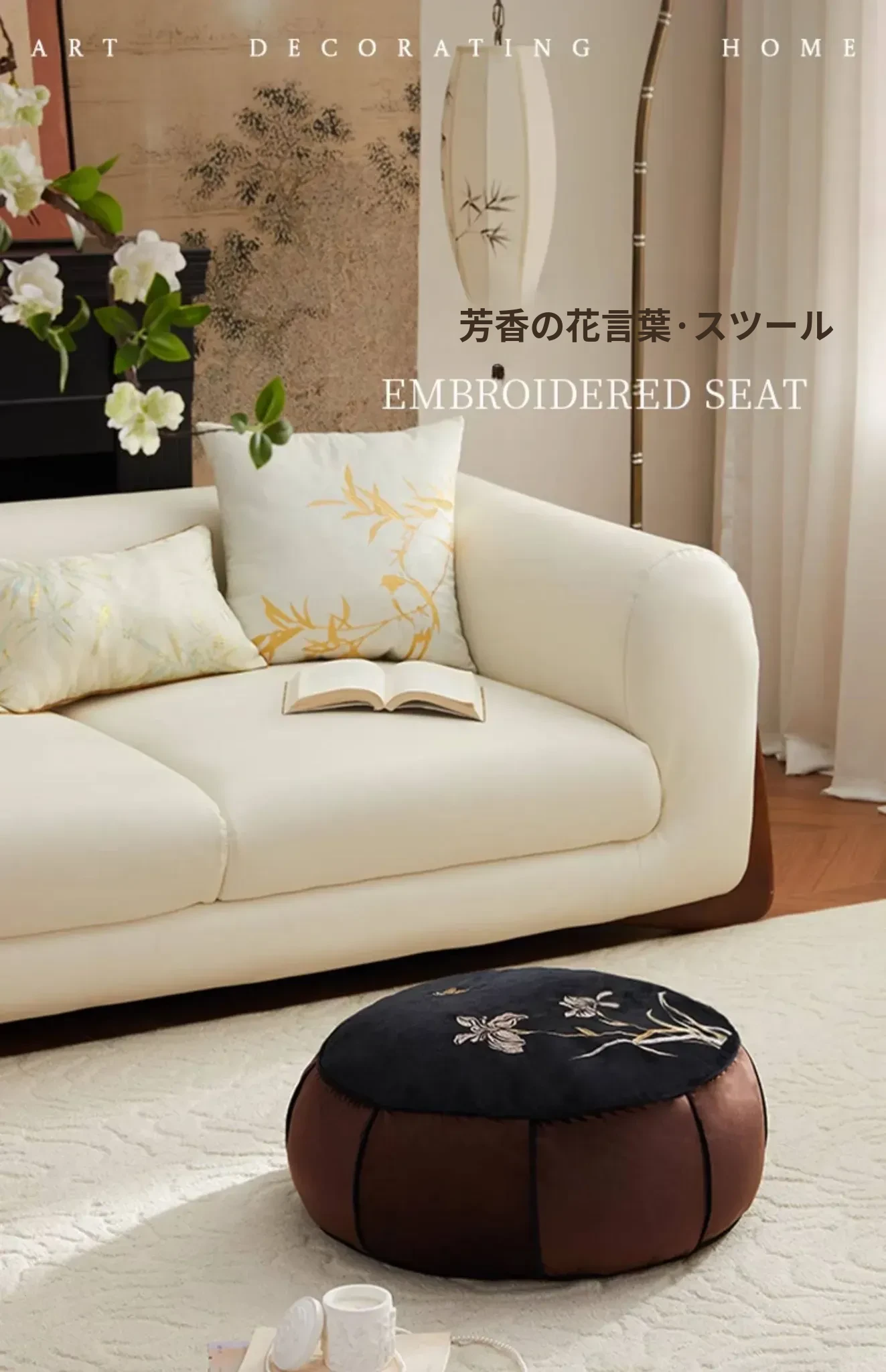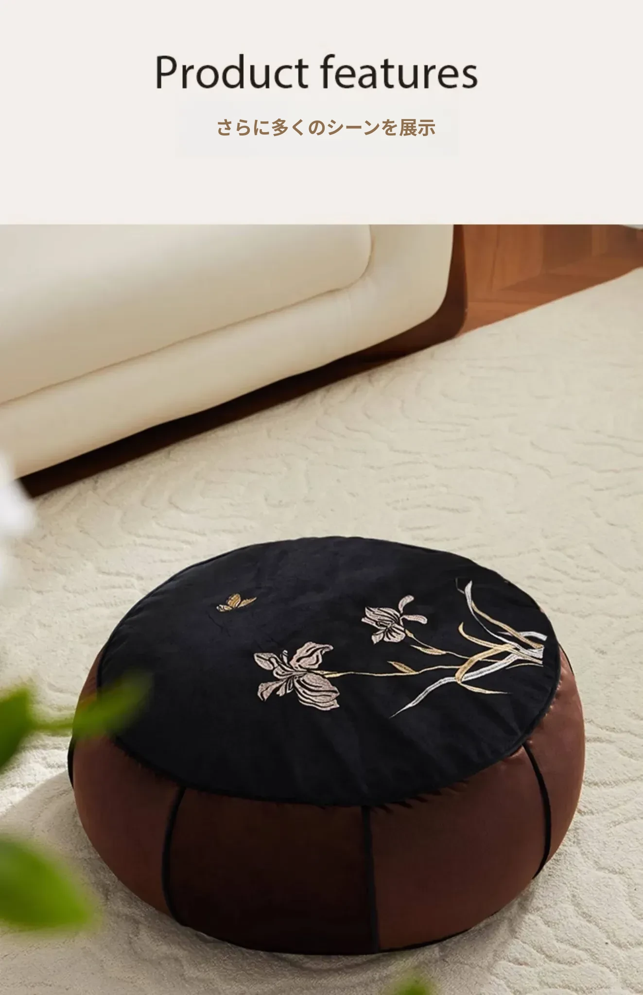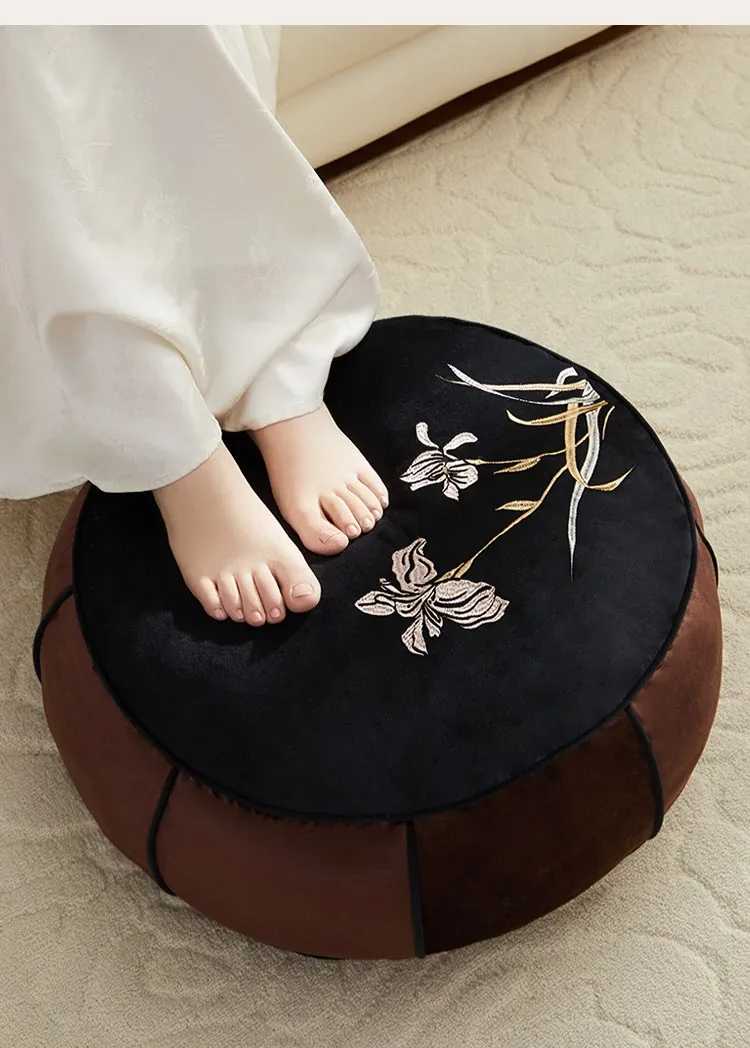 高級感溢れる中式刺繍のラウンドクッション - リビングや寝室、ティールームにぴったり!軽やかな贅沢を感じる畳や窓辺のアクセントとして最適な座布団です。