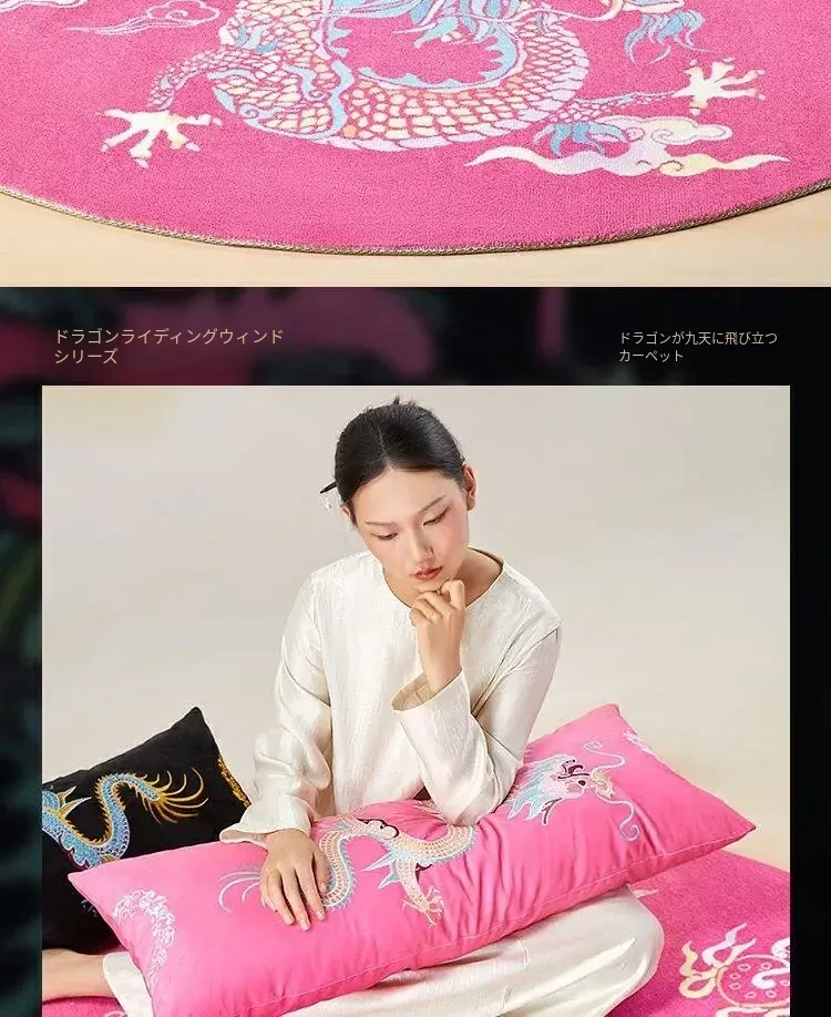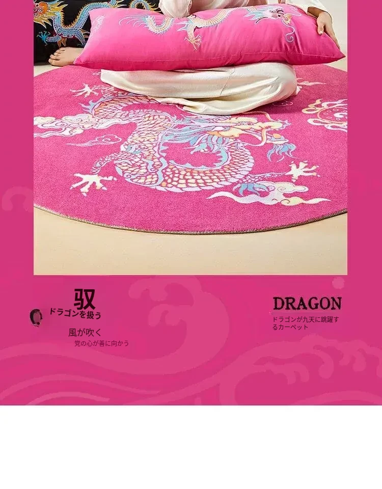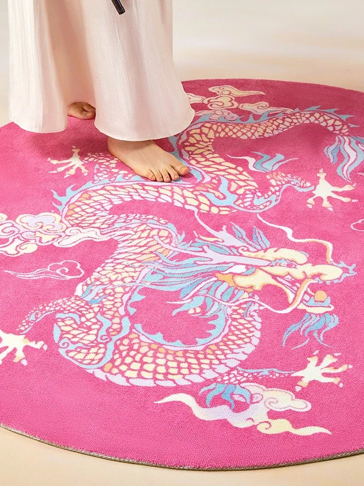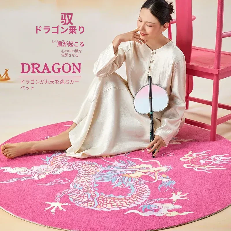 中国風のピンク色ラウンドカーペット|高級感あふれる中式ミラー前マット|リビング・寝室・ベッドサイドに最適な厚手ソファマットで、おしゃれな空間を演出!