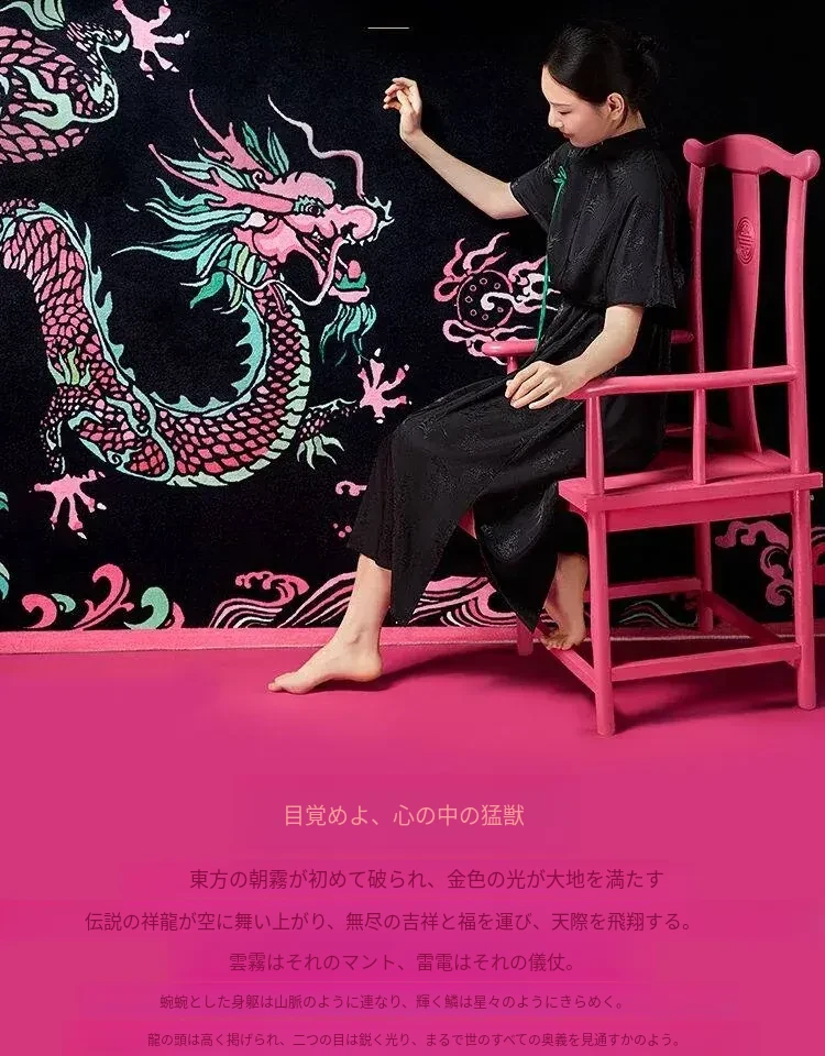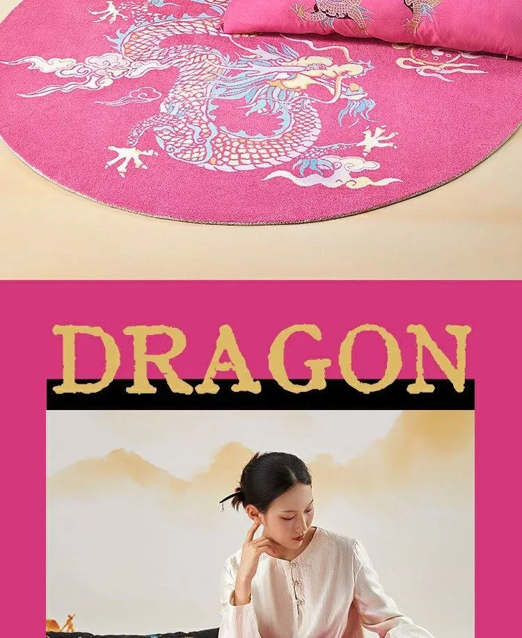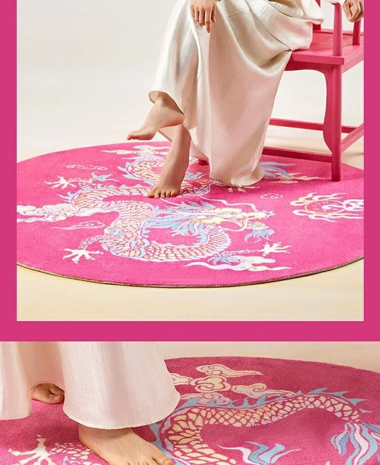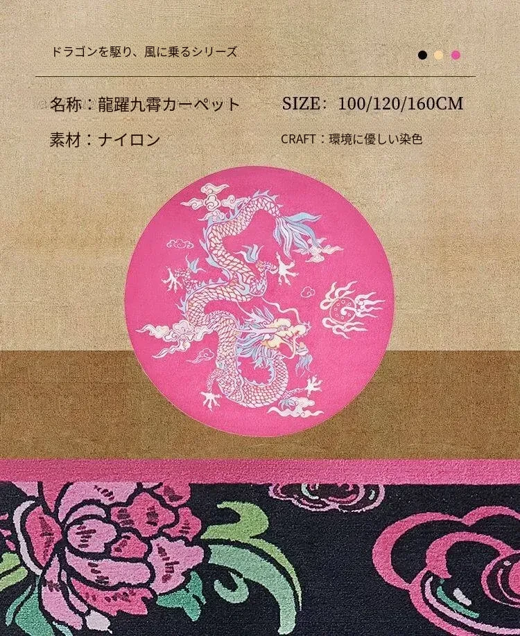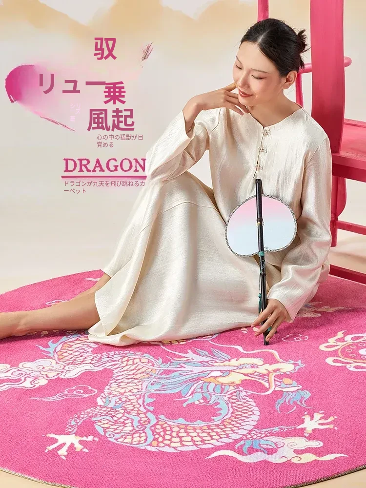 竜躍九霄ピンクナイロンカーペット-円形