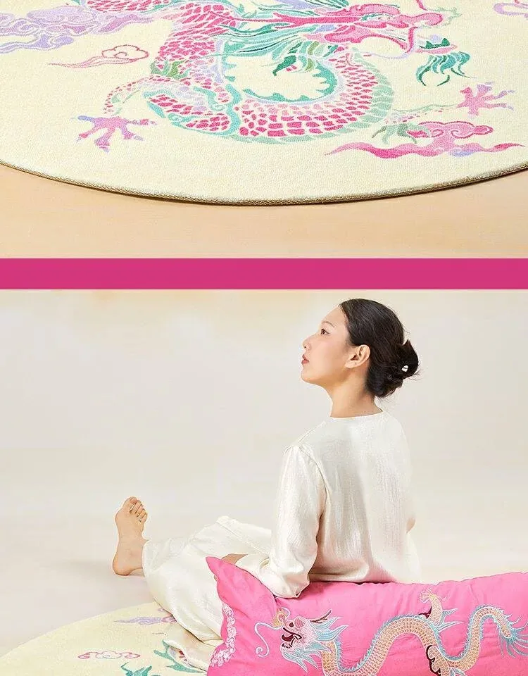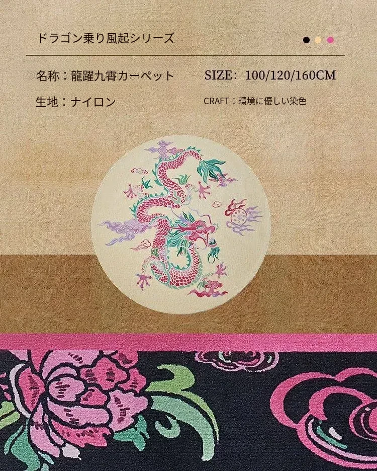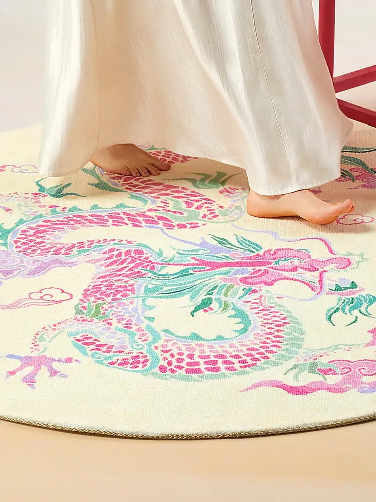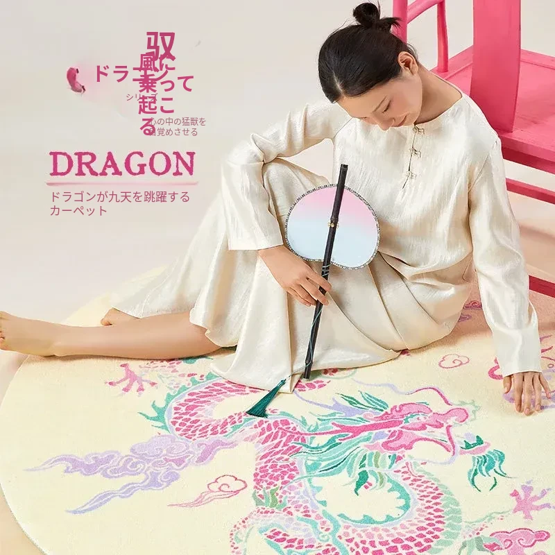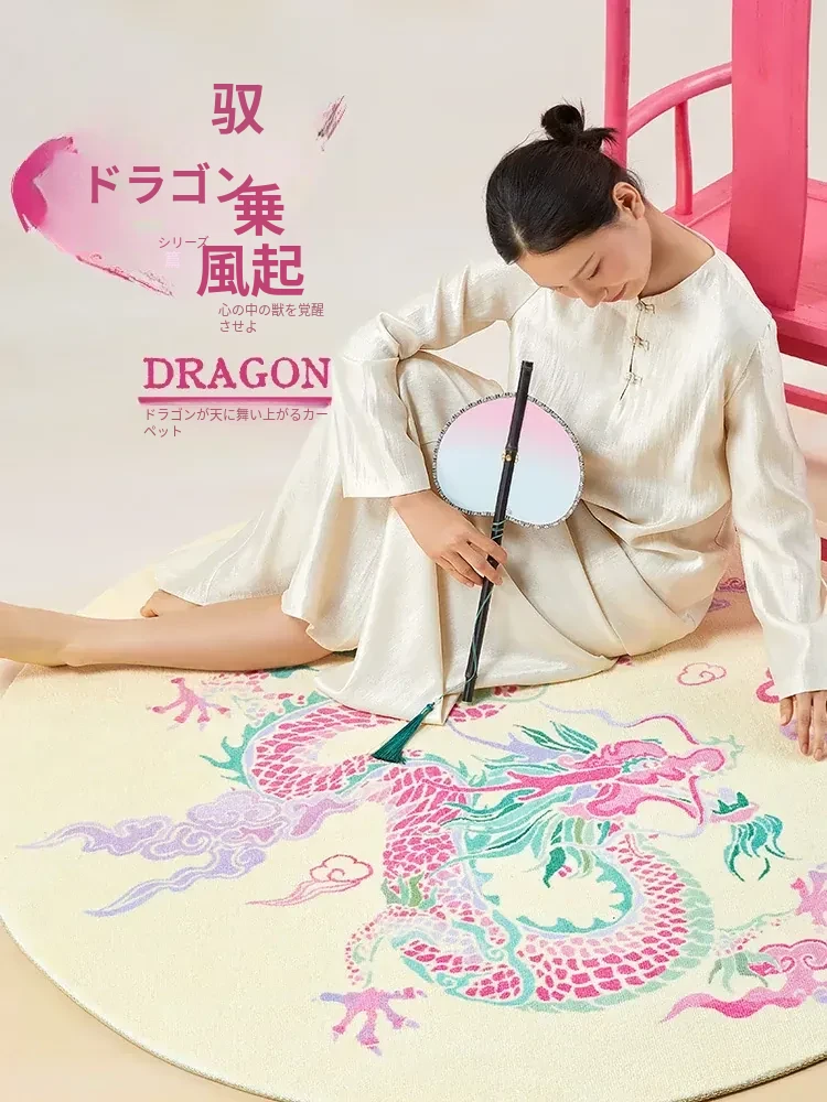 中華風情の高級感あふれる円形ラグ - 家庭用中式ミラー前ラグ、リビングルーム・ソファ・寝室床辺に最適な厚手マット。お洒落な空間を演出し、心地よいひとときを提供します!