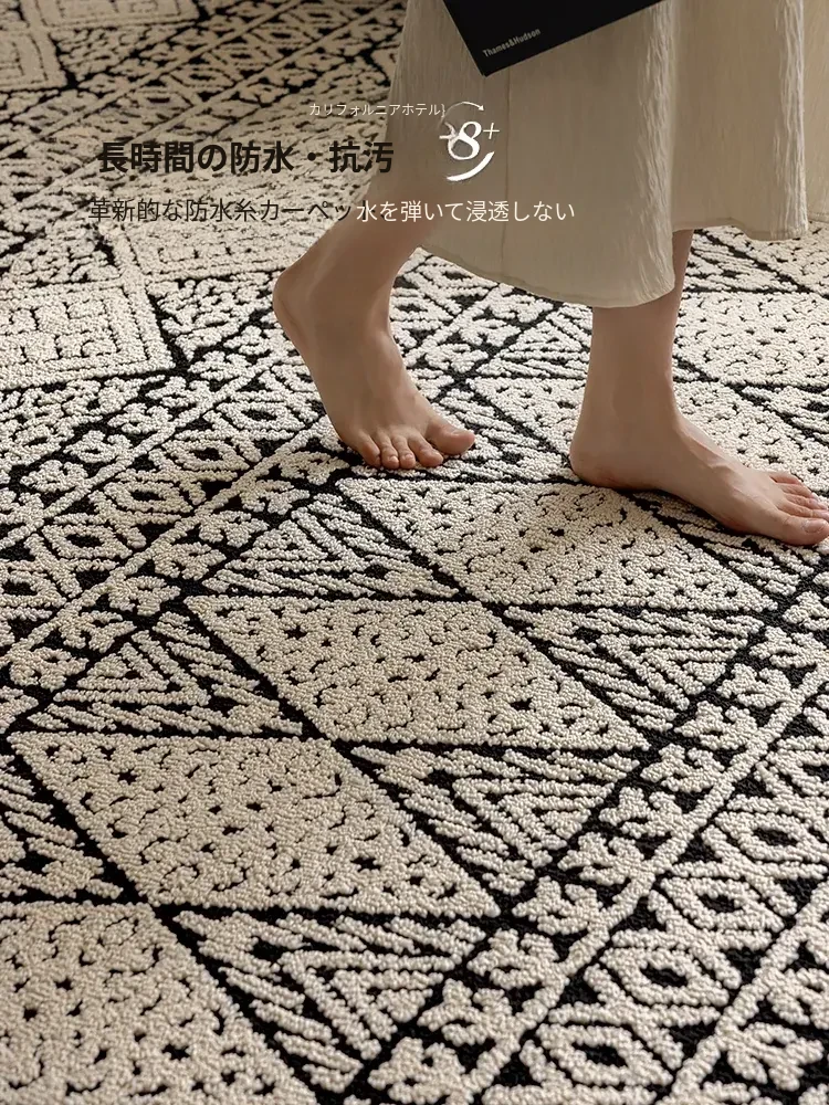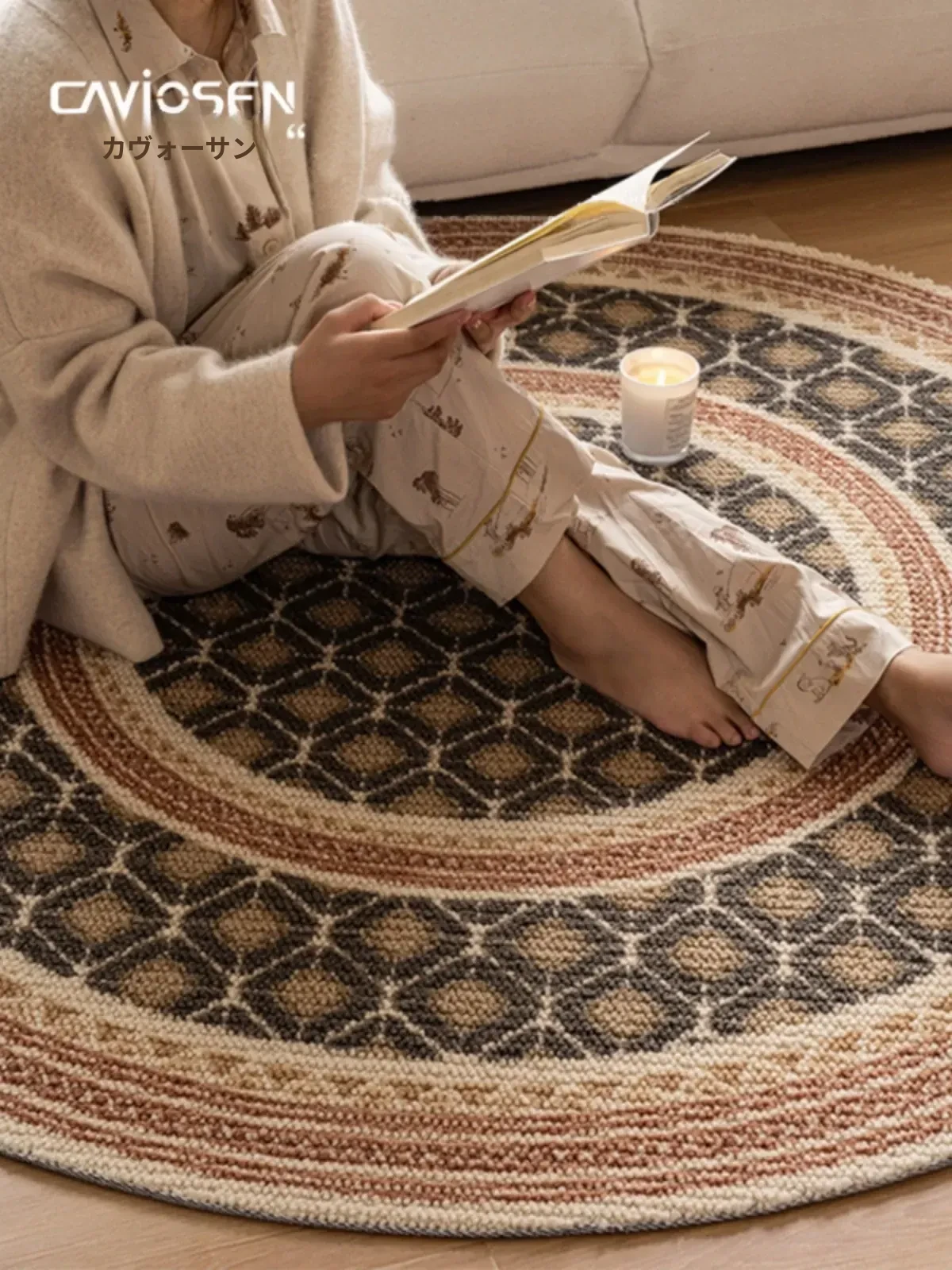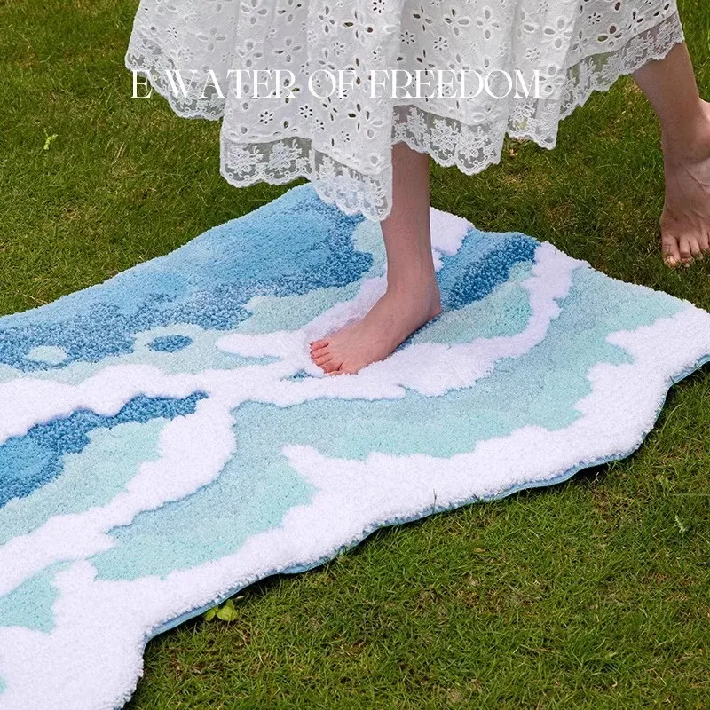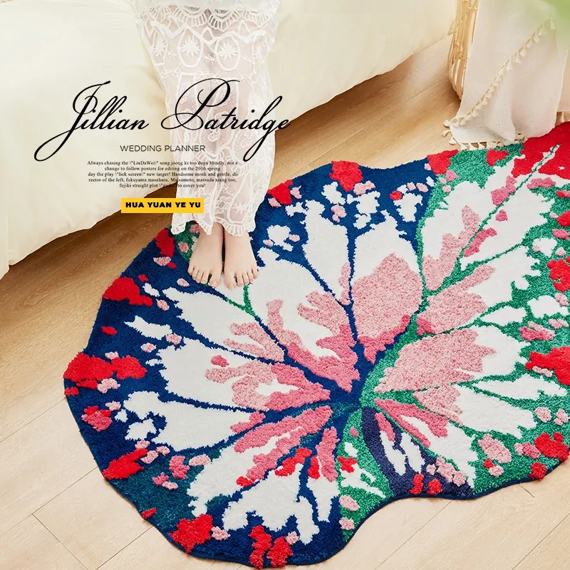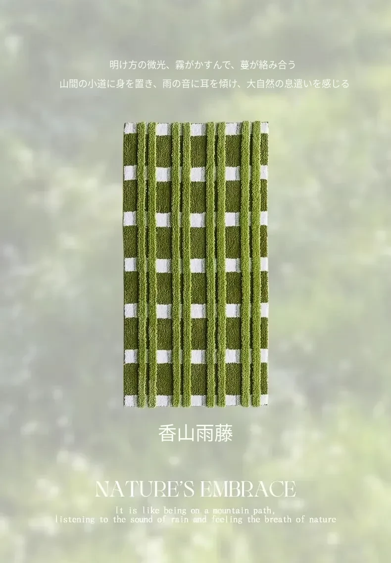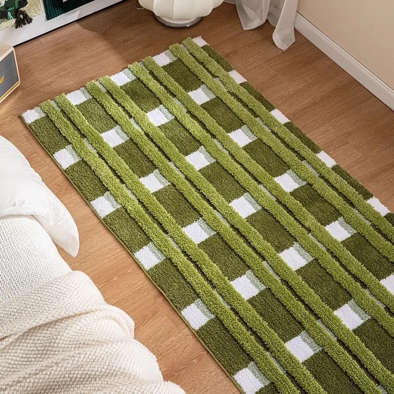 森の風を感じるリビングカーペット|田舎風デザインの緑色異形マット|ベッドサイドやソファにぴったり|高級感あふれるクッションマット|窓辺のくつろぎ空間を演出!