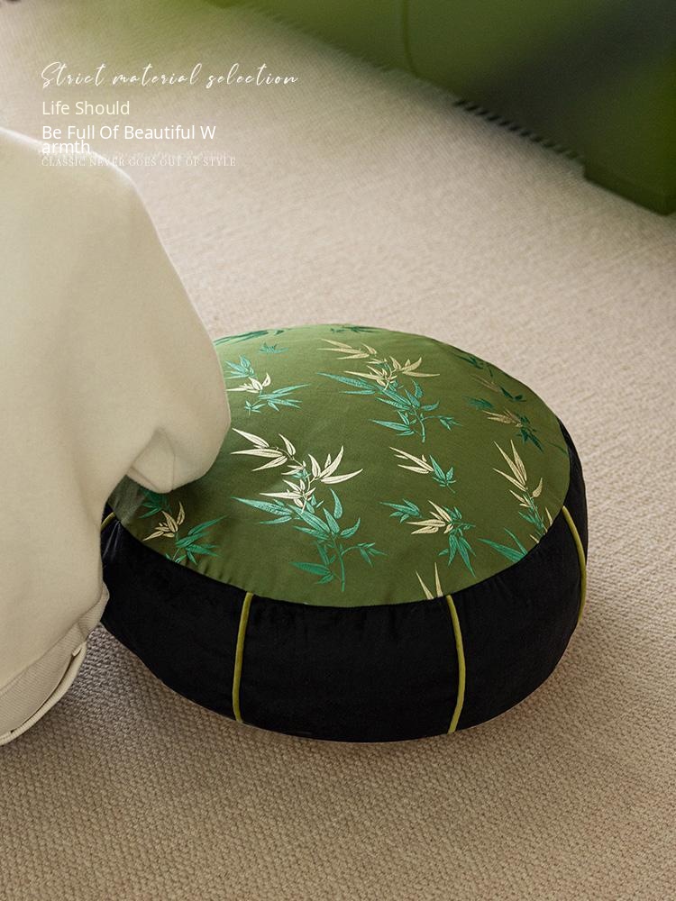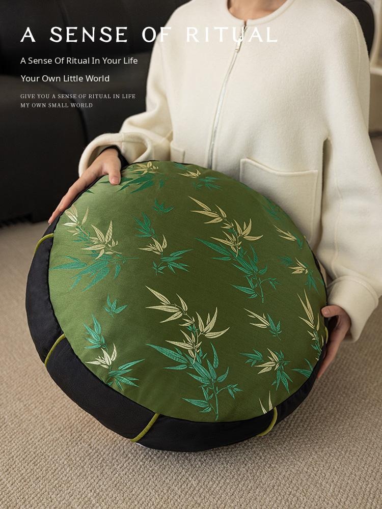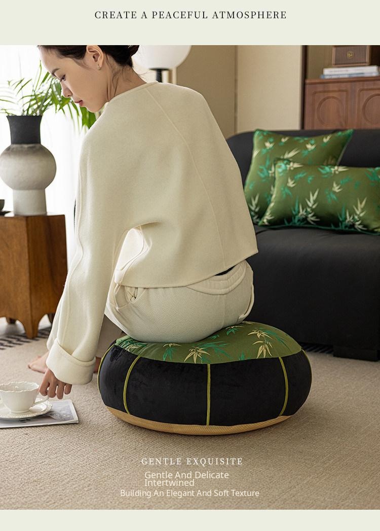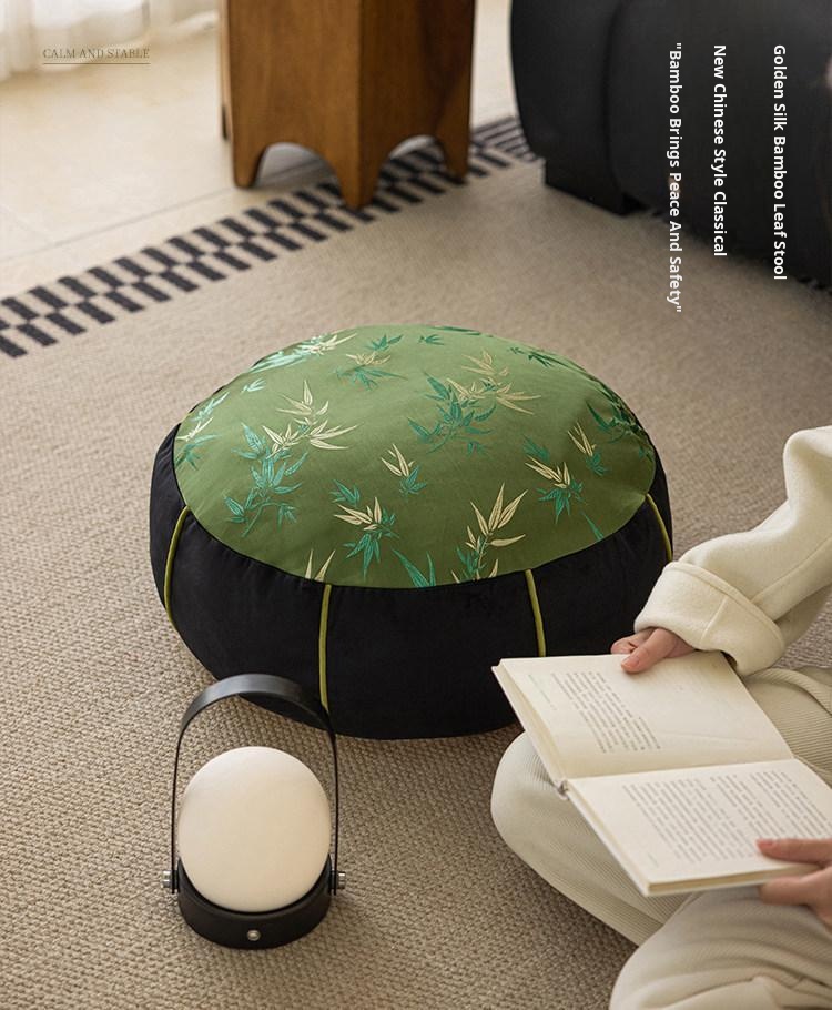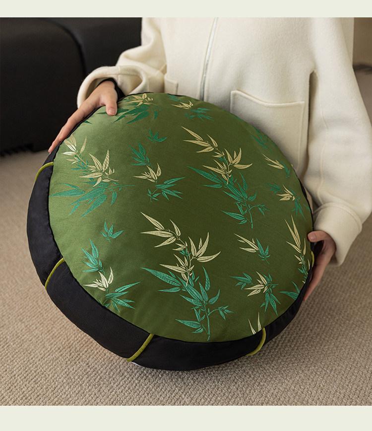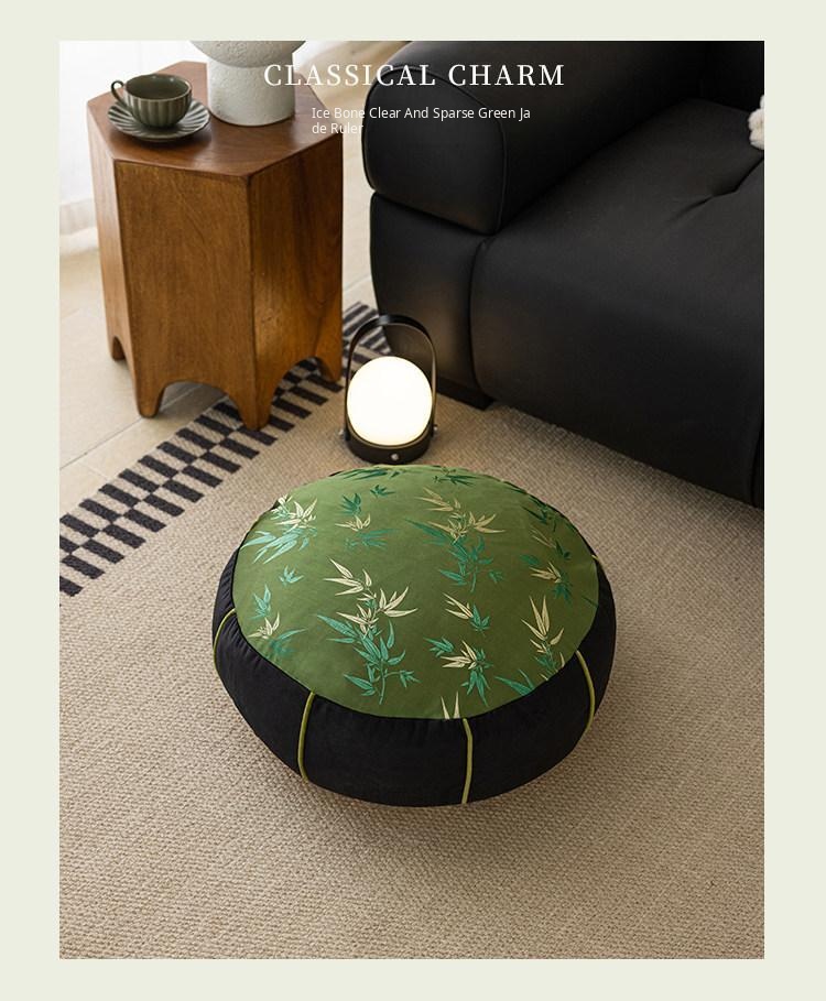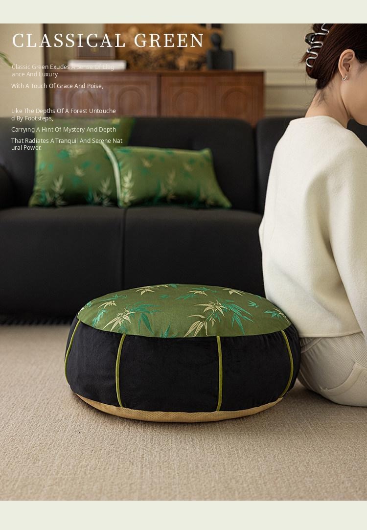 Elegant New Chinese Style Bamboo Green Cushion - Luxurious High-End Round Stool for Squatting, Removable and Washable, Perfect for Balconies and Stylish Interiors.