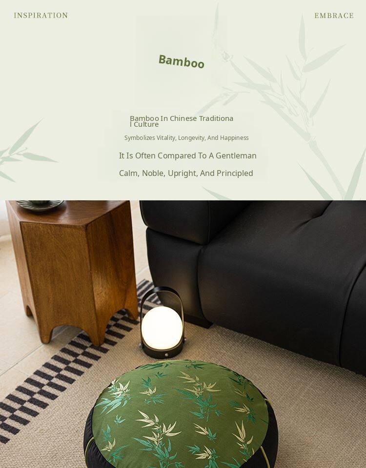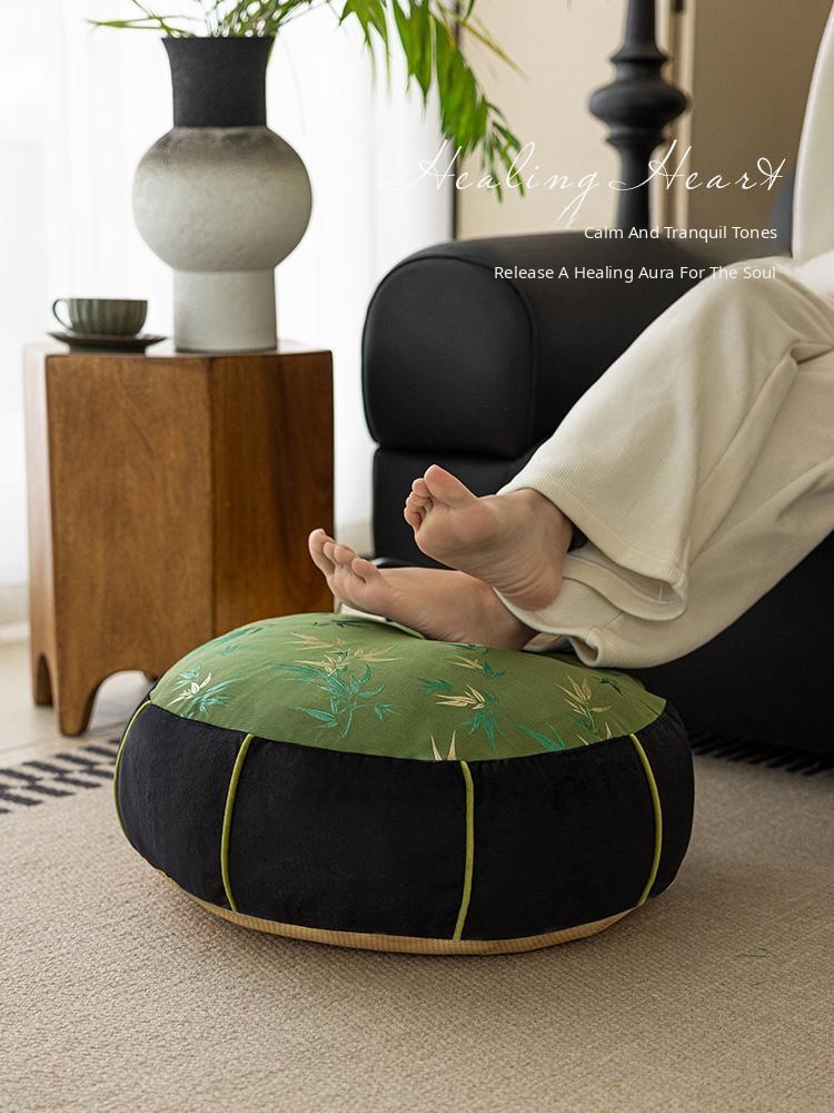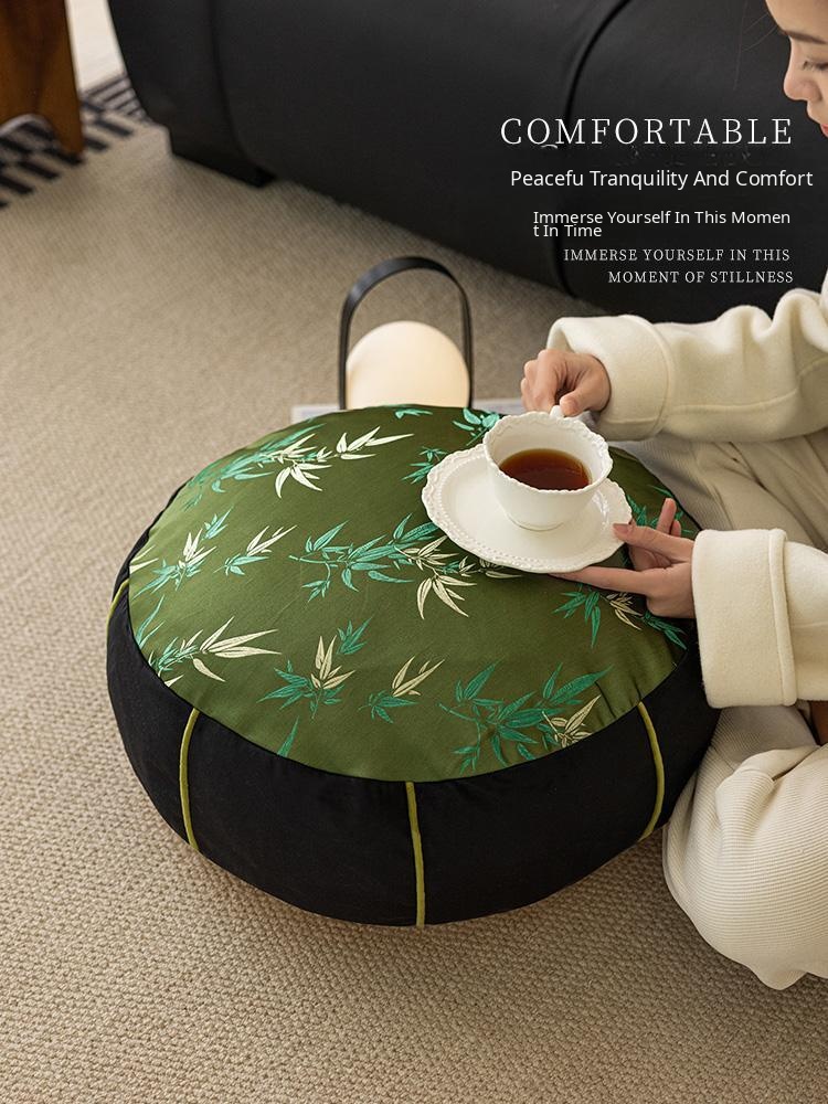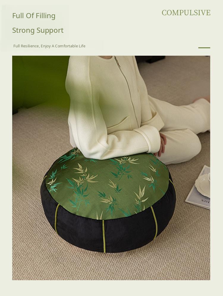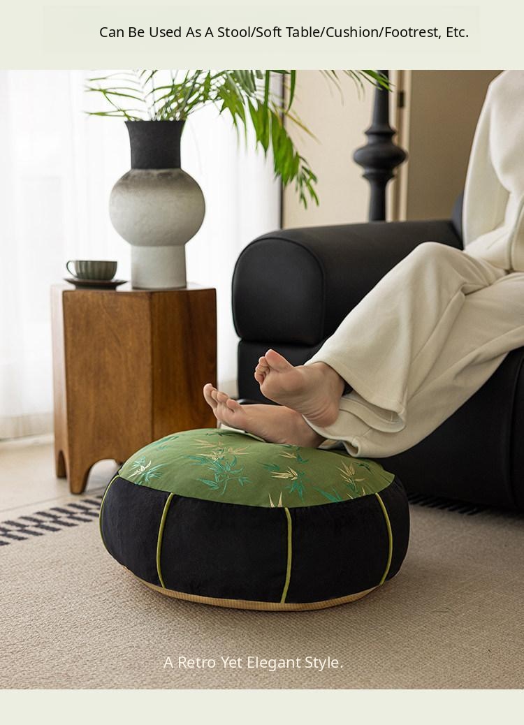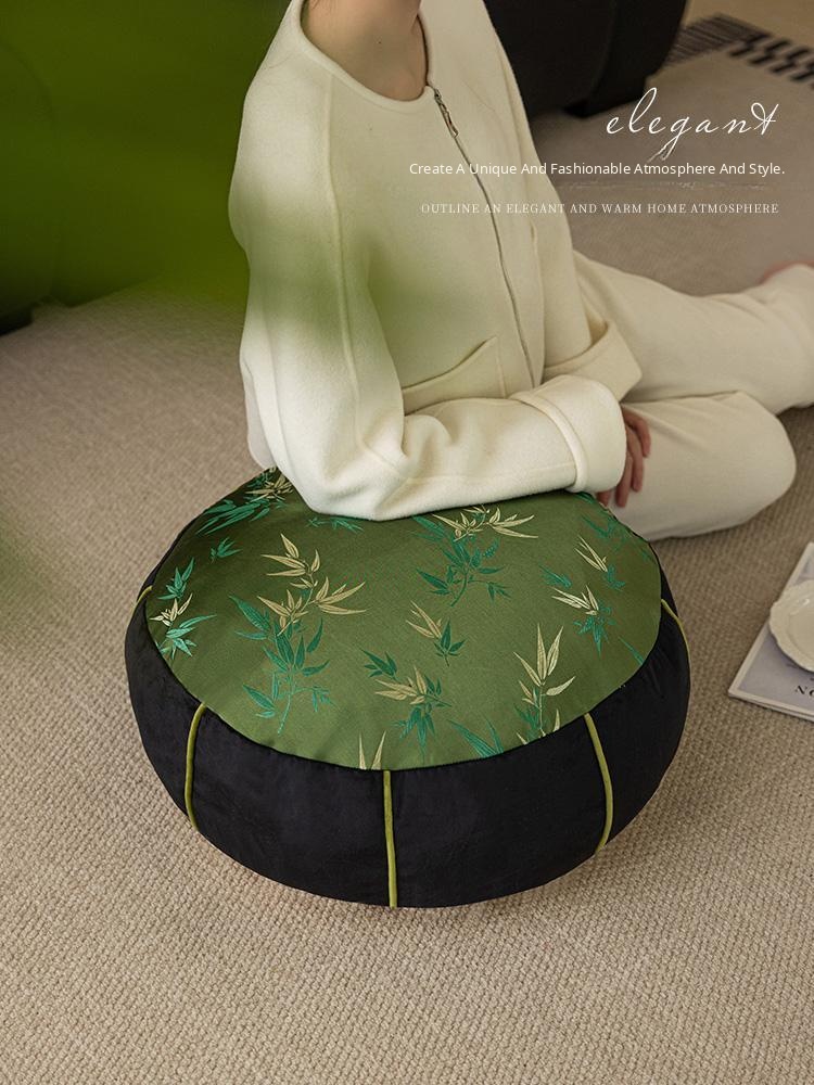 Elegant New Chinese Style Bamboo Green Cushion - Luxurious High-End Round Stool for Squatting, Removable and Washable, Perfect for Balconies and Stylish Interiors.