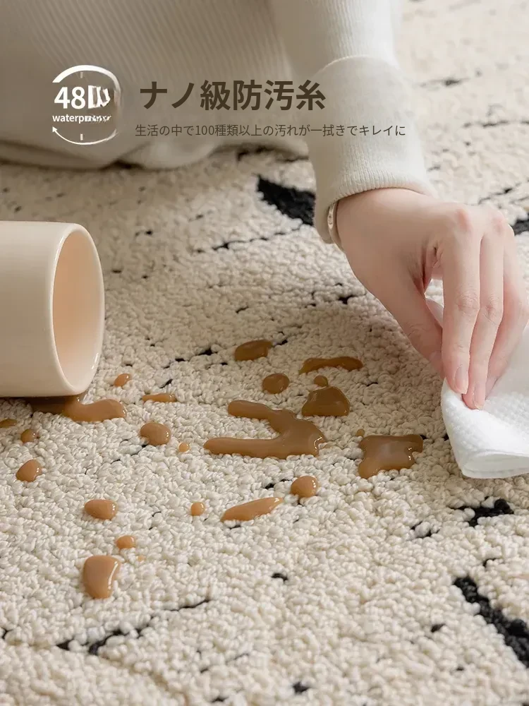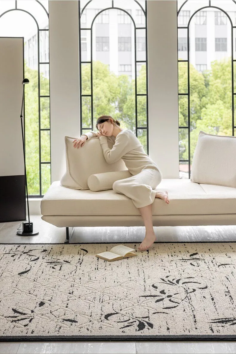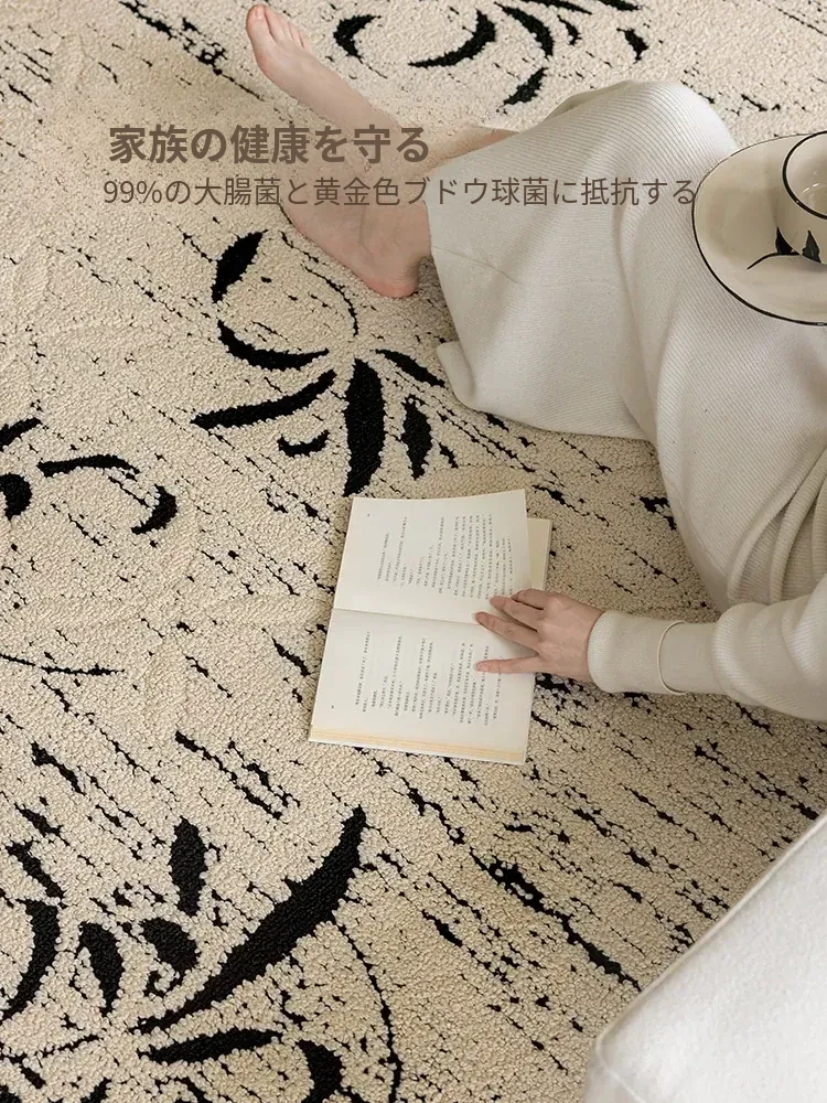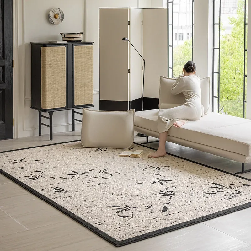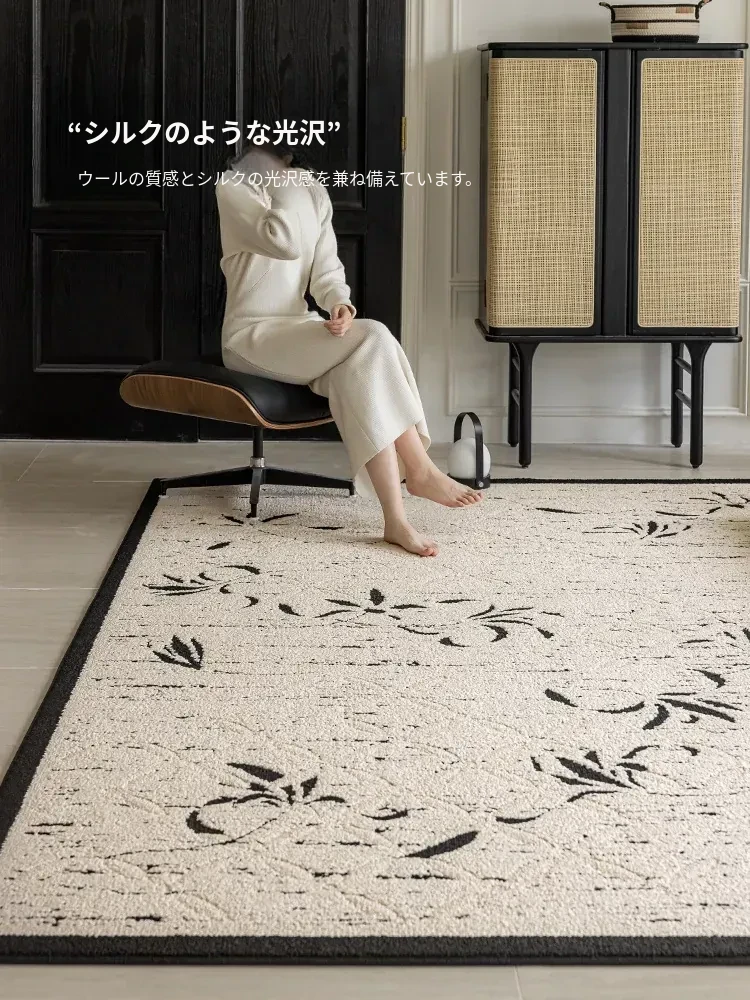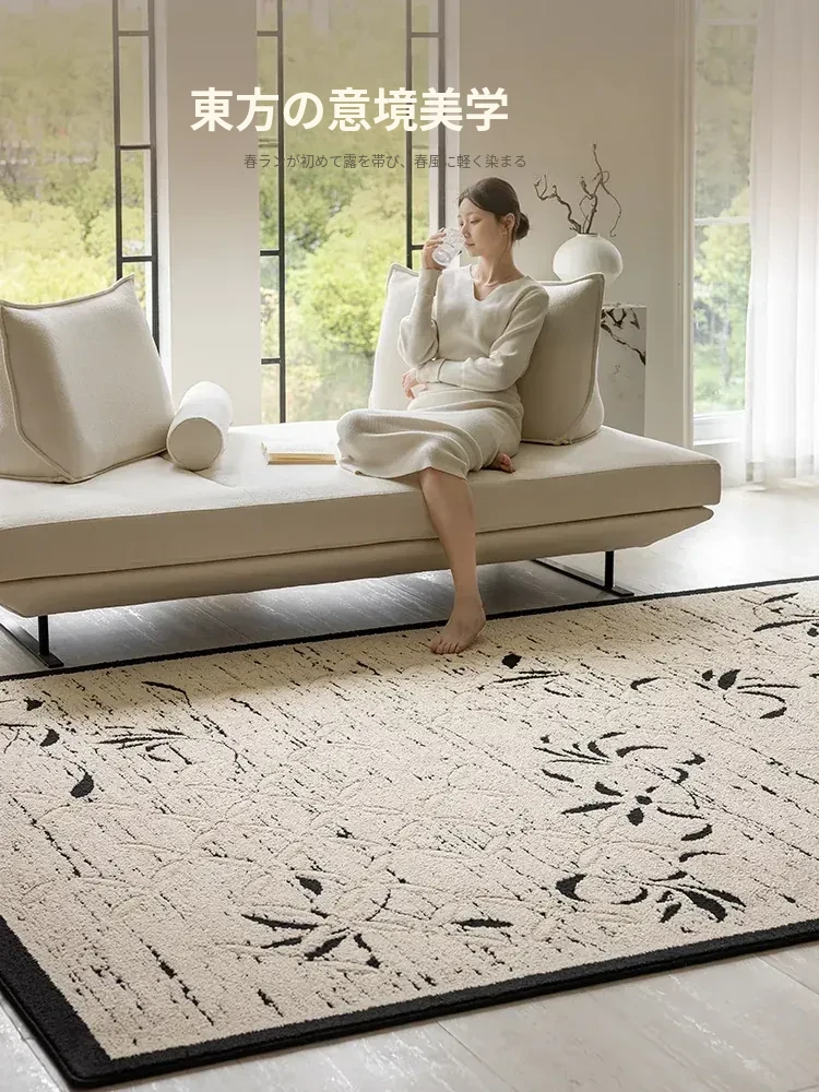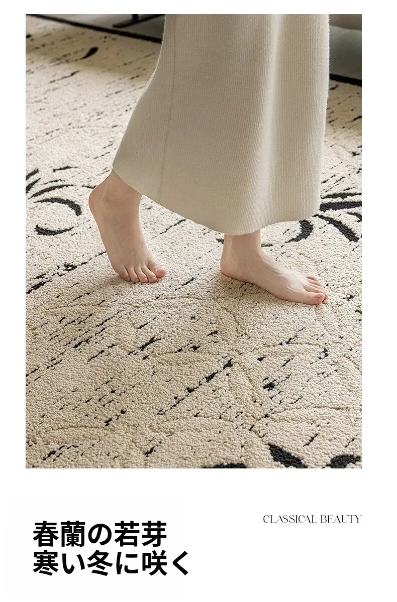 新中式高級リビングルームカーペット - ラグジュアリーな防音書斎・寝室用ベッドサイドマット、防水・汚れ防止でお手入れ簡単のソファカバー!快適さと美しさを両立した一品。