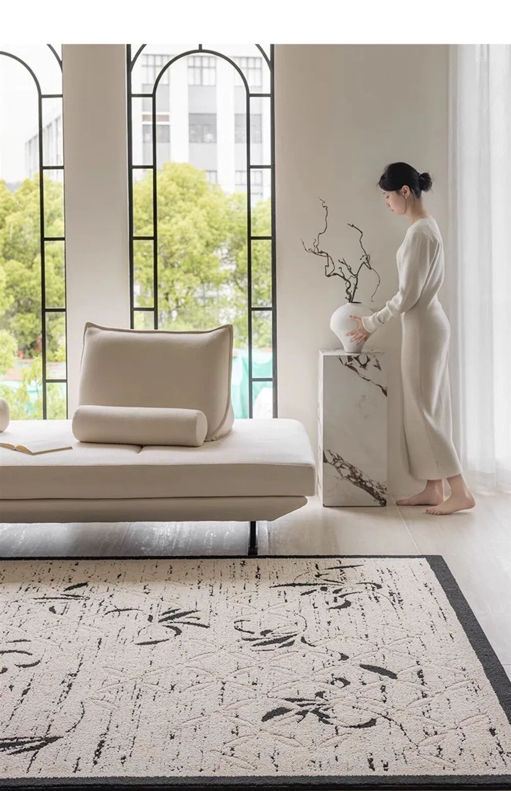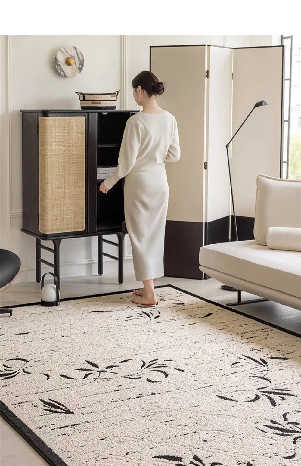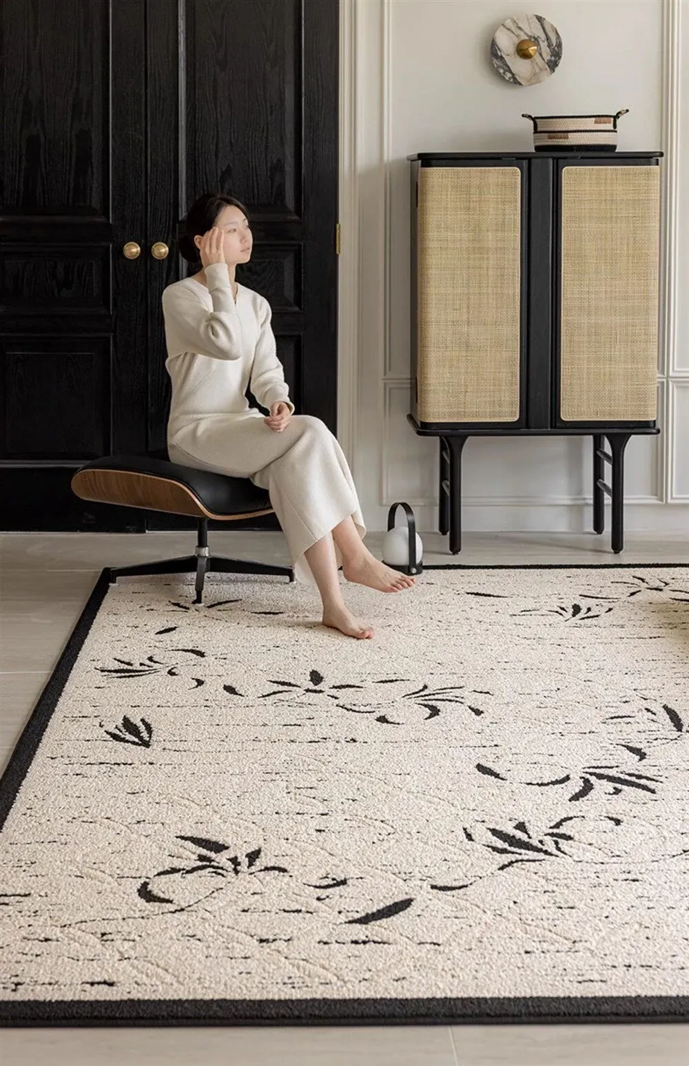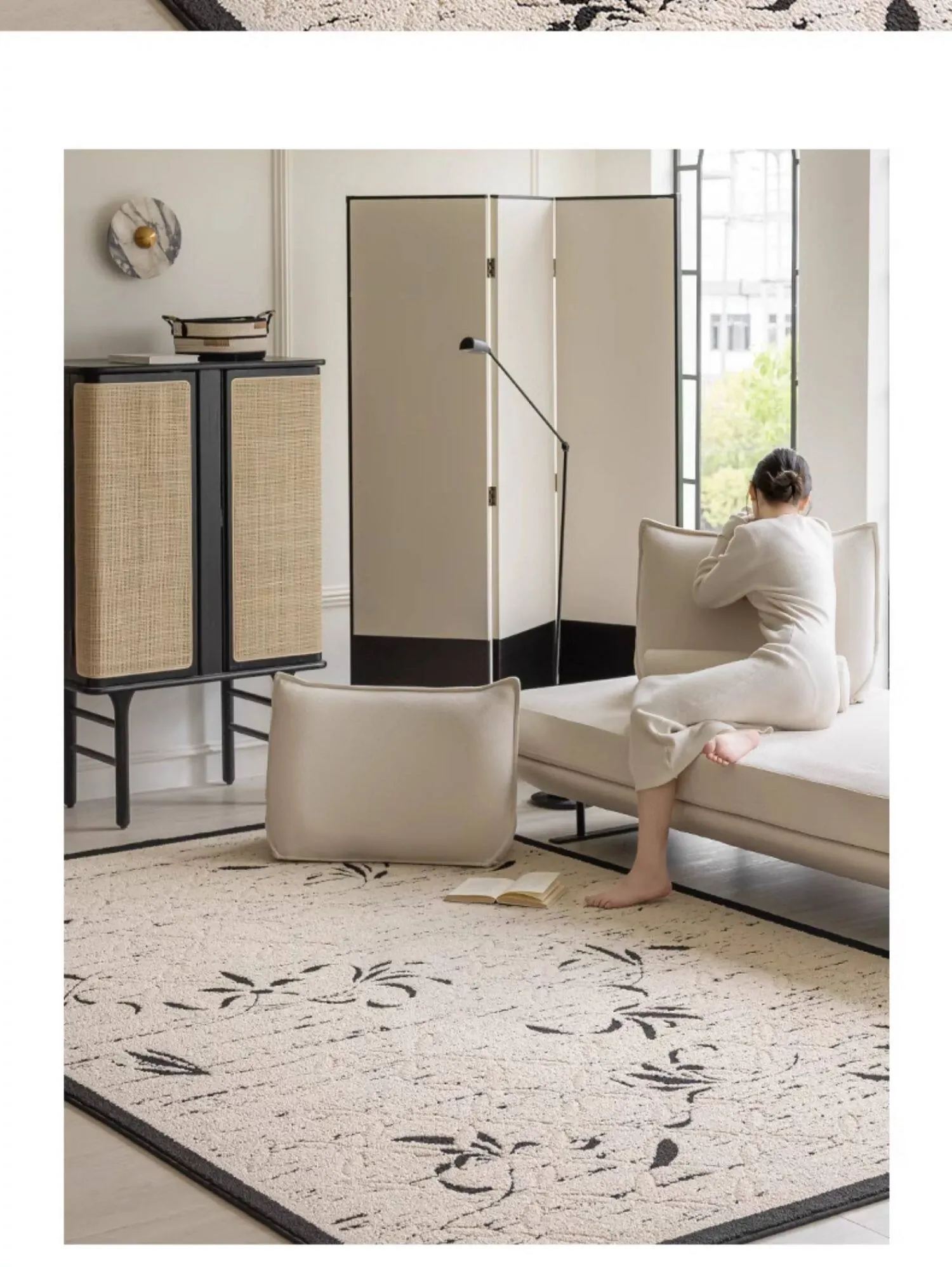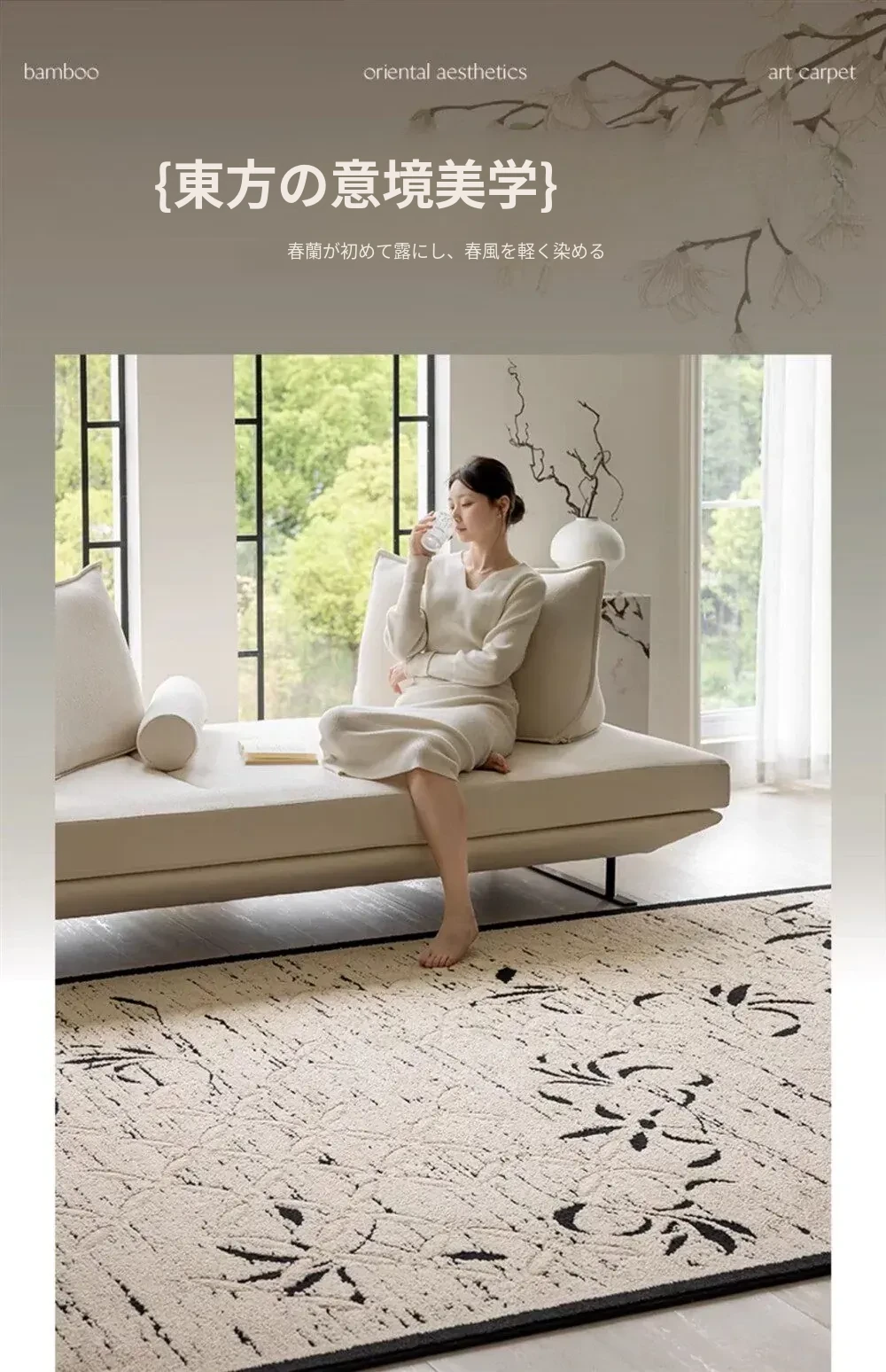新中式高級リビングルームカーペット - ラグジュアリーな防音書斎・寝室用ベッドサイドマット、防水・汚れ防止でお手入れ簡単のソファカバー!快適さと美しさを両立した一品。