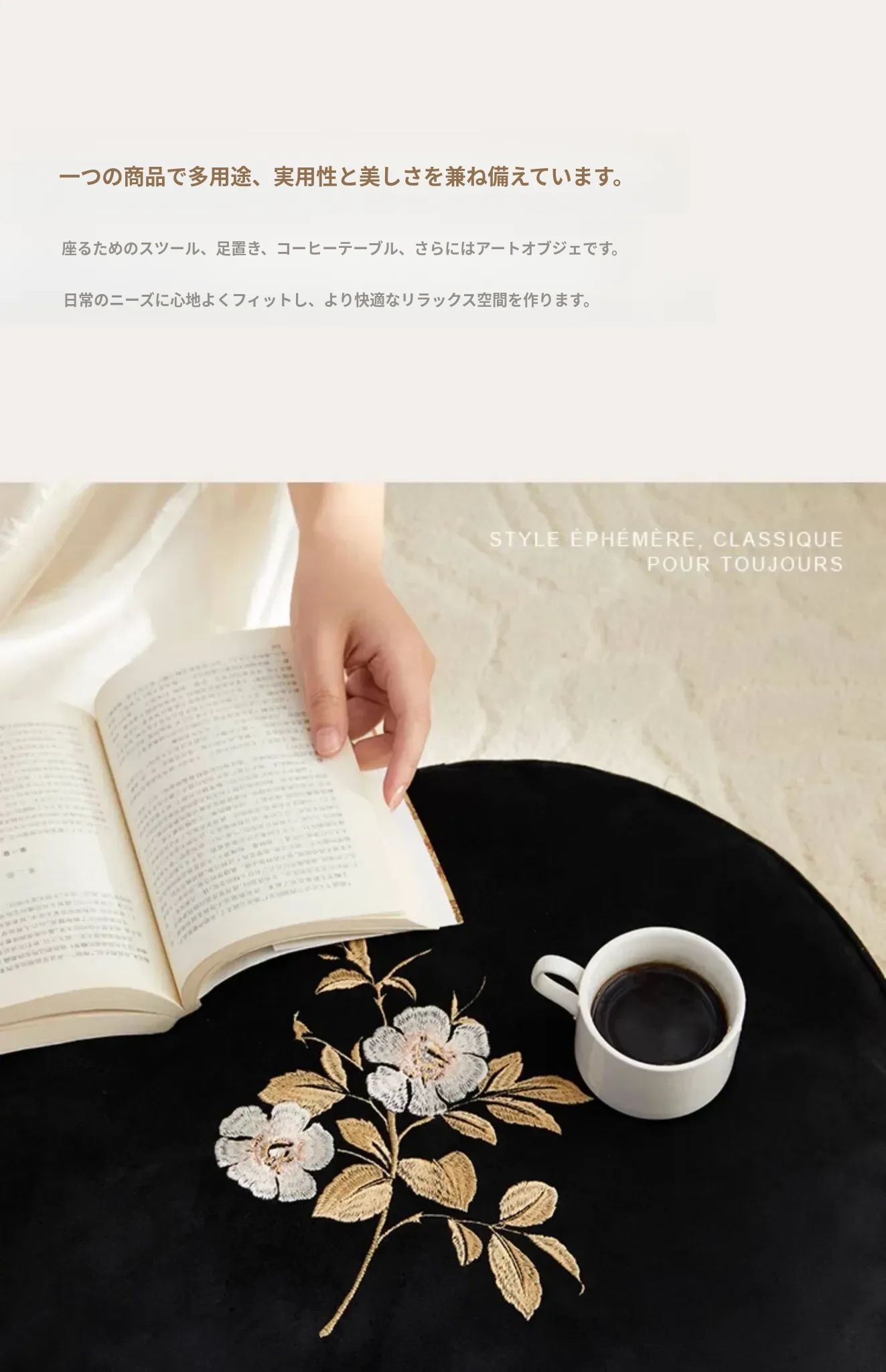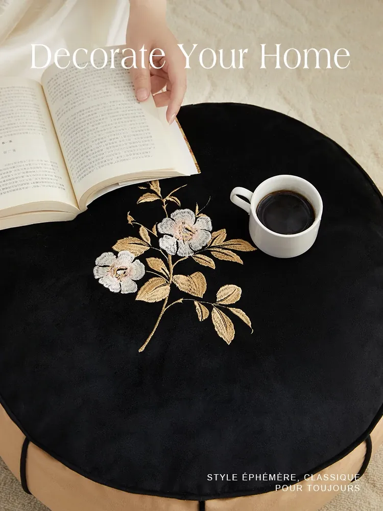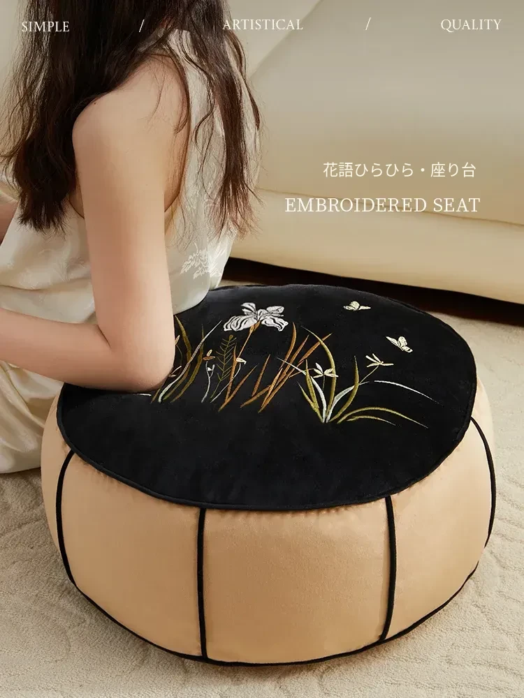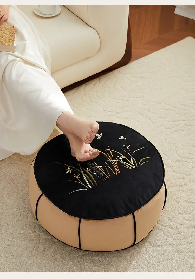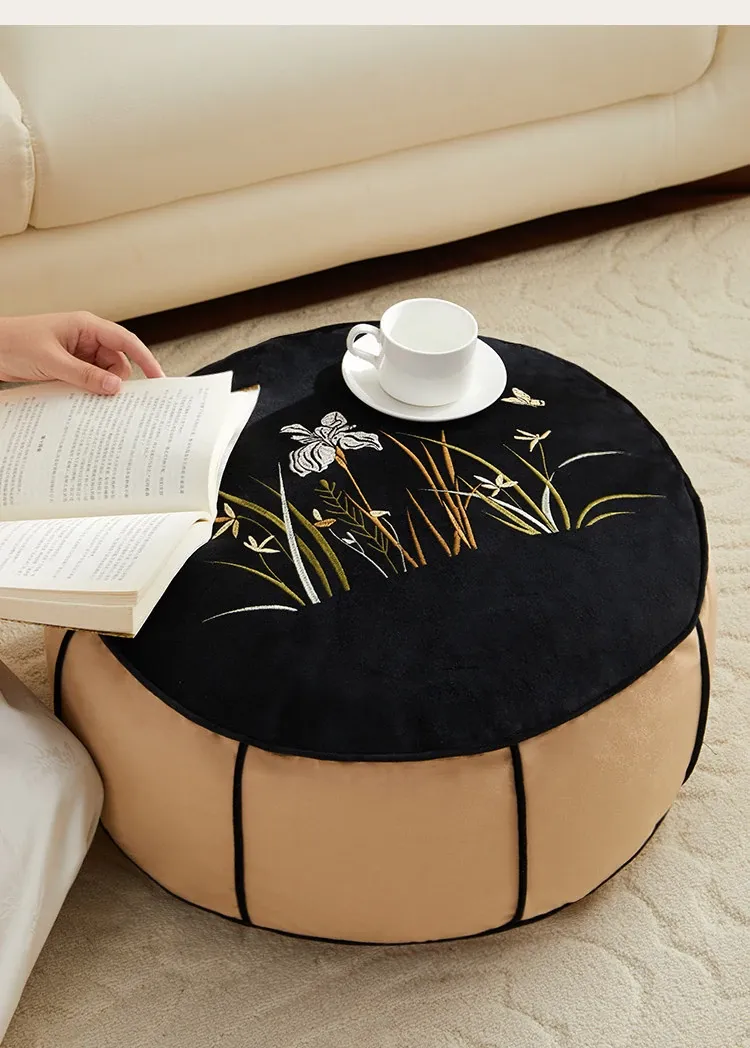 新中式デザインのラグにぴったり!おしゃれで厚みのあるアンティーク風の丸型座布団。高品質の足置き、和室や窓際のリラックススペースに最適!